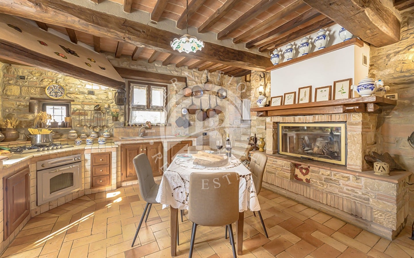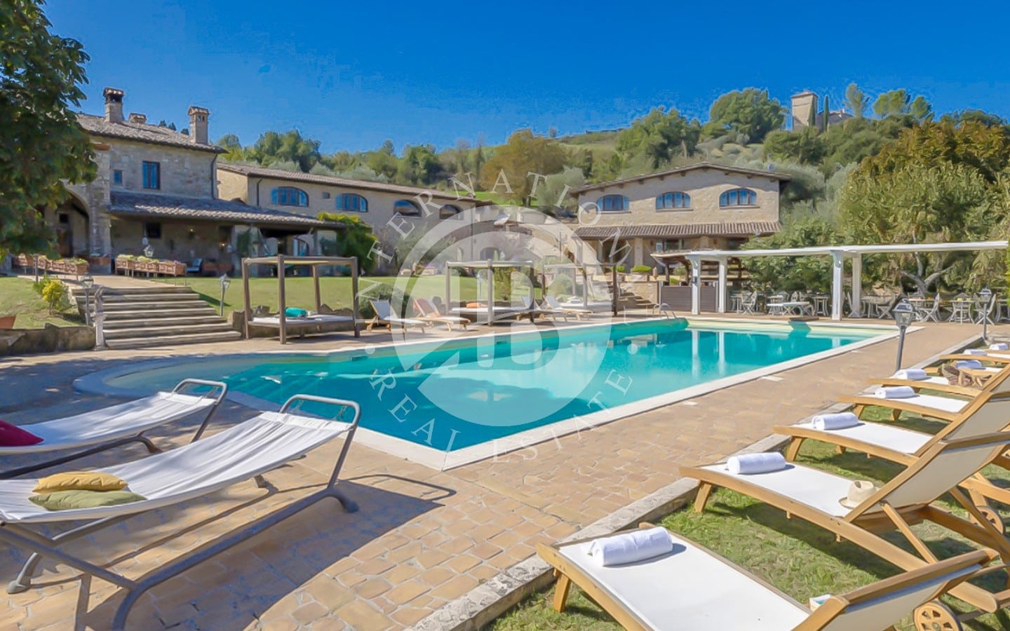 Questa affascinante proprietà è un'antica dimora in pietra risalente al 1700, situata nella zona di Todi e immersa nelle splendide colline umbre. Con una superficie complessiva di 970 mq commerciali, di cui circa 810 mq calpestabili, la proprietà è composta da un casale principale e due edifici annessi: uno adiacente al casale e l’altro indipendente a pochi metri di distanza.