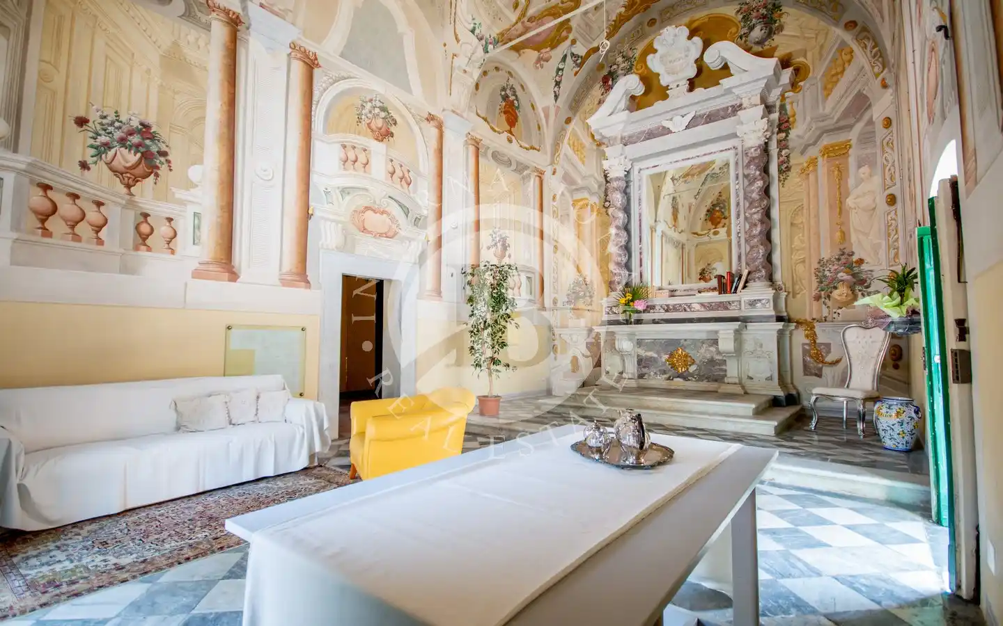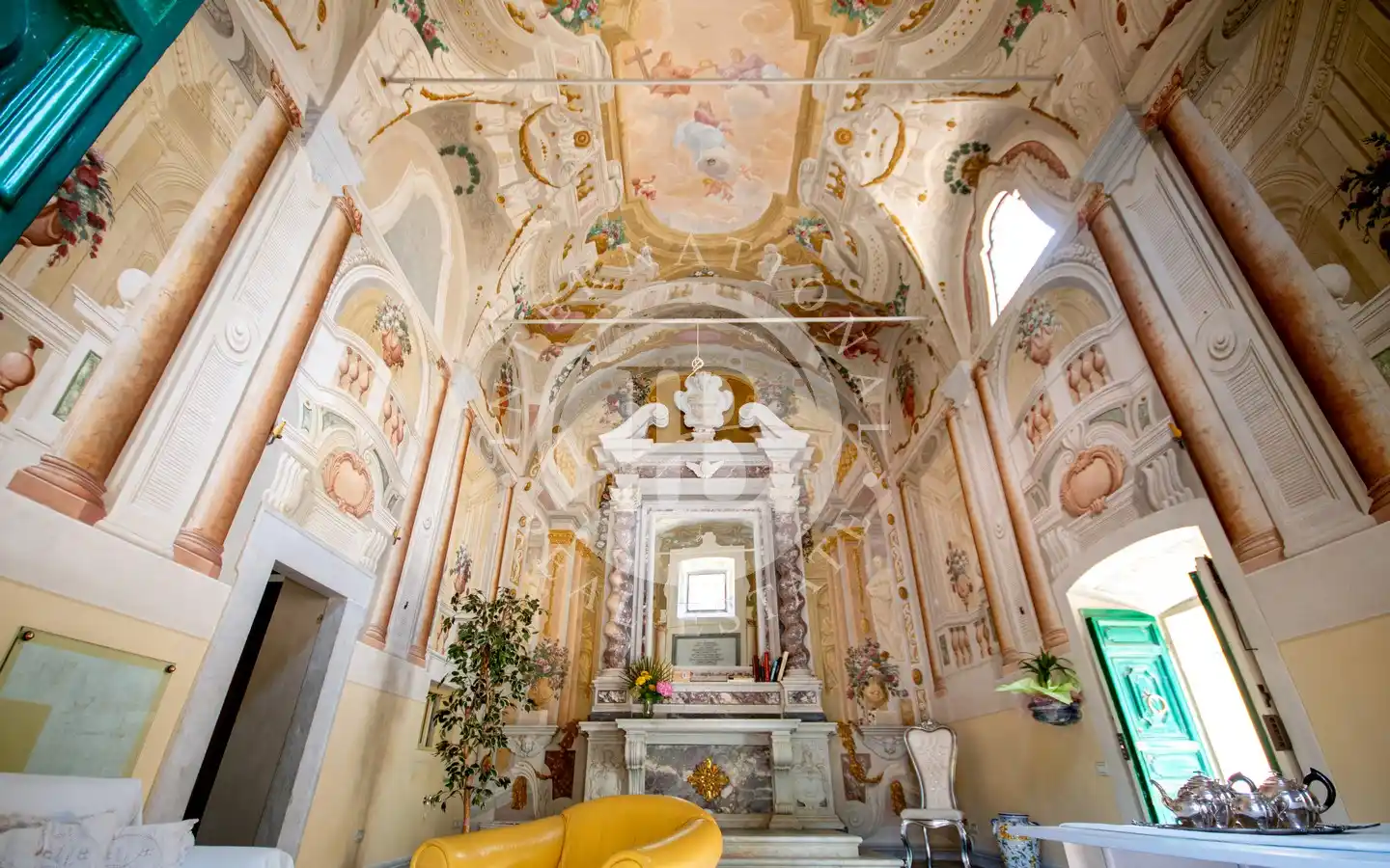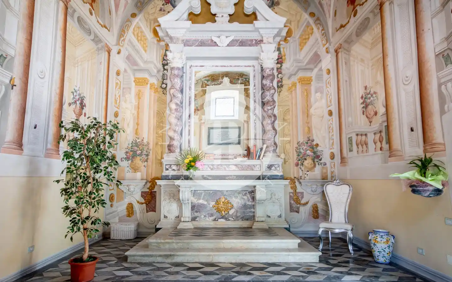 Si trova nel borgo collinare di Nocchi, frazione del Comune di Camaiore, lungo l’antico percorso della Via Francigena e a pochi minuti dalla costa versiliese. L’edificio, in perfette condizioni, si sviluppa su 86 mq caratterizzati da altezze importanti e da ambienti molto luminosi grazie alle ampie finestre e alle vetrate gotiche. La navata centrale è decorata da affreschi barocchi trompe-l’oeil e allegorici eseguiti dal pittore settecentesco Pietro Paolo Scorsini, autore anche degli affreschi di Palazzo Pfanner a Lucca. A impreziosire ulteriormente l’interno vi è un altare in marmo bianco con intarsi policromi e decorazioni dorate, che rende lo spazio un autentico scrigno d’arte già predisposto per accogliere una cucina.