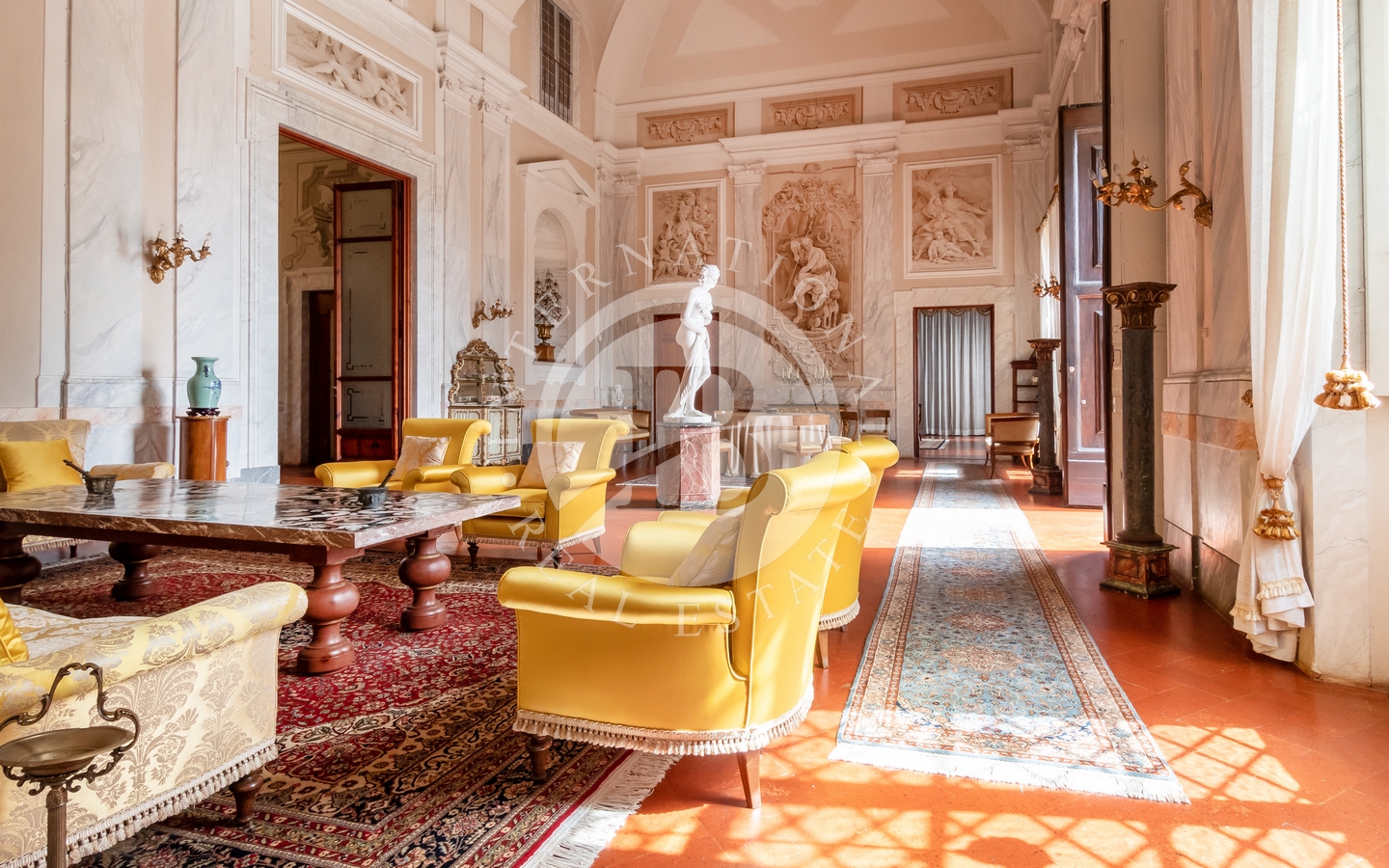 Distribuita su tre livelli, offre ambienti sontuosi collegati da un imponente scalone e un ascensore. Gli arredi d'epoca conferiscono un'eleganza senza tempo, mentre la cappella interna aggiunge un tocco di spiritualità.