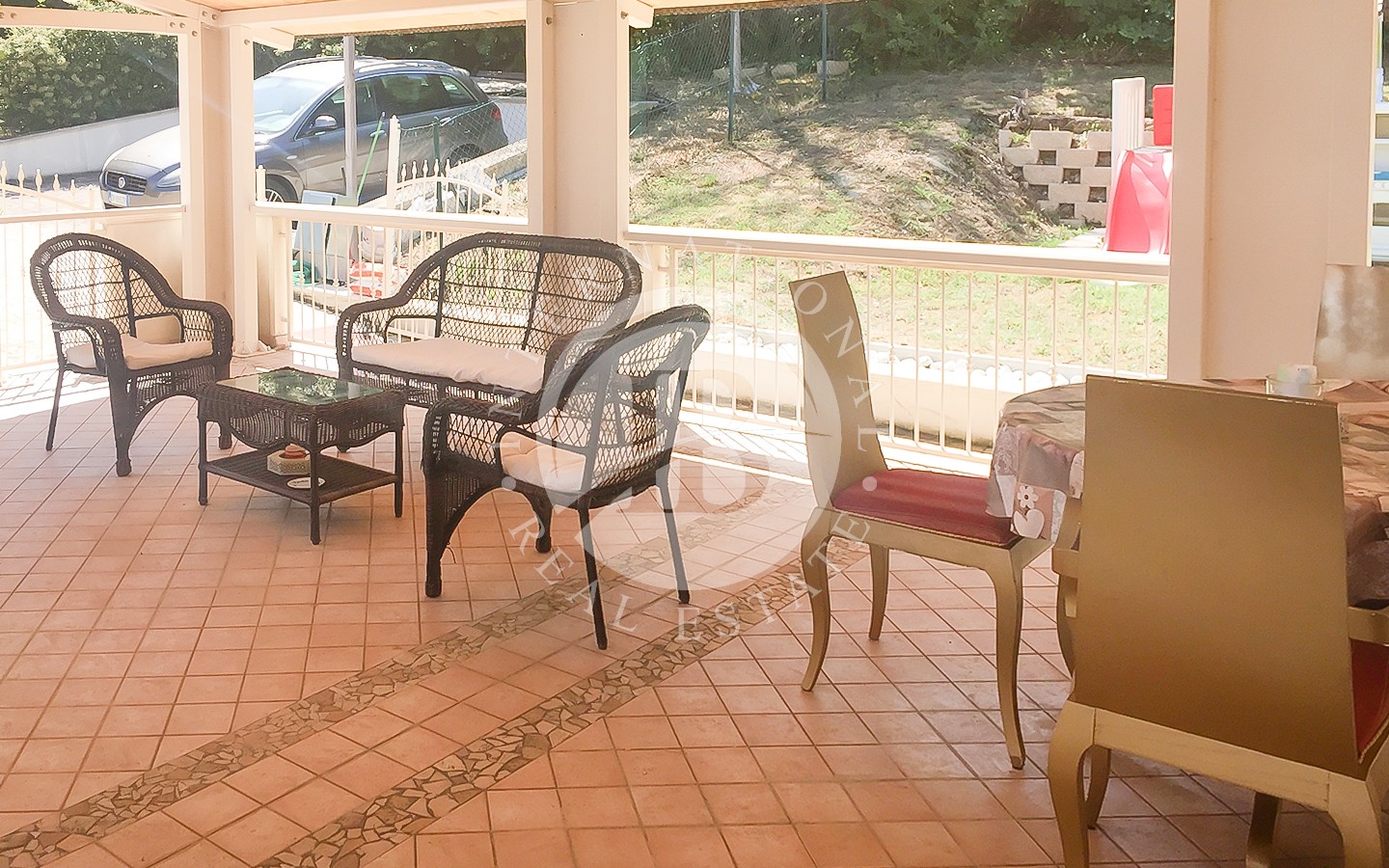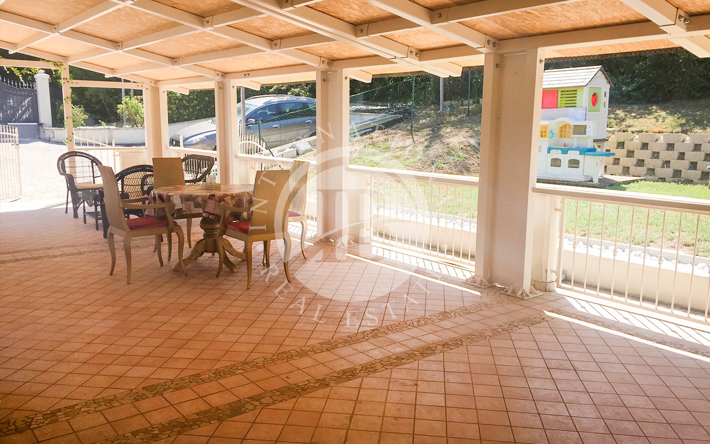 Una grande veranda coperta di 120 mq, 2 ampi balconi e un balcone a tazza completano l’offerta, ideali per pranzi all’aperto o momenti di relax. La villa è dotata di due scale esterne, una per ogni lato della casa, che offrono praticità e facilità di accesso.