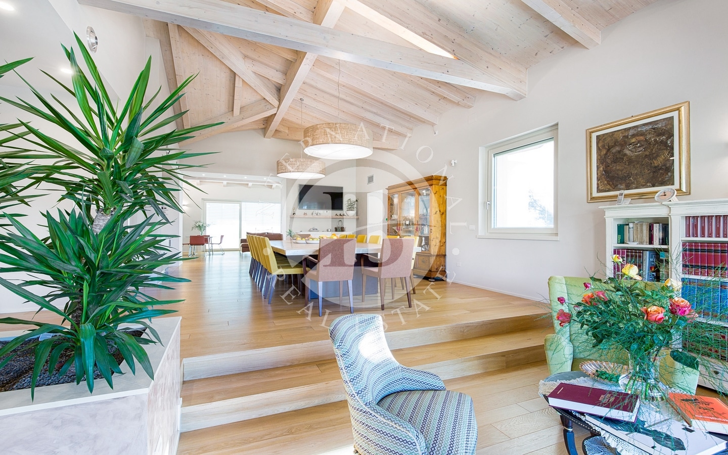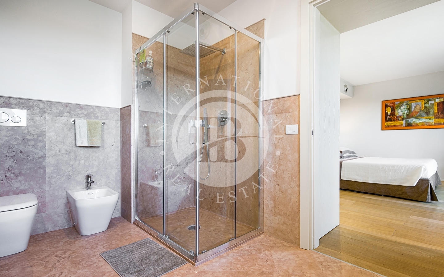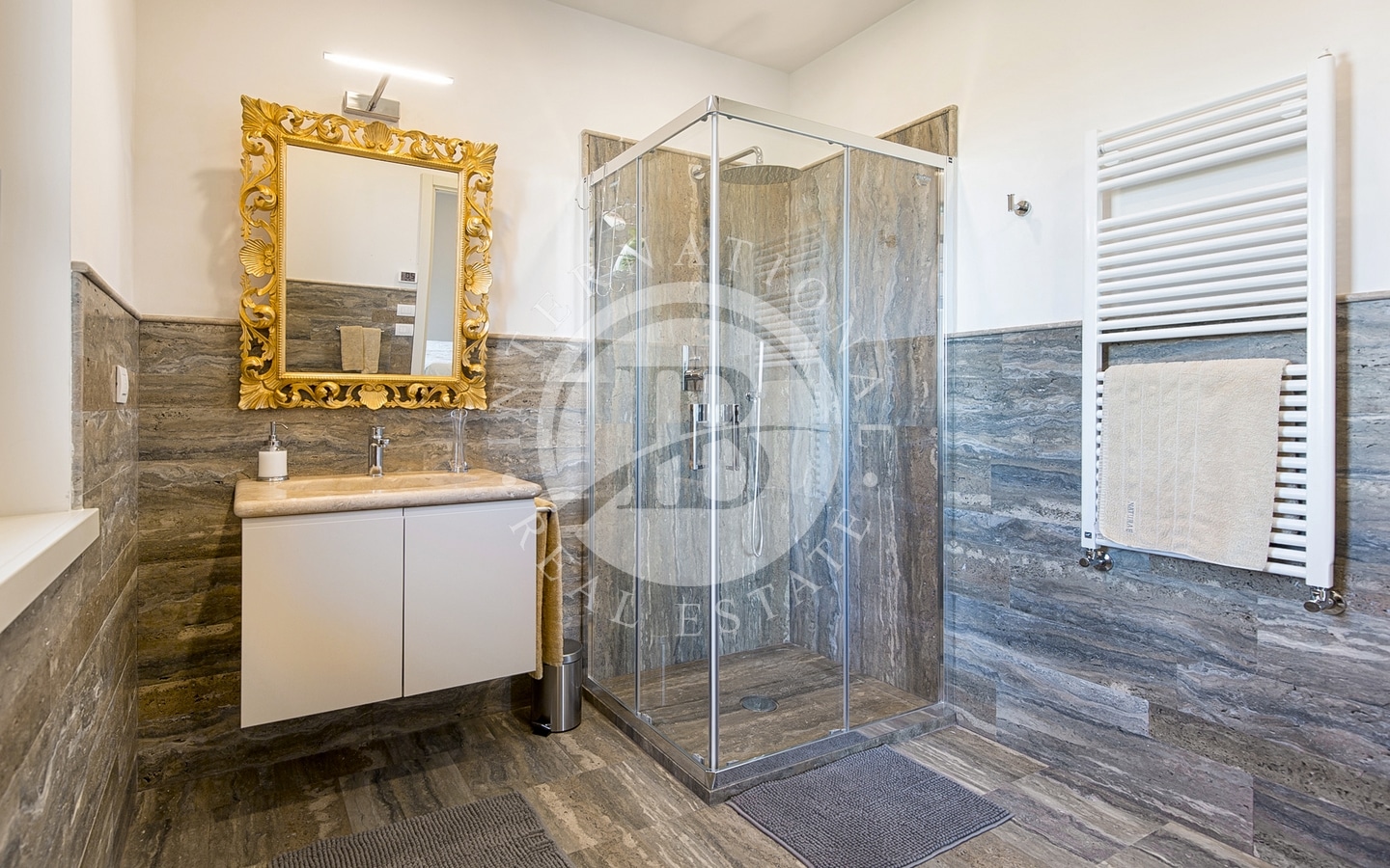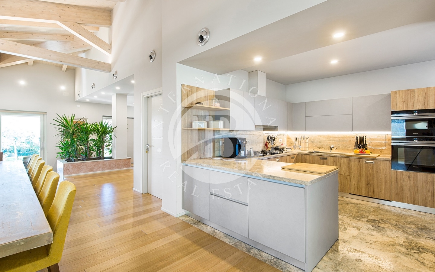 La villa è dotata delle più moderne tecnologie: ventilazione meccanica controllata, pannelli solari e un sistema fotovoltaico di 10,78 kW. Ogni ambiente è climatizzato autonomamente, garantendo massimo comfort in ogni stagione. L’illuminazione a LED e gli infissi con tende integrate assicurano un’armonia perfetta tra funzionalità ed estetica.
