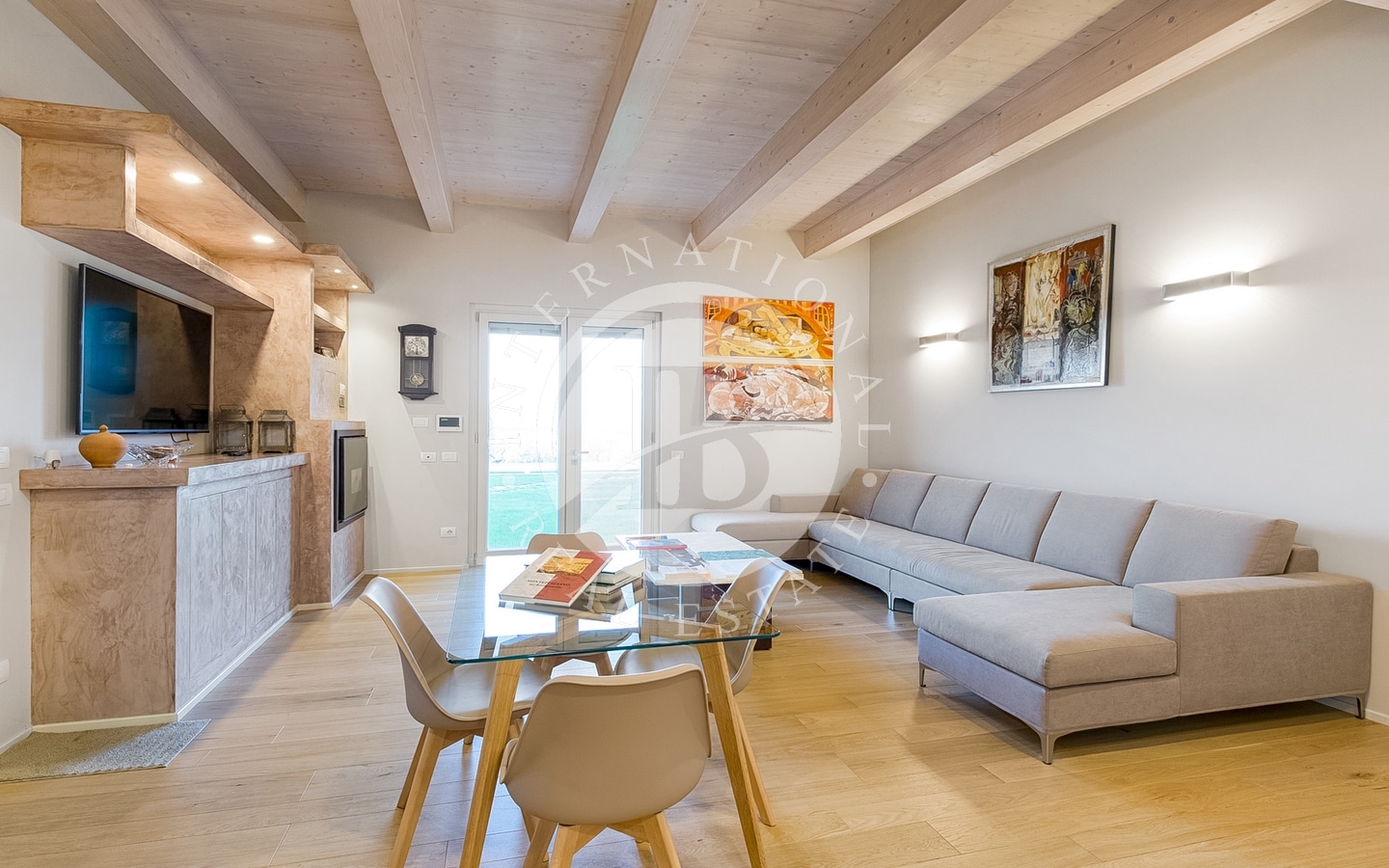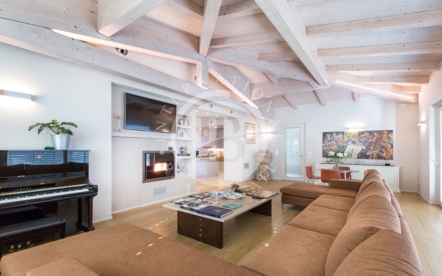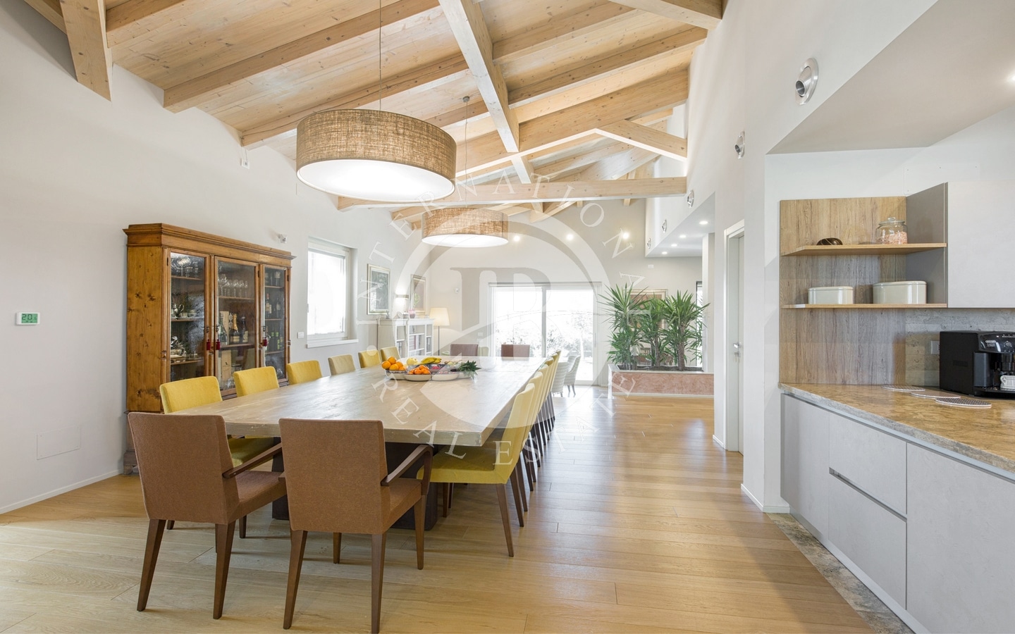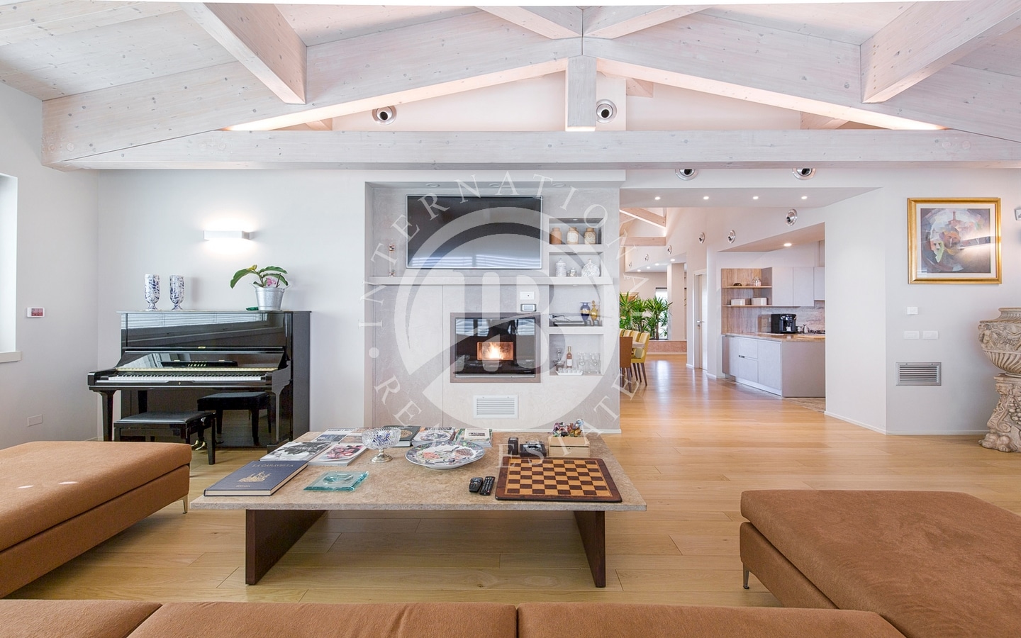 La villa è dotata delle più moderne tecnologie: ventilazione meccanica controllata, pannelli solari e un sistema fotovoltaico di 10,78 kW. Ogni ambiente è climatizzato autonomamente, garantendo massimo comfort in ogni stagione. L’illuminazione a LED e gli infissi con tende integrate assicurano un’armonia perfetta tra funzionalità ed estetica.