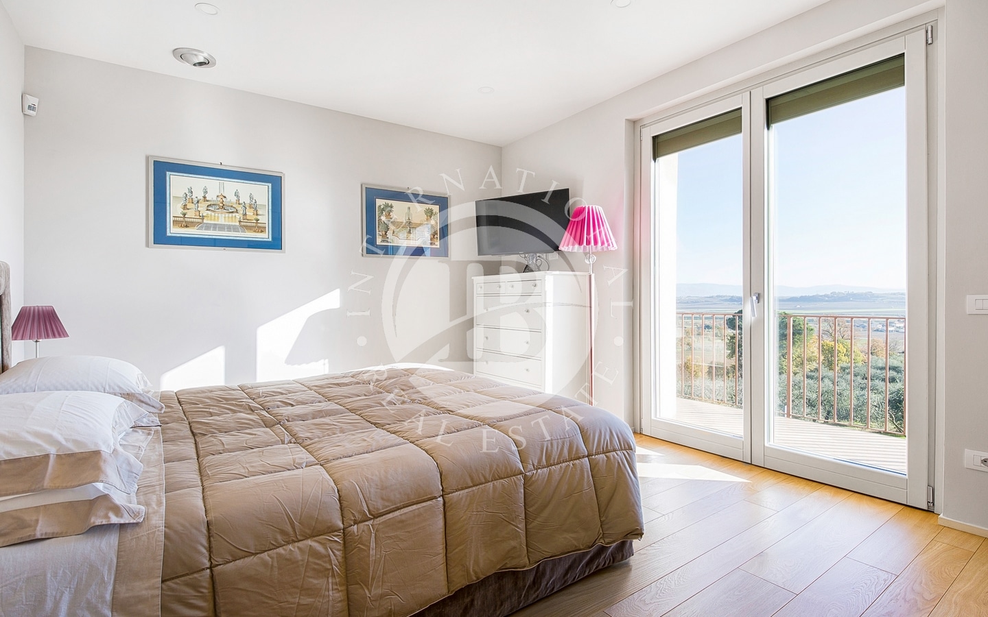Immersa tra gli uliveti che caratterizzano la Valdichiana, questa raffinata villa sorge su una collina a Foiano della Chiana, offrendo una vista panoramica mozzafiato che si estende per oltre 80 km, abbracciando Cortona, Castiglion Fiorentino e la valle sottostante. Un’oasi esclusiva che unisce comfort moderni e materiali naturali, garantendo totale privacy e serenità.
