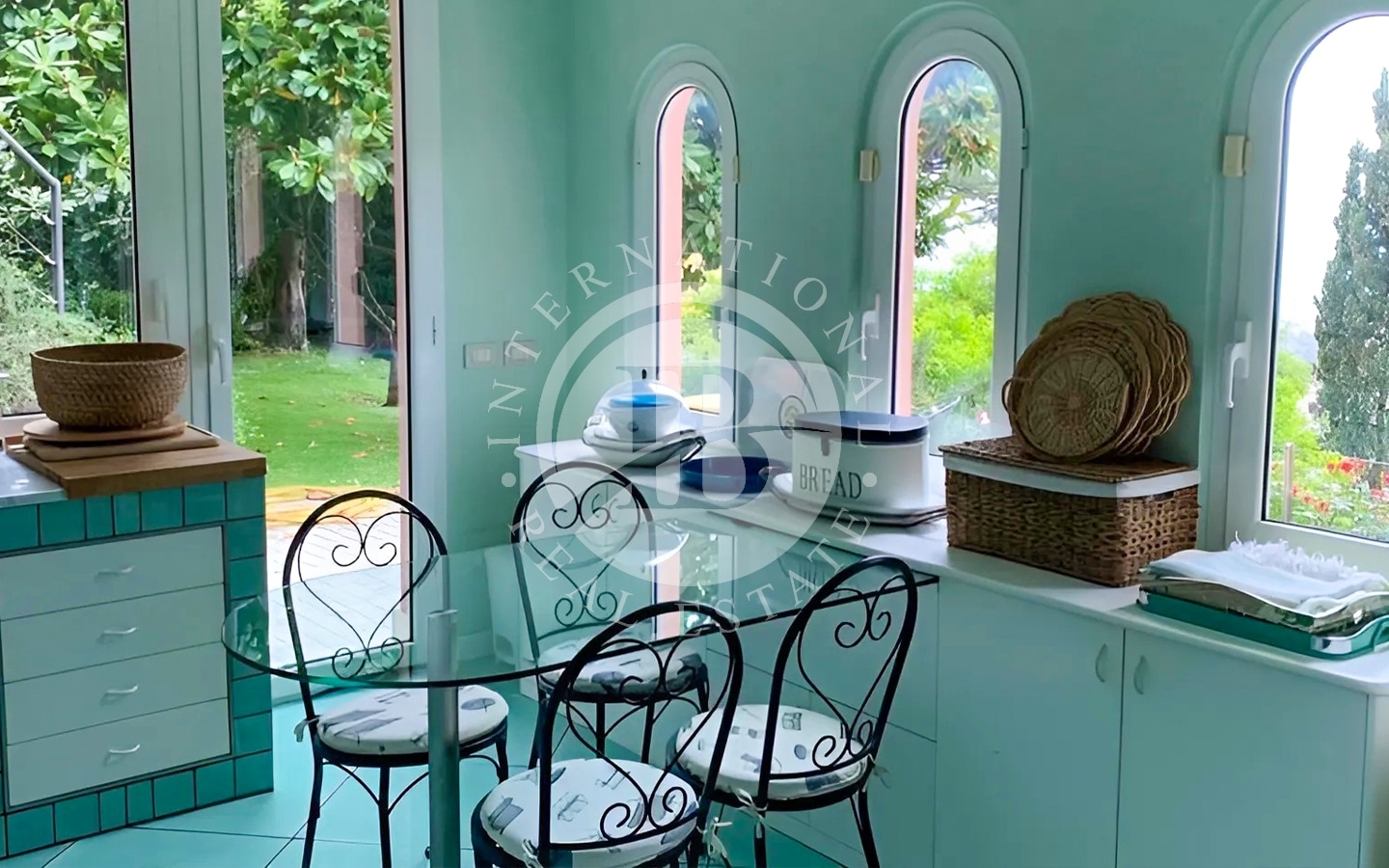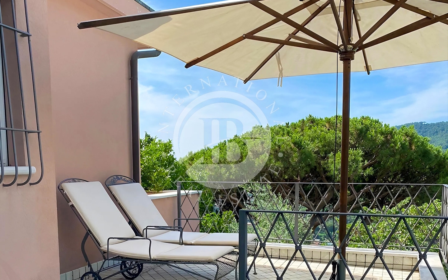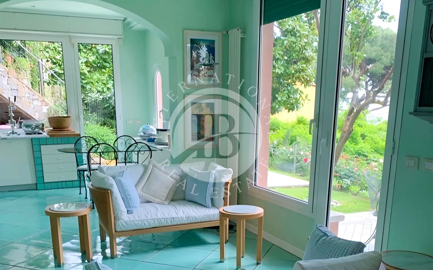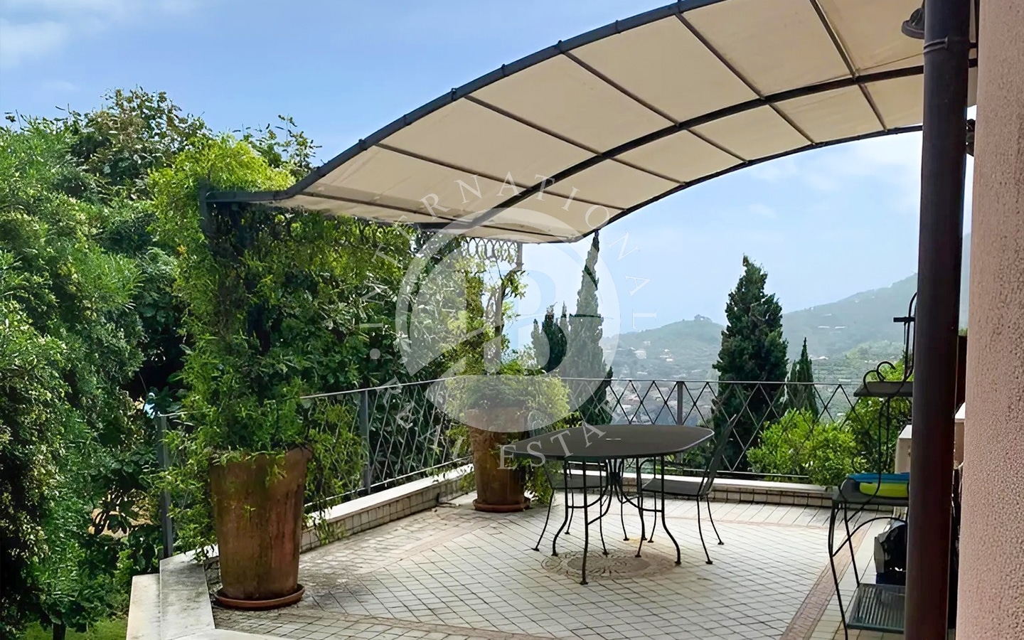 Il giardino, di 450 mq, arricchito da alberi di ulivo e arancio, è impreziosito da una piscina. L'area esterna comprende anche numerose zone relax, ideali per godere del clima mite della Riviera Ligure e della vista panoramica.