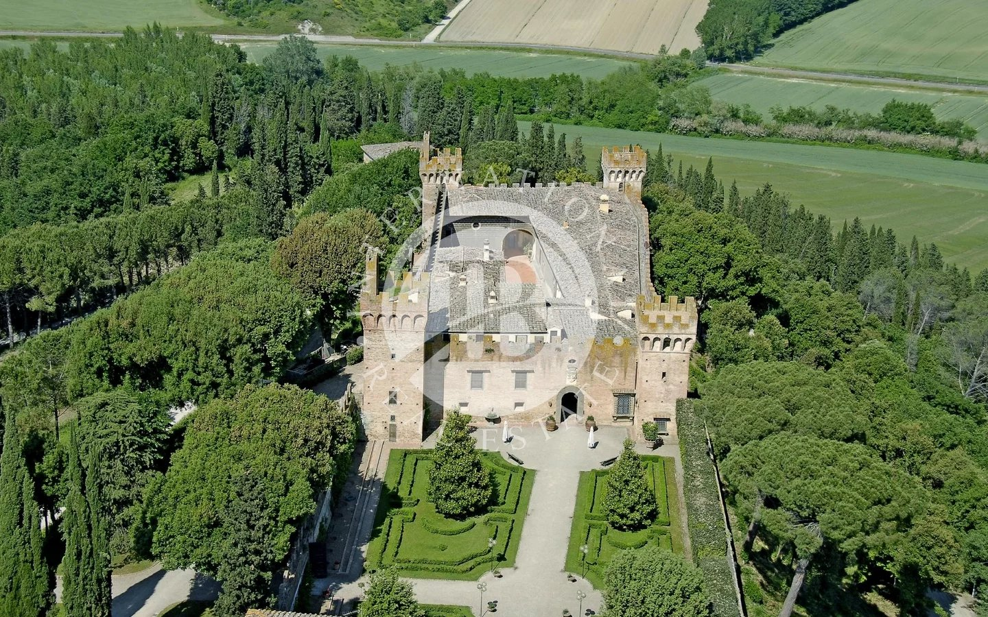La proprietà si trova sulle colline toscane a pochi chilometri dalla famosa città etrusca di Volterra e la città medievale di San Gimignano, entrambe famose nel mondo e meta di molti turisti. La zona è molto tranquilla e silenziosa. Il Castello è facilmente raggiungibile dagli aeroporti di Firenze (45 km) e Pisa (62 km),