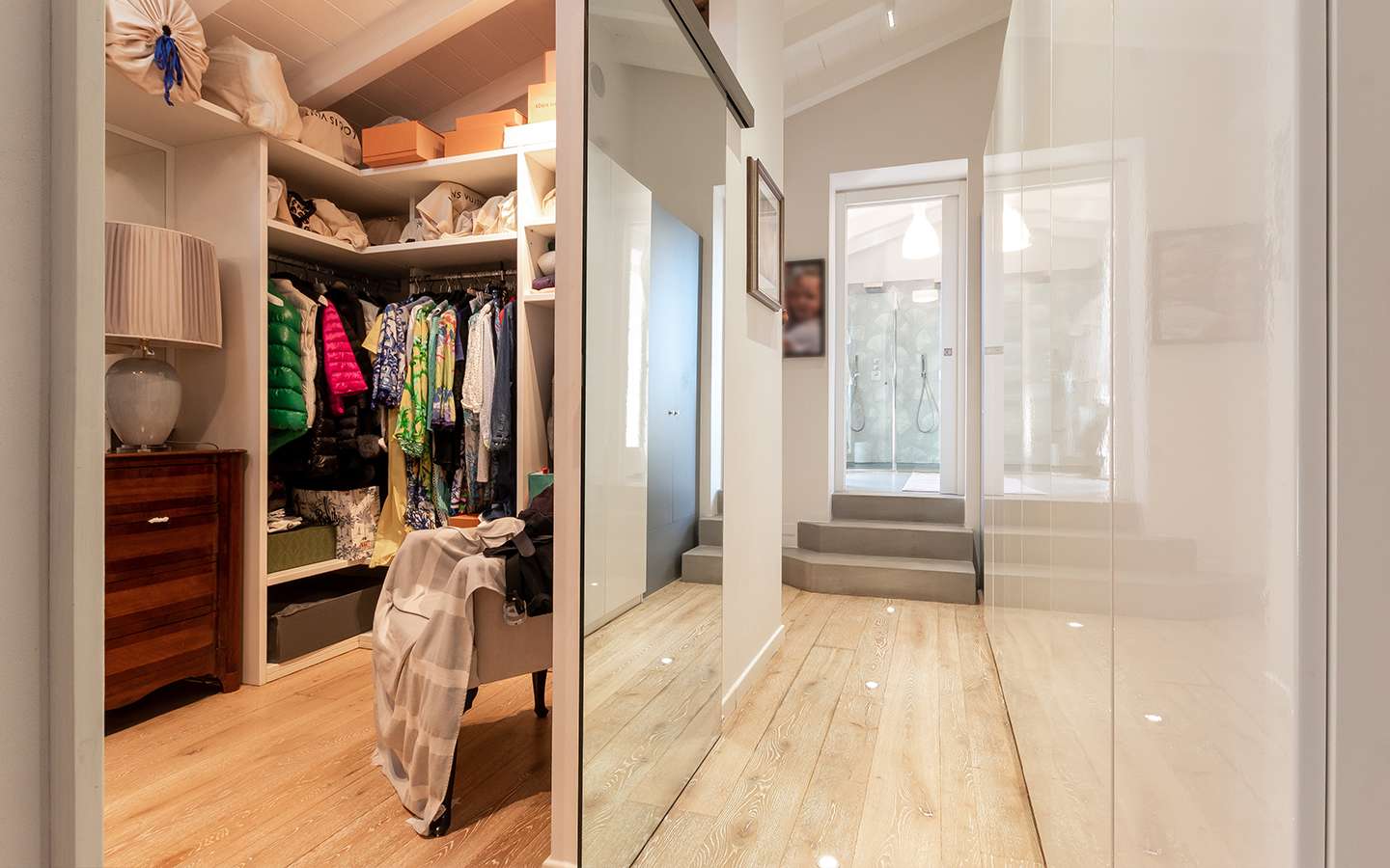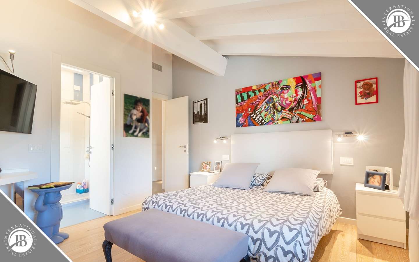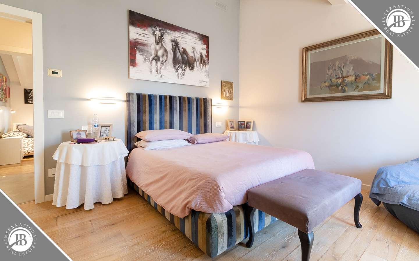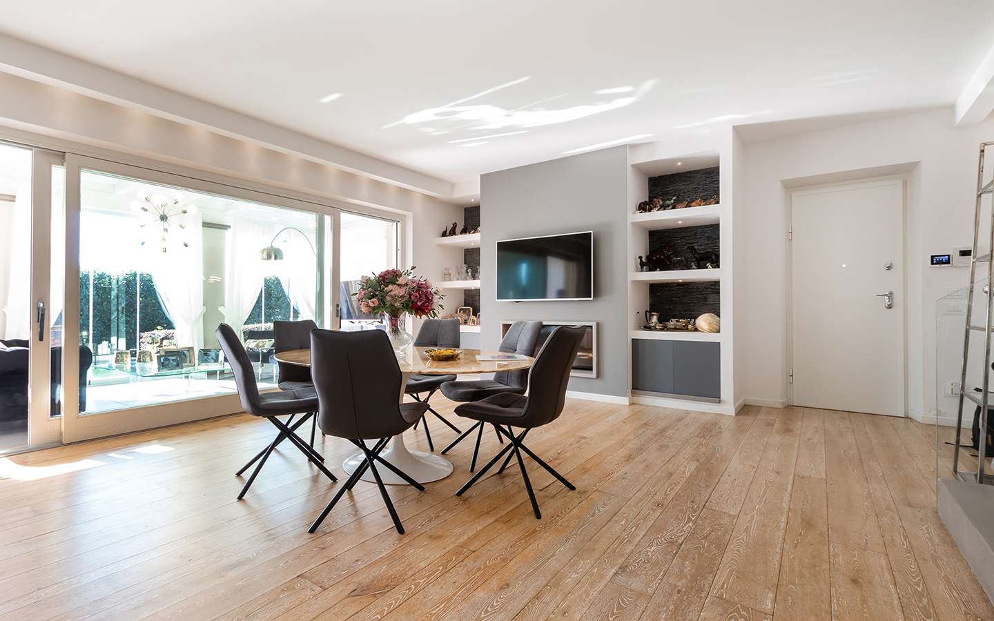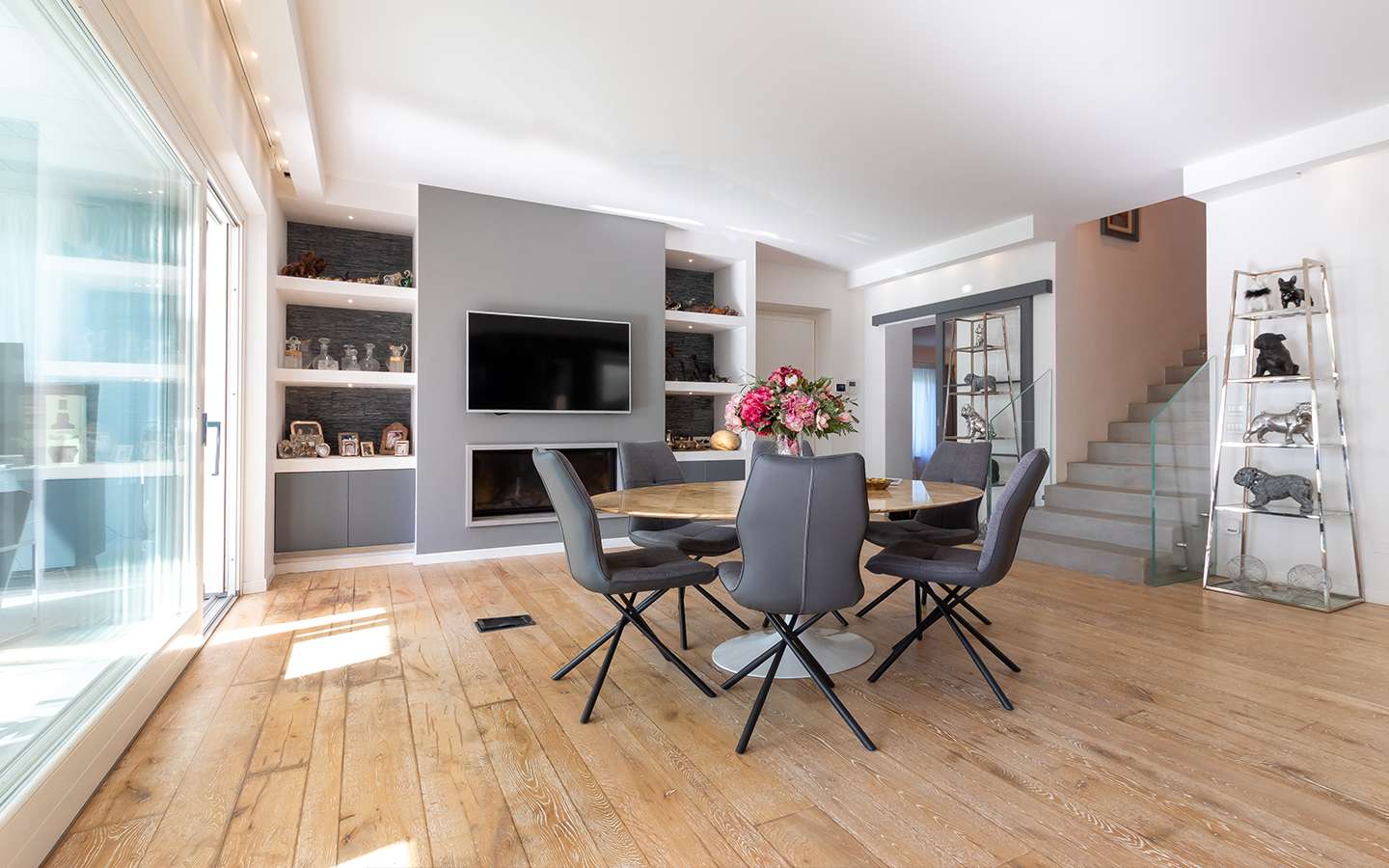 L'ingresso principale conduce a un ampio salone caratterizzato da un camino imponente, che aggiunge un tocco di calore e ospitalità. Le vetrate removibili, scorrevoli, creano una sinergia perfetta tra gli spazi interni ed esterni, garantendo una luminosità senza pari. La cucina su misura, adiacente al salone, è un capolavoro di design e funzionalità. Al piano terra, uno studio con bagno privato offre un'area di lavoro tranquilla e riservata, mentre una seconda camera con accesso indipendente completa l'offerta di comfort.