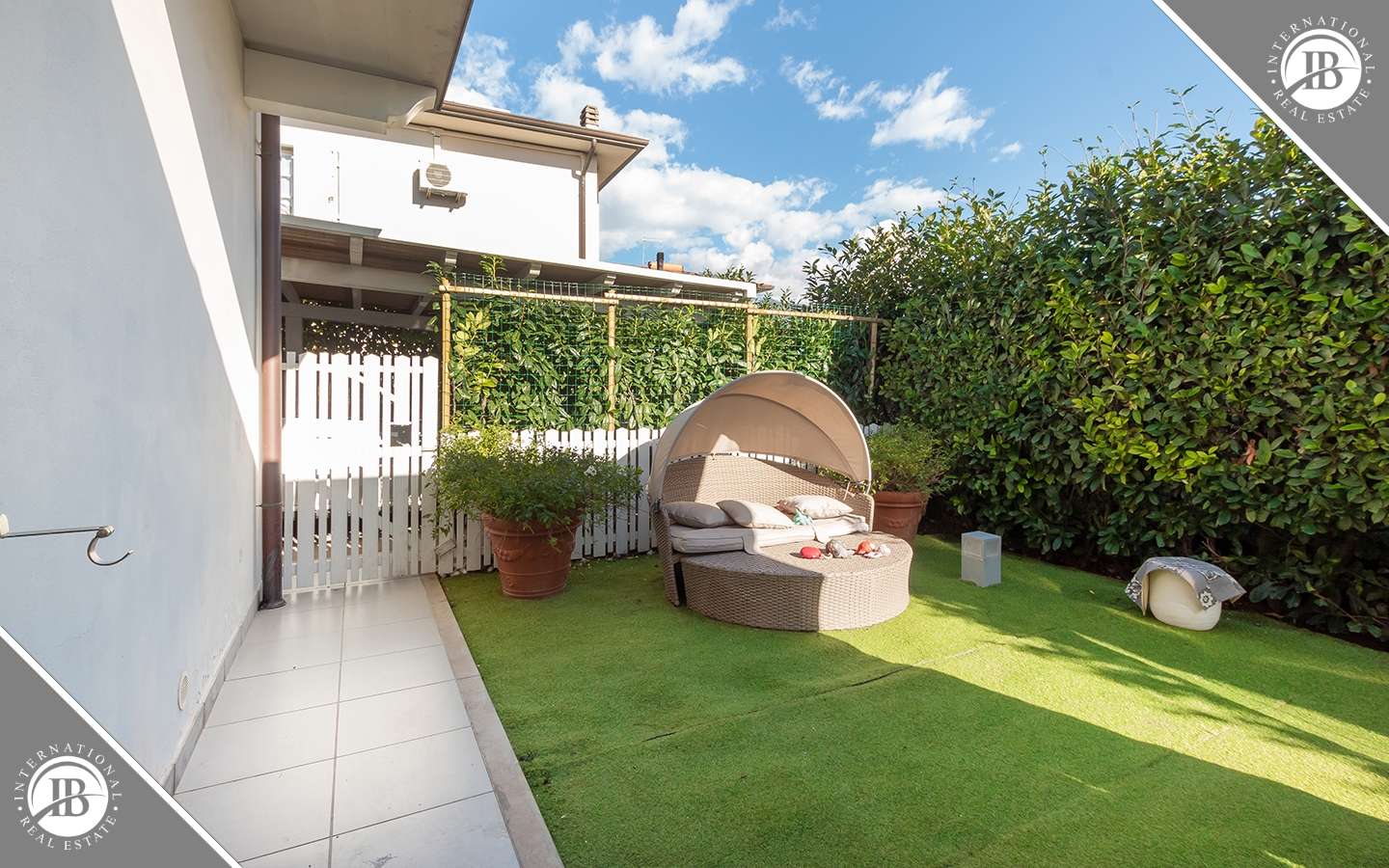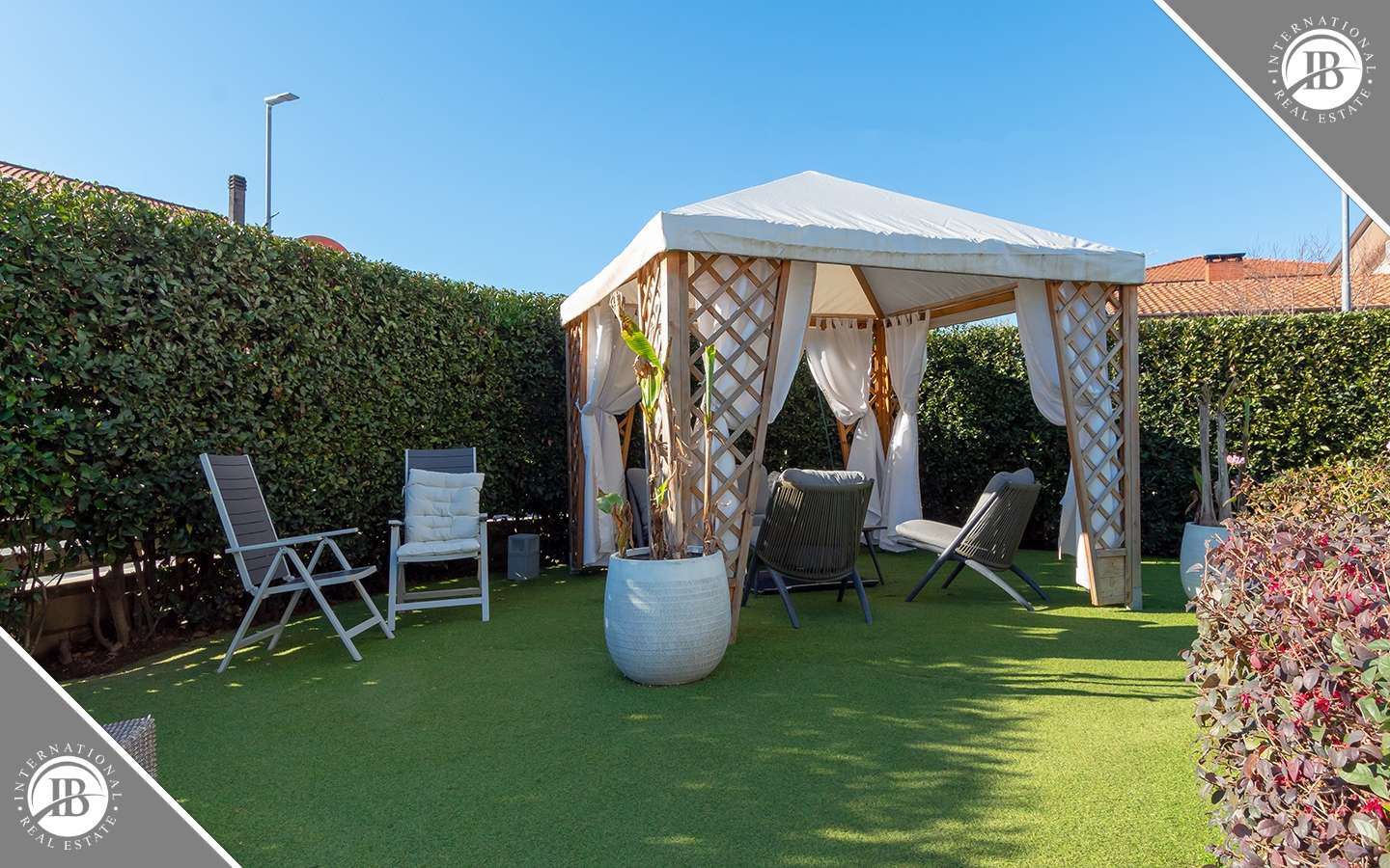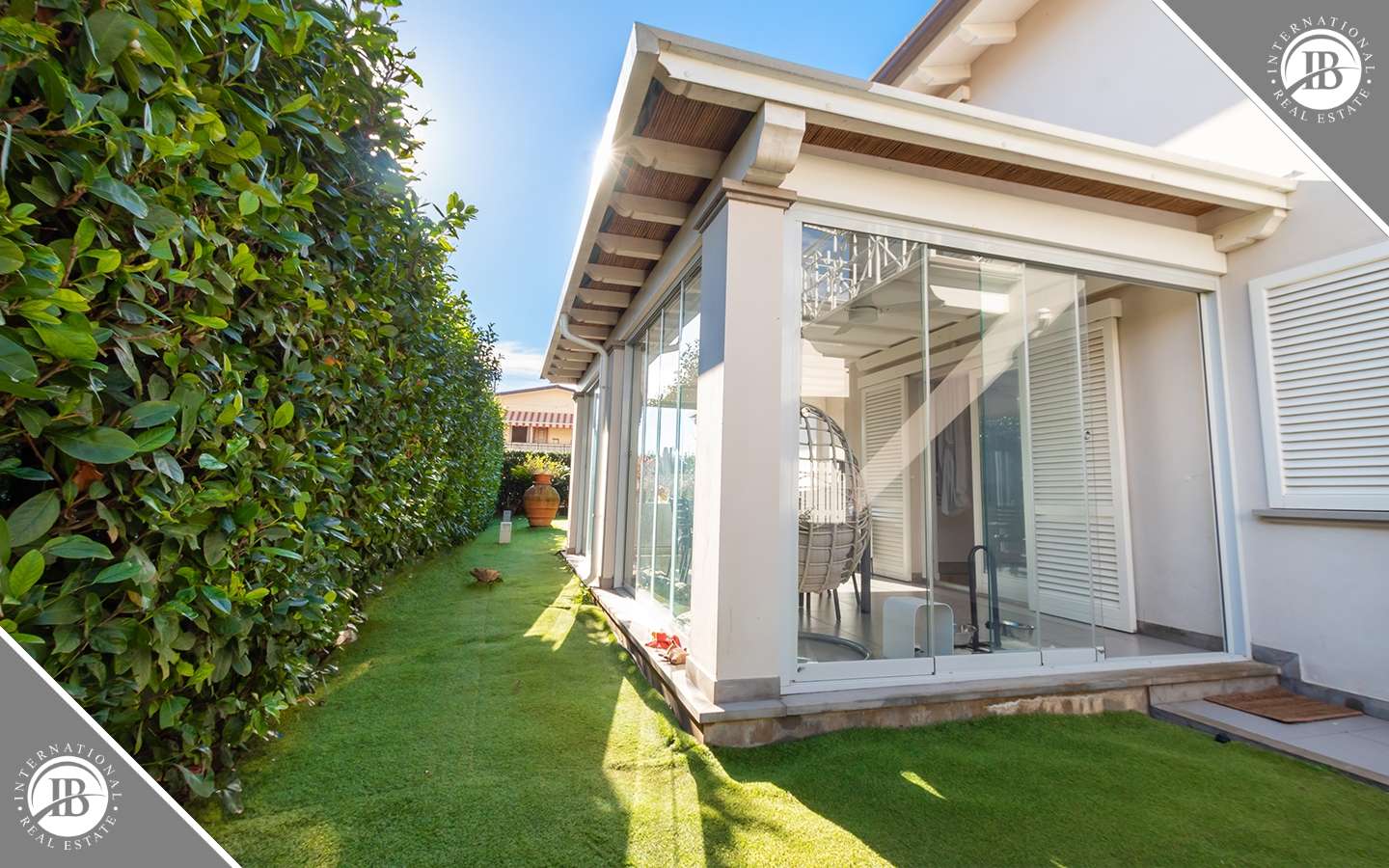 Il giardino di circa 500 mq abbraccia la villa con eleganza, offrendo un'oasi di tranquillità e relax. Zone esterne attrezzate consentono di godere appieno del clima mediterraneo, mentre la piscina Jacuzzi esterna promette momenti di puro piacere e distensione sotto il sole toscano. Verande coperte e vetrate panoramiche invitano gli ospiti a immergersi nella bellezza naturale circostante, creando una perfetta armonia tra spazi interni ed esterni.