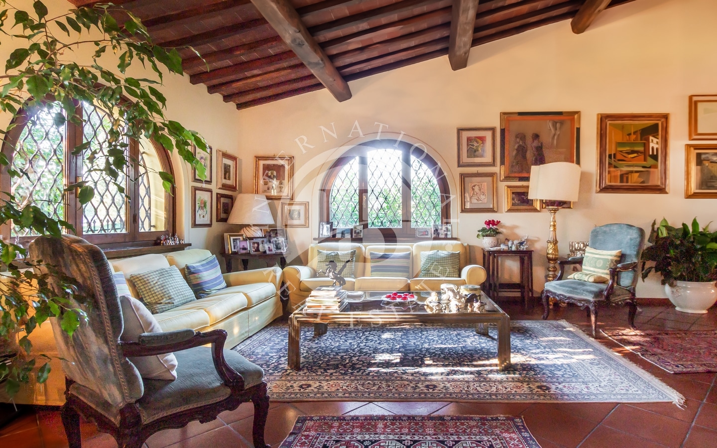 La proprietà, interamente recintata per garantire totale privacy, offre spazi eleganti distribuiti su tre piani, un’ampia piscina di 18x8,5 metri, una dependance indipendente e un incantevole lago privato, rendendola un’opportunità unica per chi cerca il massimo del lusso e della riservatezza.All’ingresso, un luminoso salone con camino accoglie gli ospiti, affacciandosi direttamente sul curato giardino circostante. Sullo stesso livello si trovano una spaziosa sala da pranzo e una cucina abitabile, ideali per vivere momenti di convivialità. Sempre al piano terra, una prima camera da letto con bagno en suite garantisce comfort e praticità.
