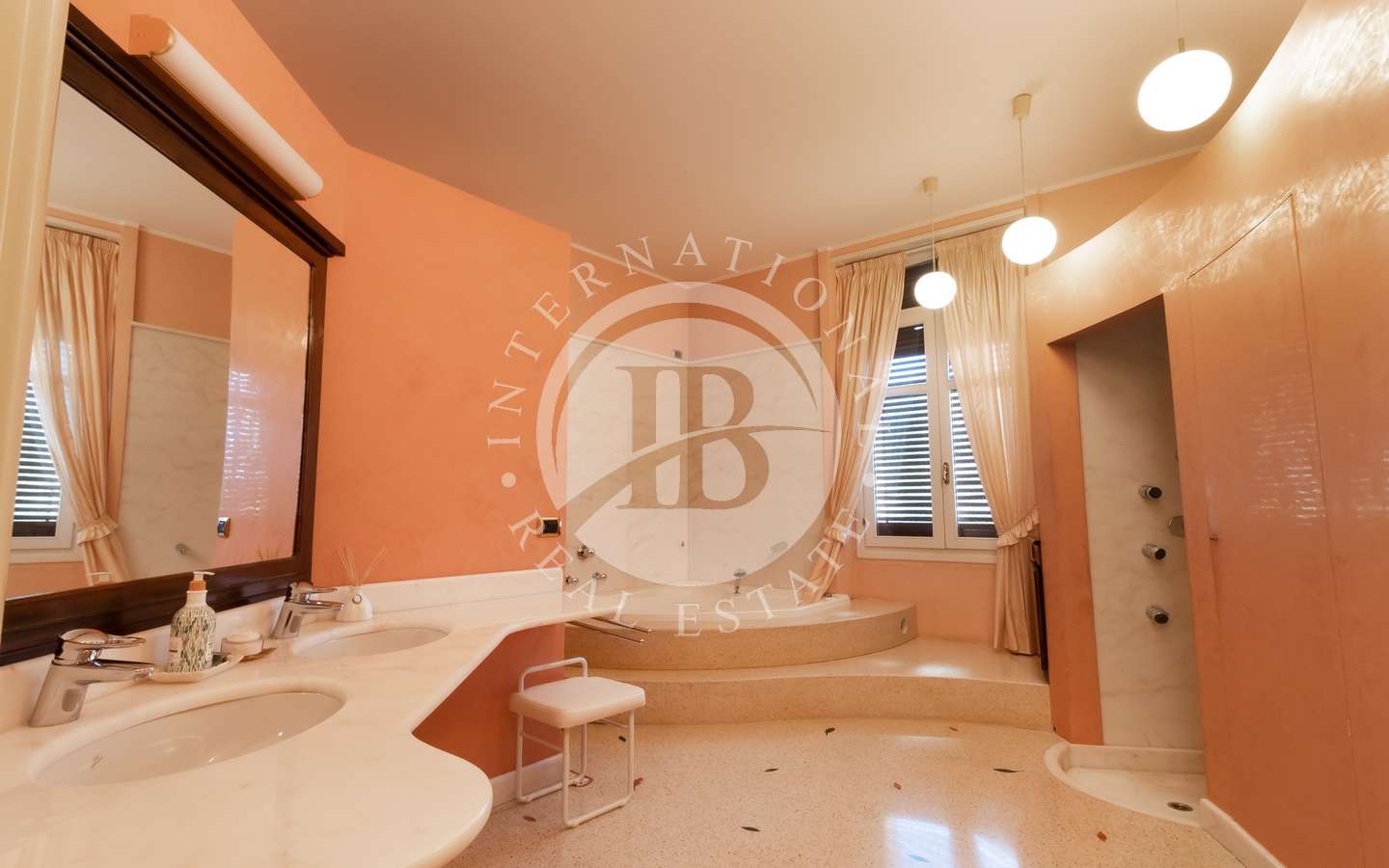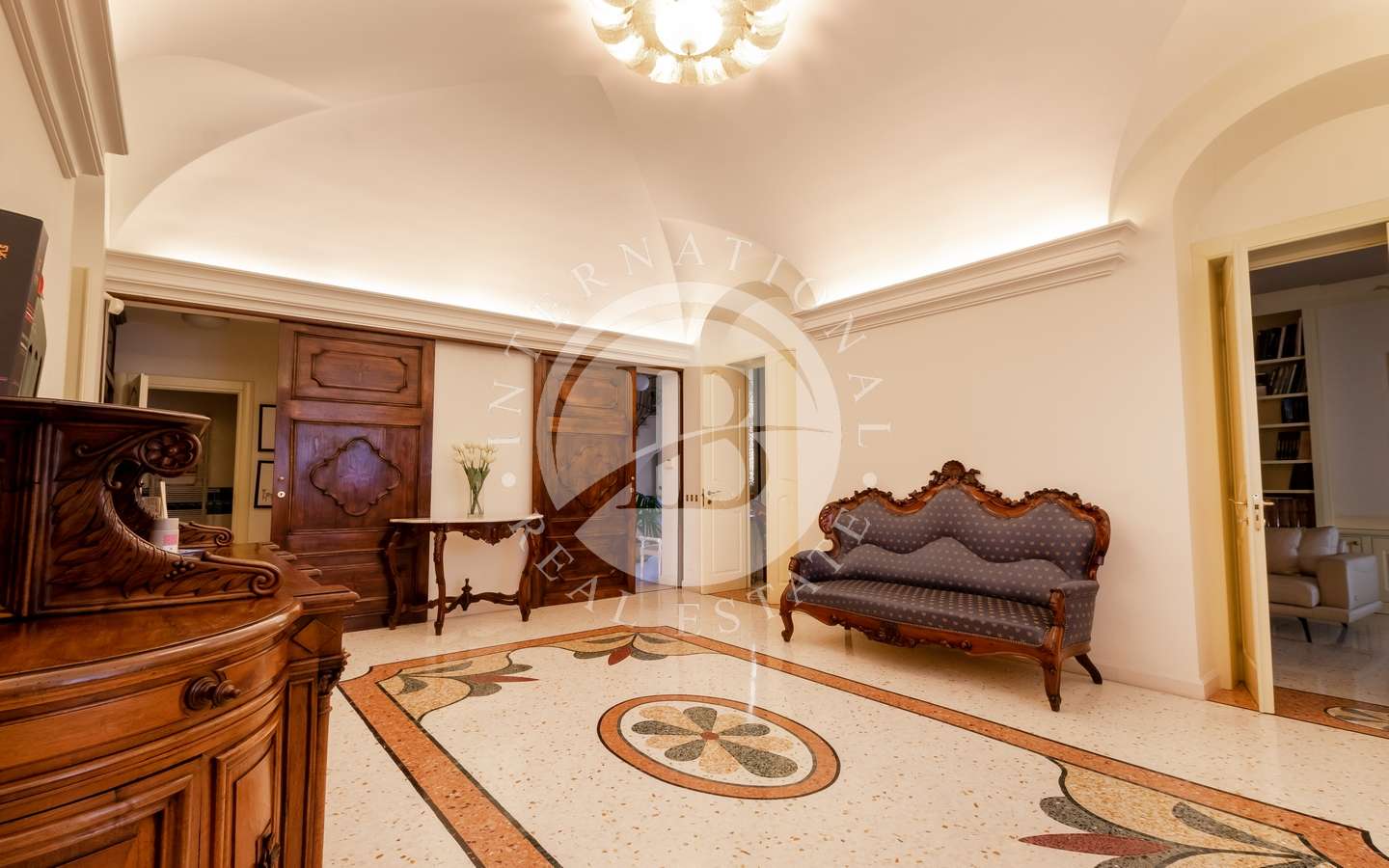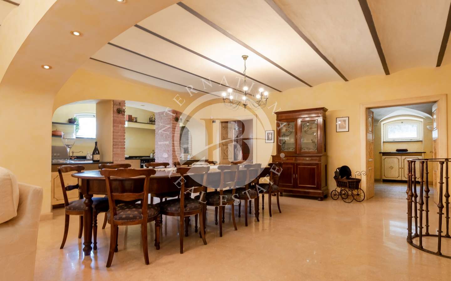 La villa si distingue per gli interni sontuosi e luminosi, impreziositi da eleganti scalinate in ferro battuto e un ascensore moderno. Le camere doppie, cinque in totale, emanano un'atmosfera di lusso, mentre gli antichi caminetti d'epoca e le vetrate preziose ne esaltano il fascino.