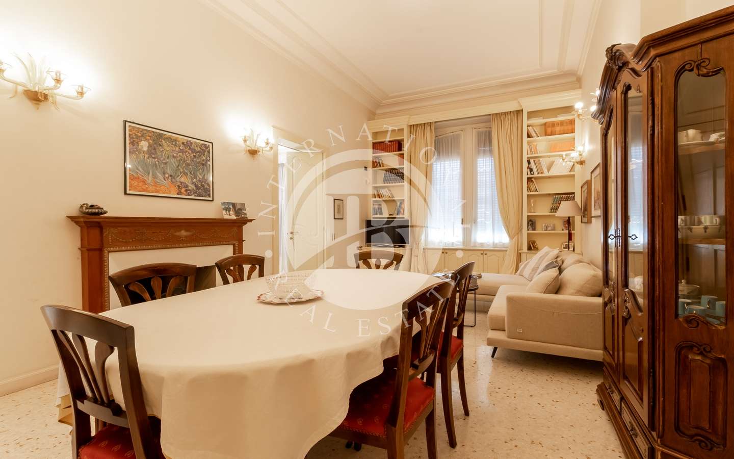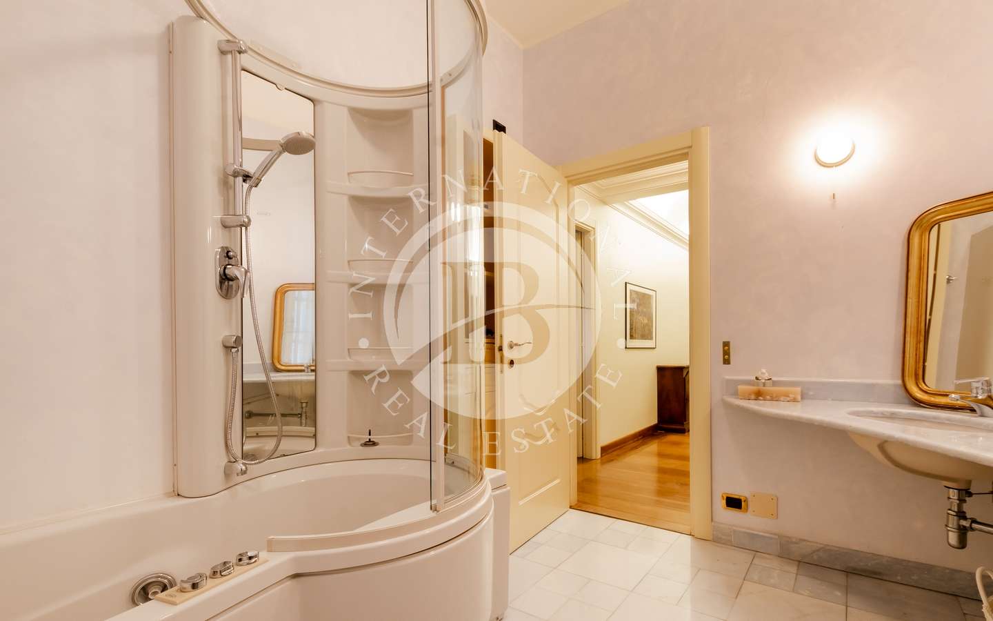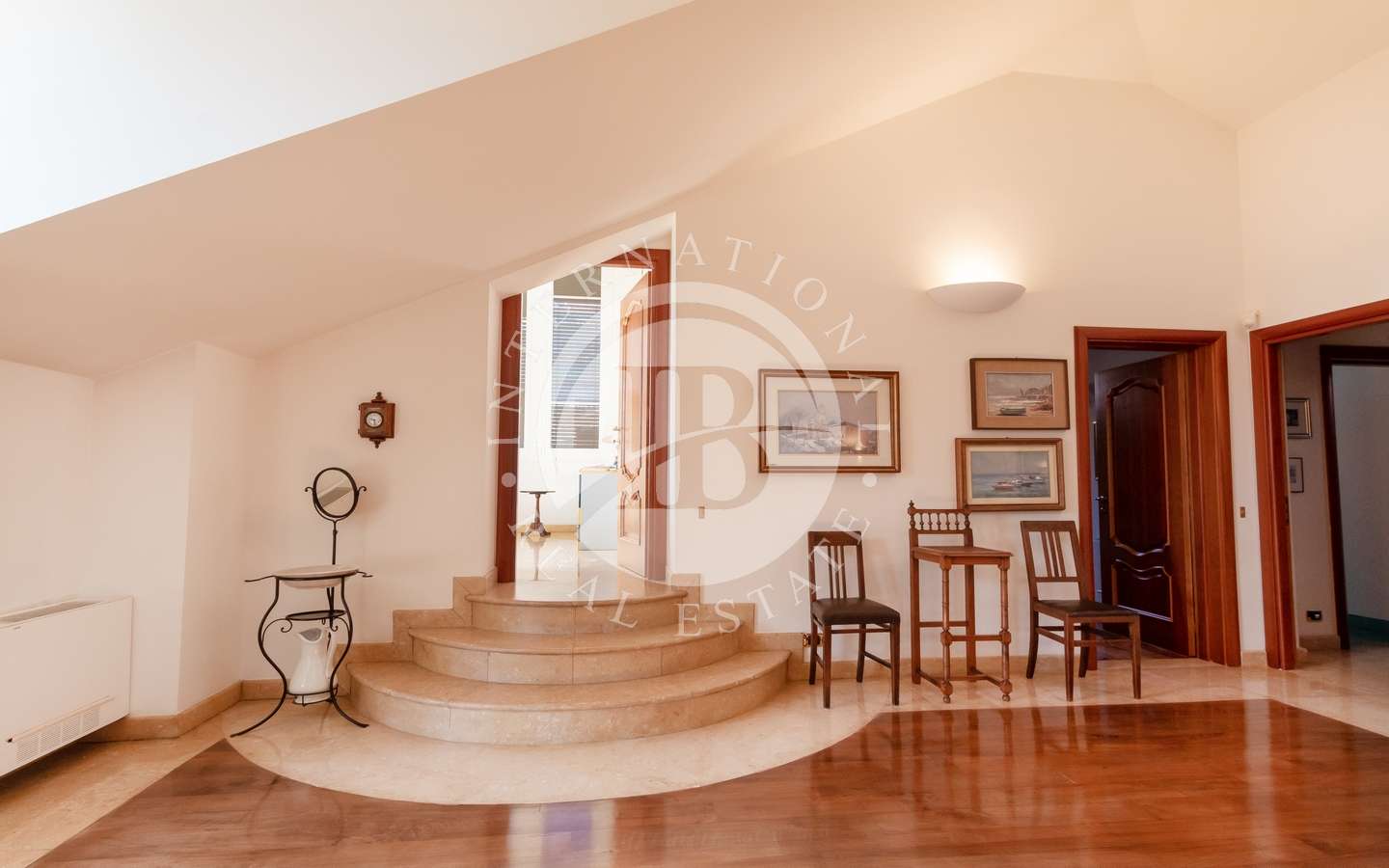 La villa si distingue per gli interni sontuosi e luminosi, impreziositi da eleganti scalinate in ferro battuto e un ascensore moderno. Le camere doppie, cinque in totale, emanano un'atmosfera di lusso, mentre gli antichi caminetti d'epoca e le vetrate preziose ne esaltano il fascino.
