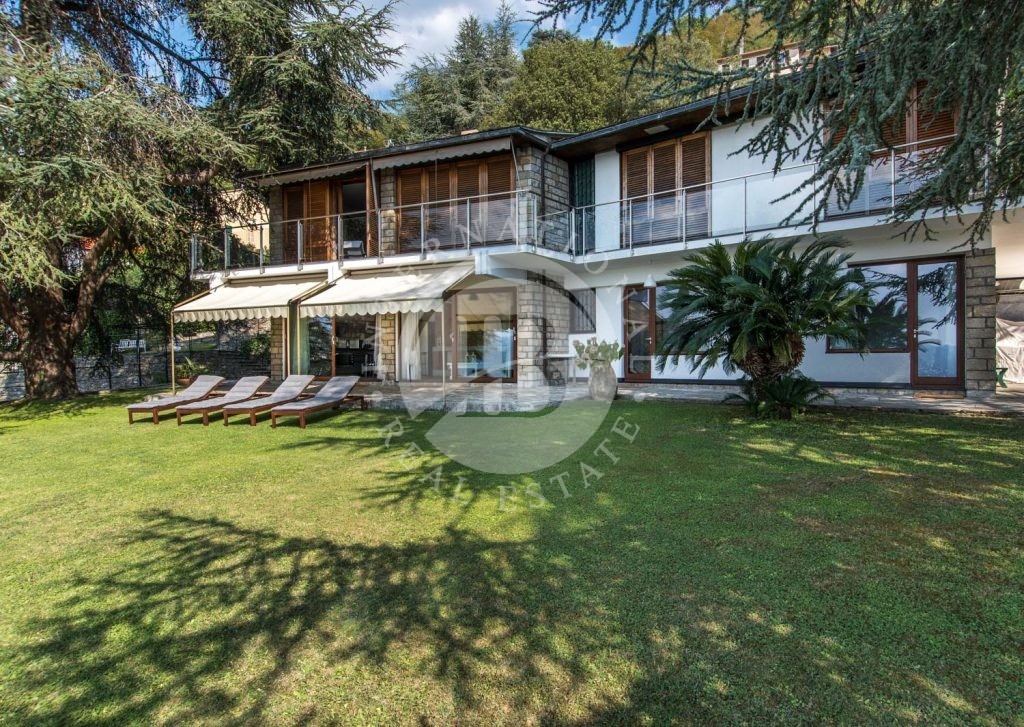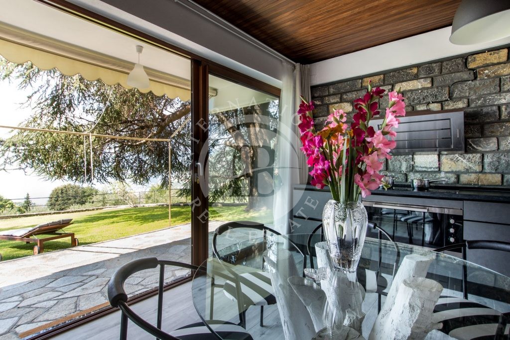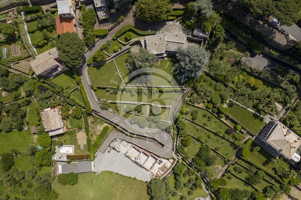 Comodo l’accesso con strada privata carrabile che conduce a tre ville più una dependance, circondate da giardini e terreno di proprietà per poco meno di 1 ettaro.