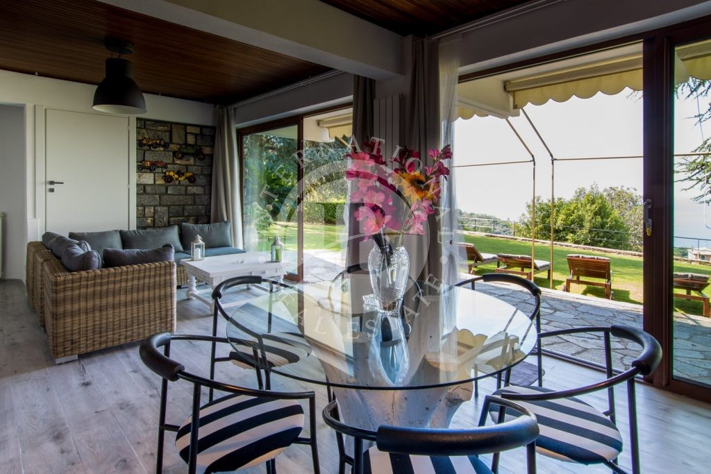 La villa principale ha una superficie catastale di 256 mq ed è distribuita su due piani, con 6 camere, 6 bagni, cucina e zona living; ogni ambiente della casa ha vetrate a tutta parete (rarità per la zona), dalle quali si gode un panorama strepitoso.