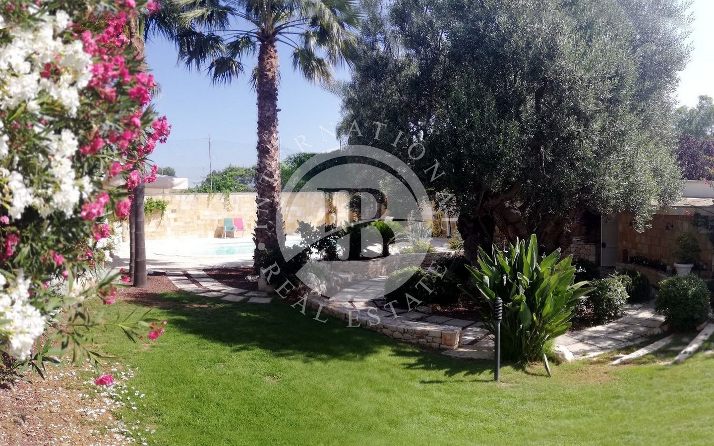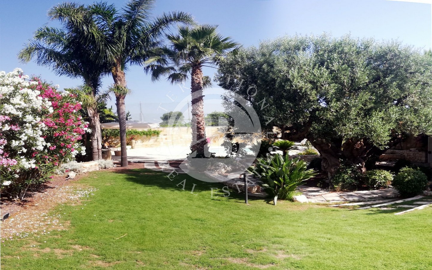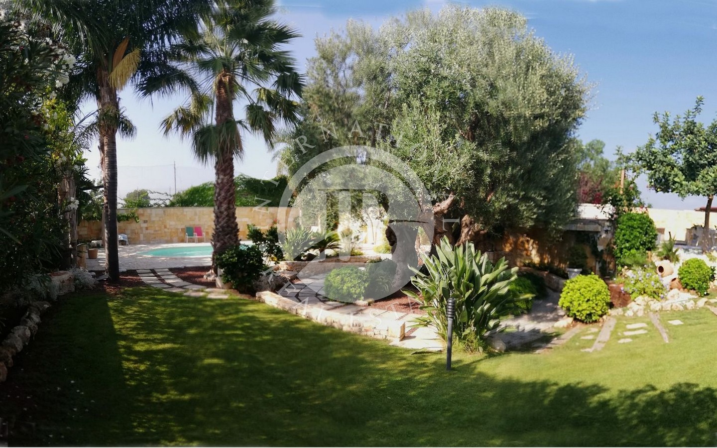 Il cuore di questa proprietà è rappresentato dal lussureggiante giardino piantumato con alberi di pregio che circonda la corte con piscina attrezzata, offrendo un'oasi di relax e tranquillità ideale per godersi il clima mediterraneo e le giornate di sole.