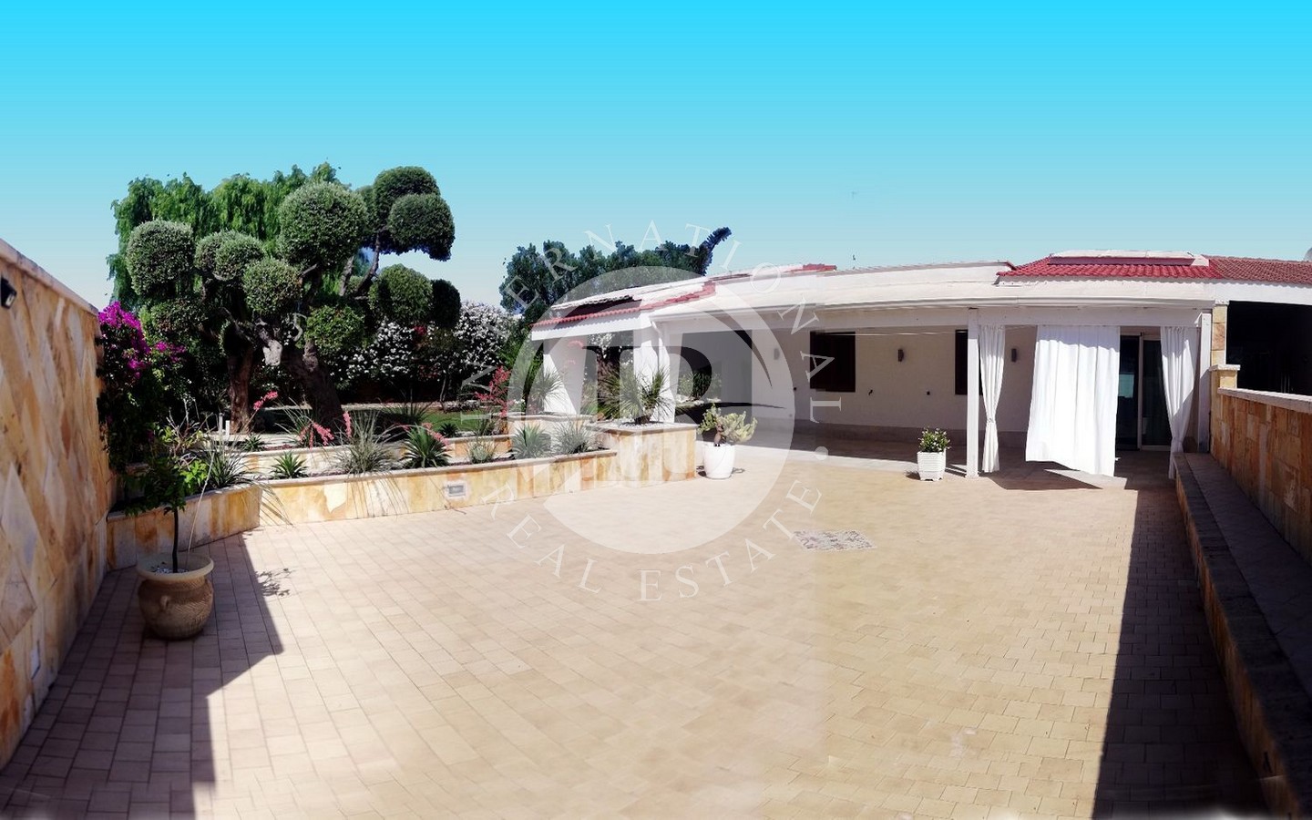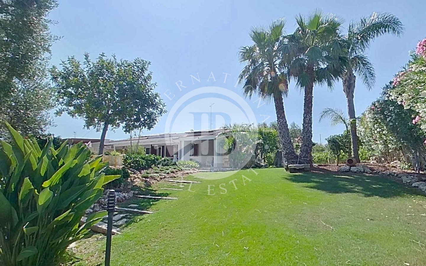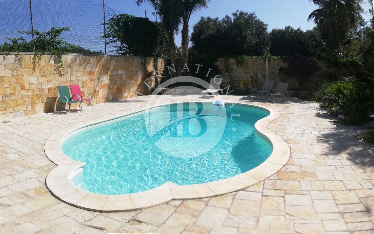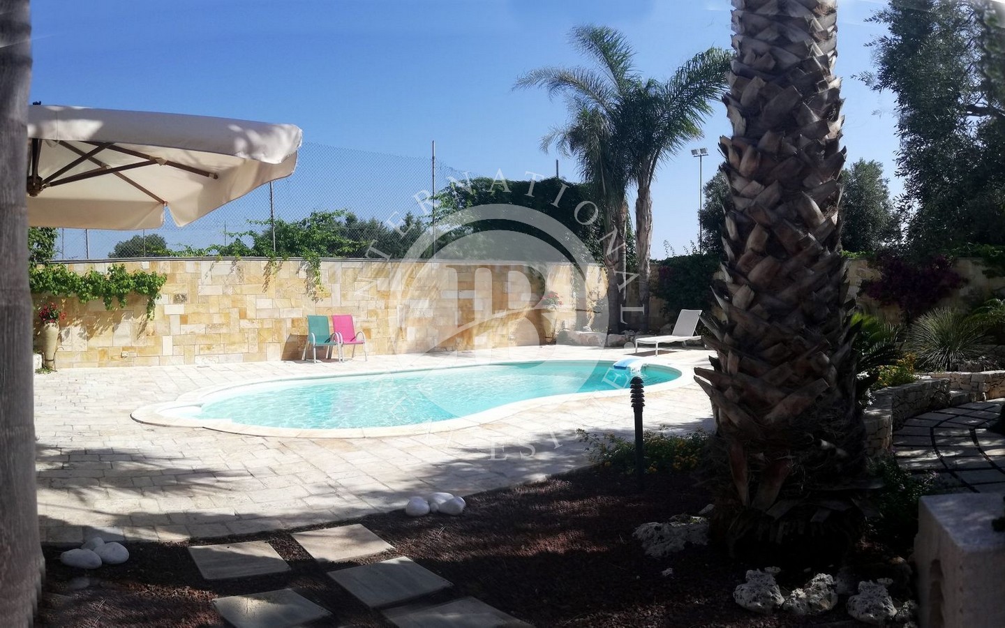 Il cuore di questa proprietà è rappresentato dal lussureggiante giardino piantumato con alberi di pregio che circonda la corte con piscina attrezzata, offrendo un'oasi di relax e tranquillità ideale per godersi il clima mediterraneo e le giornate di sole.