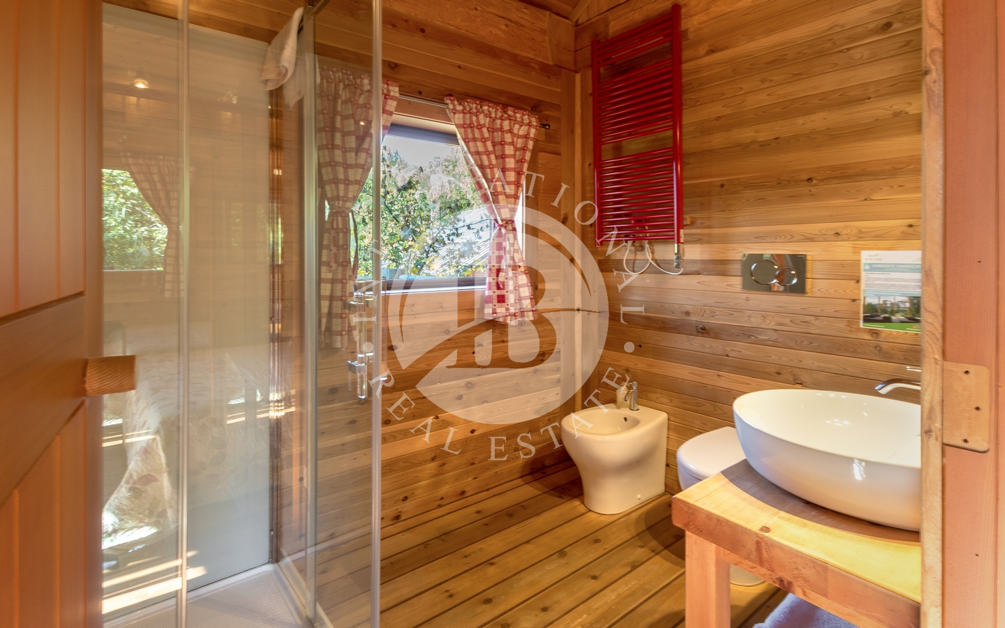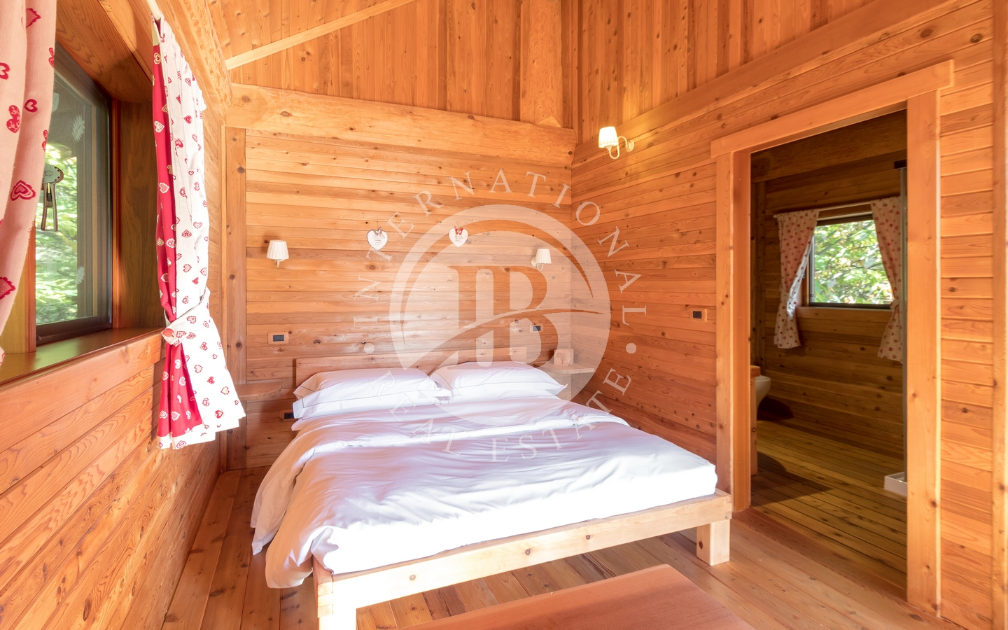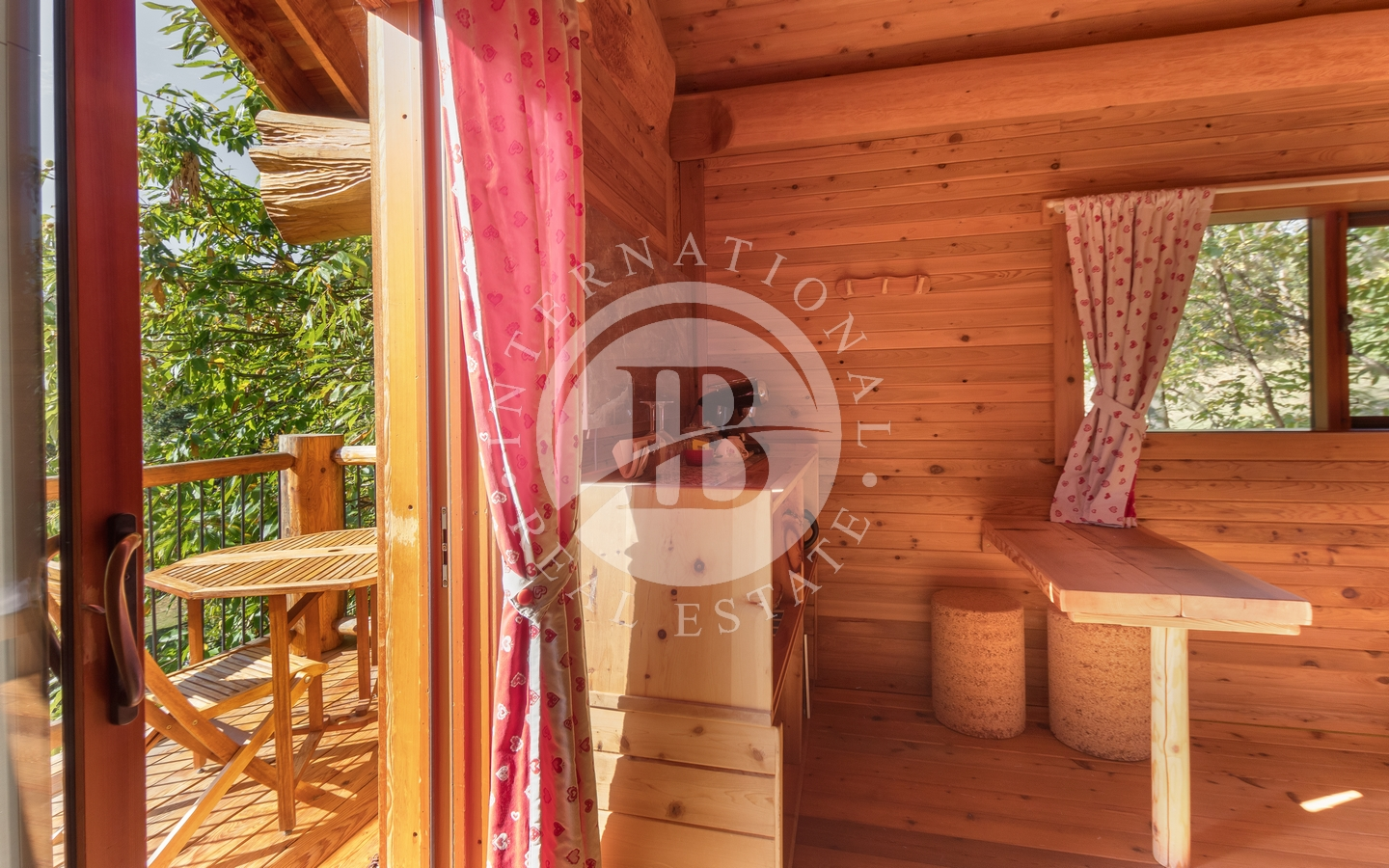 Completano la tenuta due suggestive case sugli alberi, anch’esse indipendenti e costruite in Western Red Cedar, perfette per accogliere ospiti in totale privacy. A supporto della proprietà, un fabbricato accessorio di circa 130 mq offre interessanti possibilità di riconversione in area wellness, piscina coperta o spazi dedicati all’equitazione.