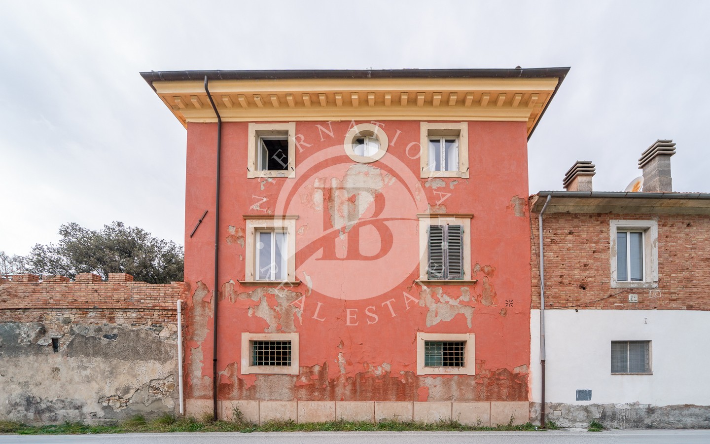 Accanto alla villa, si erge una storica casa colonica, che aggiunge un ulteriore potenziale alla proprietà. Al piano terra, spazi generosi, un tempo utilizzati come cantina, ricovero attrezzi e magazzino, raccontano le tradizioni agricole del passato. Salendo la caratteristica scala esterna, si accede al primo piano, dove si trova un appartamento con cucina, locale di sgombero e tre camere da letto, che offre diverse possibilità di utilizzo.