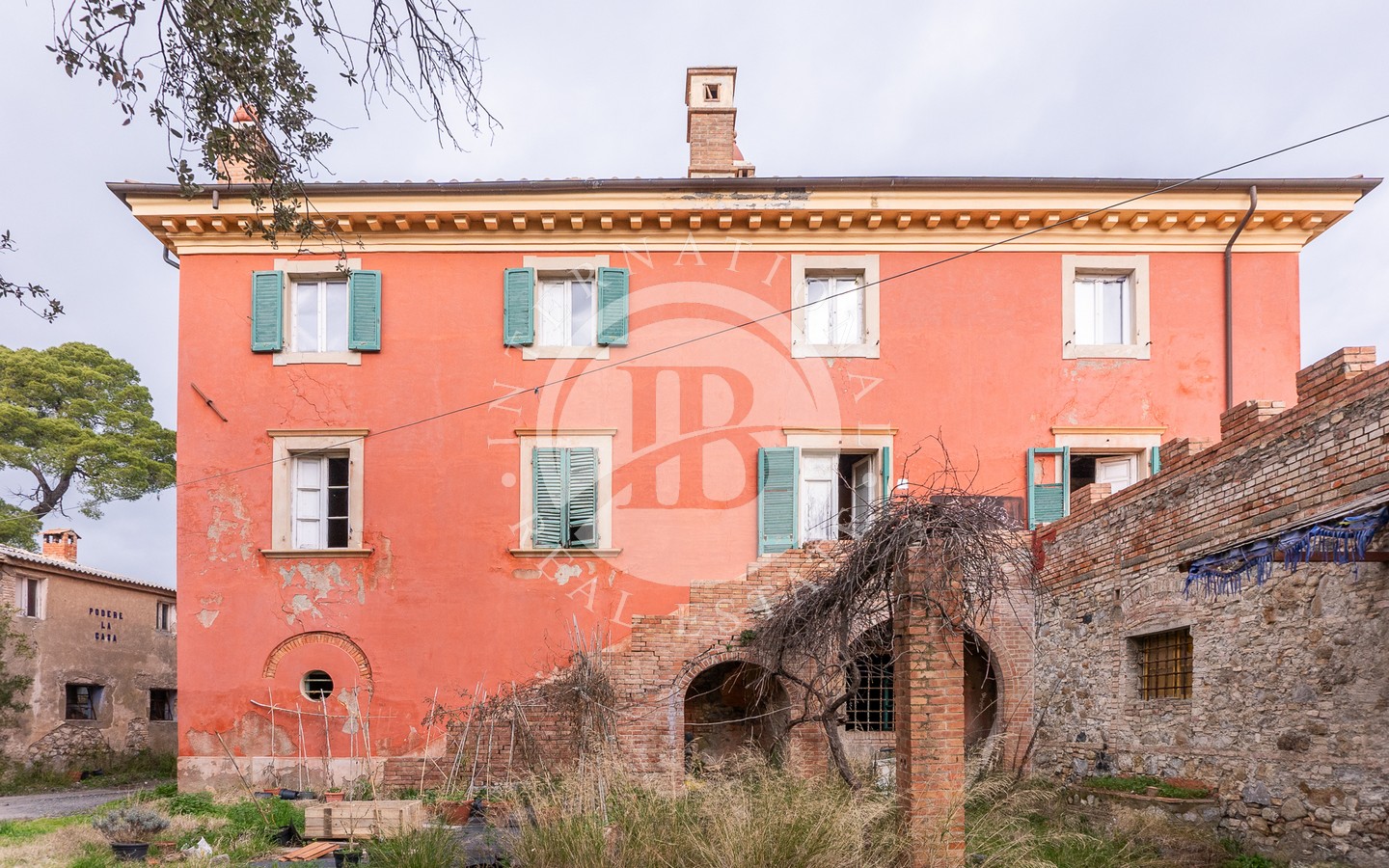 La villa ha subito un intervento di ristrutturazione, in particolare sulla copertura del secondo piano, ma il primo piano e il piano terra necessitano di una ristrutturazione, così come la casa colonica adiacente. Questo rappresenta un'opportunità entusiasmante per ristrutturare e valorizzare questi edifici storici, creando una residenza di prestigio o una struttura turistica di charme, immersa nella bellezza e tranquillità della campagna toscana.