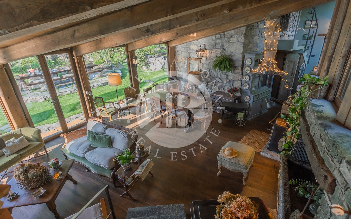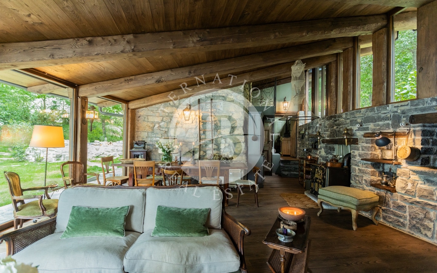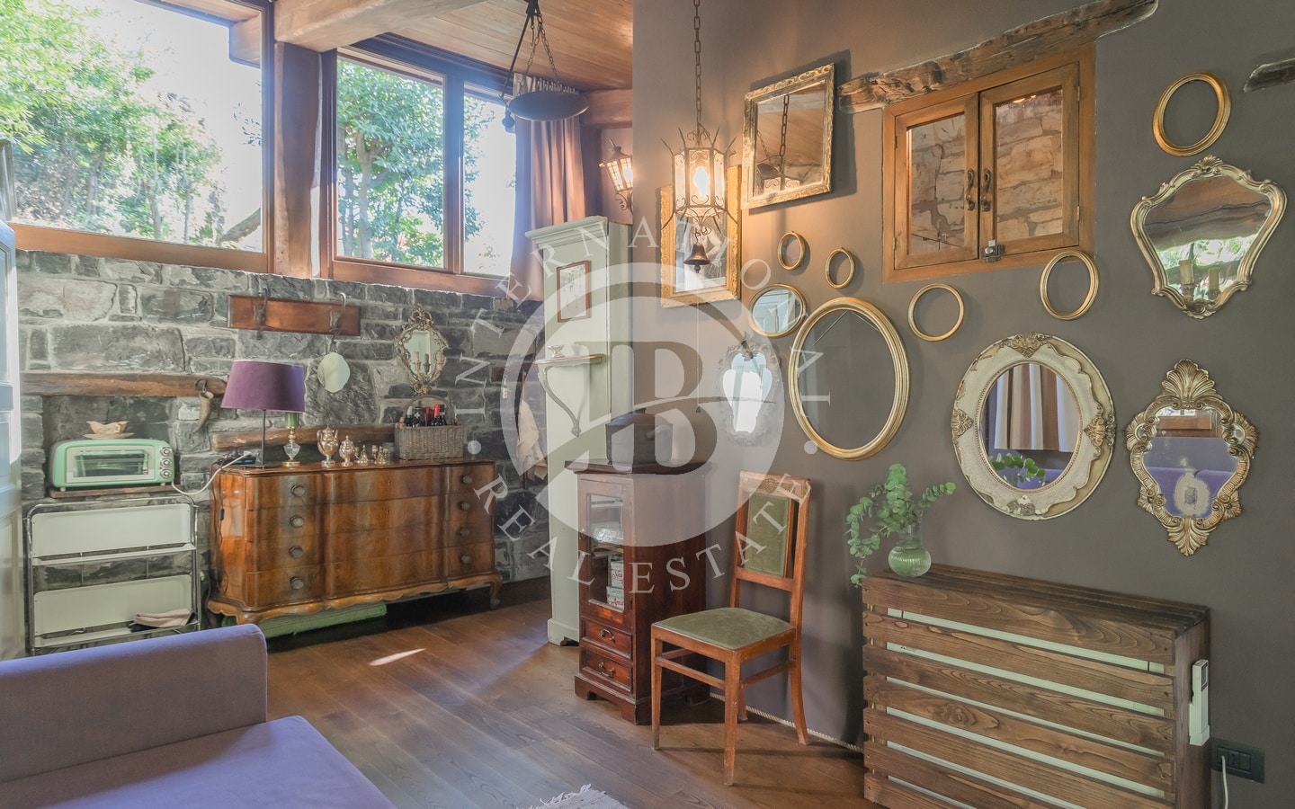 Con una superficie interna di 120 mq, la residenza si sviluppa in ambienti accoglienti e raffinati. Due camere doppie con bagno privato offrono spazi intimi e confortevoli, mentre il salotto, arredato con pezzi d'epoca, include un divano letto per eventuali ospiti. Una veranda in legno e vetro regala una vista suggestiva sul lago, creando un’atmosfera perfetta per momenti di relax. Particolarmente caratteristica è la biblioteca, realizzata con antiche assi di castagno, e la cucina, arricchita da un lavello scavato nel granito, che richiama la tradizione locale.