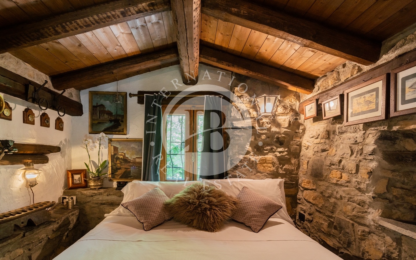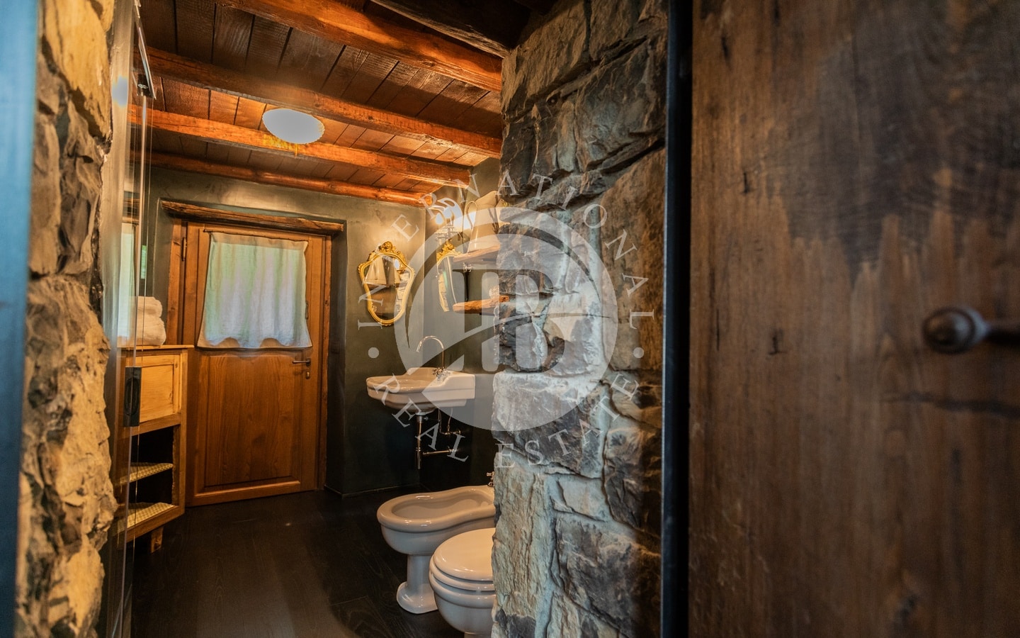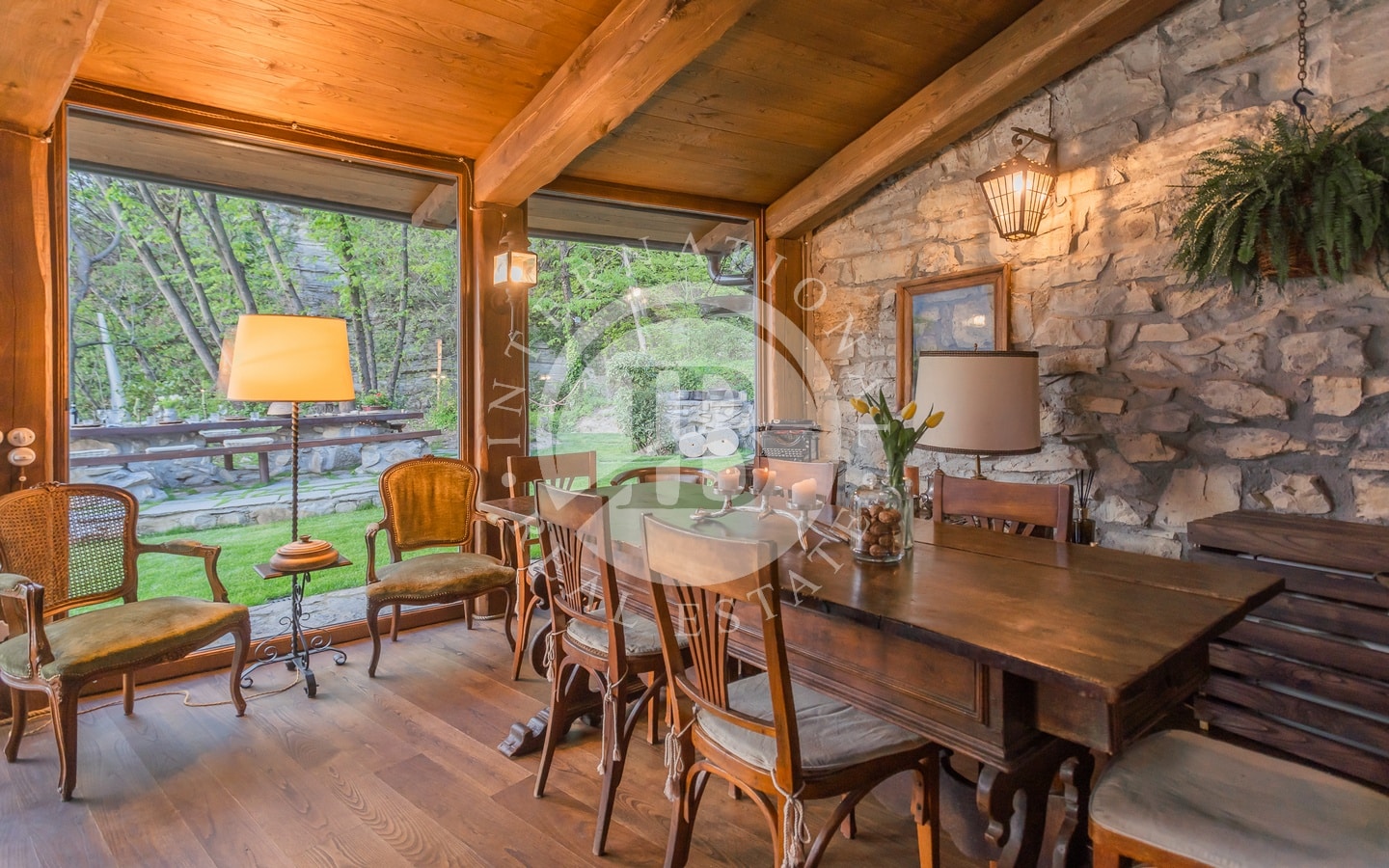 Con una superficie interna di 120 mq, la residenza si sviluppa in ambienti accoglienti e raffinati. Due camere doppie con bagno privato offrono spazi intimi e confortevoli, mentre il salotto, arredato con pezzi d'epoca, include un divano letto per eventuali ospiti. Una veranda in legno e vetro regala una vista suggestiva sul lago, creando un’atmosfera perfetta per momenti di relax. Particolarmente caratteristica è la biblioteca, realizzata con antiche assi di castagno, e la cucina, arricchita da un lavello scavato nel granito, che richiama la tradizione locale.