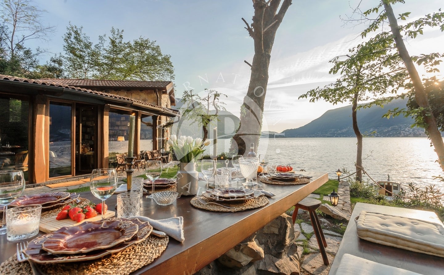 L’accesso alla dimora avviene esclusivamente via lago, garantendo un isolamento totale e un’esperienza unica.