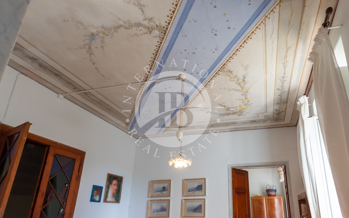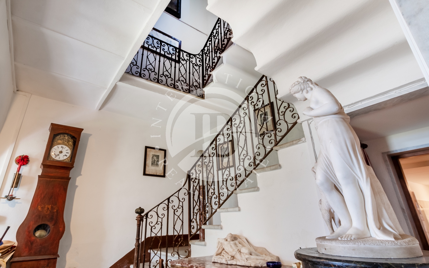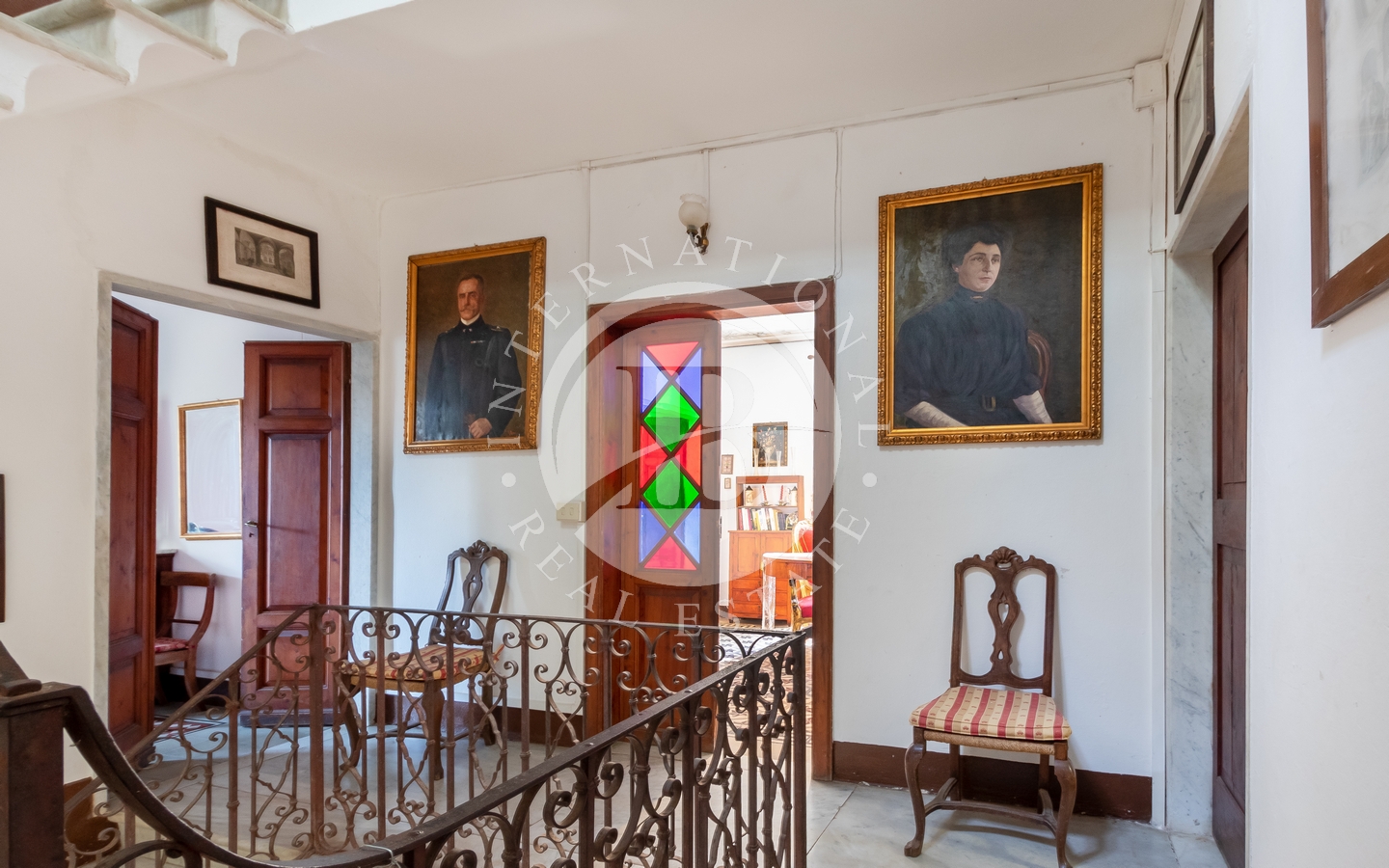 Gli interni di questa residenza sono un affascinante racconto di epoche passate, con il piano terra che accoglie una cucina tradizionale, un luminoso soggiorno, uno studio, un bagno e un ampio andito di ingresso coronato da una scala in marmo che porta ai piani superiori. A questo piano vi è anche la grande cantina, perfetta per essere ristrutturata ed arredata come taverna. Il primo piano ospita cinque camere e un bagno, mentre il secondo offre quattro ulteriori camere.