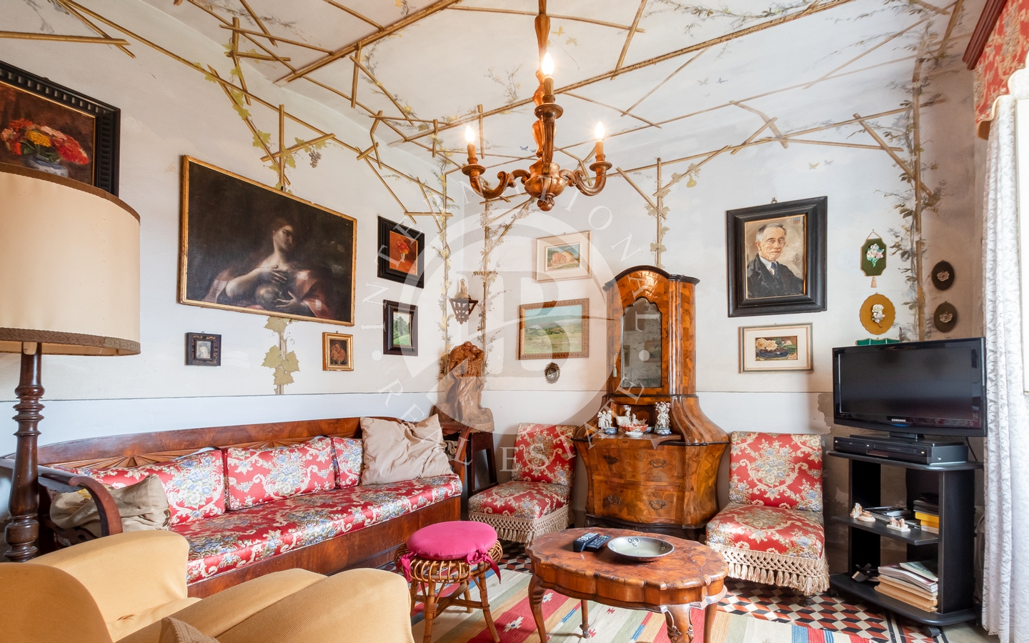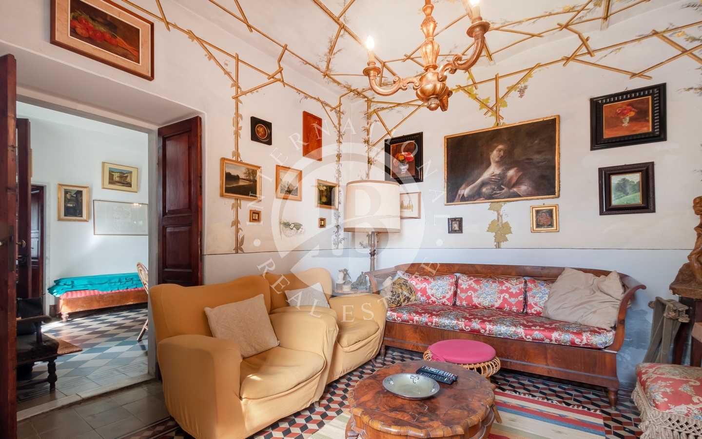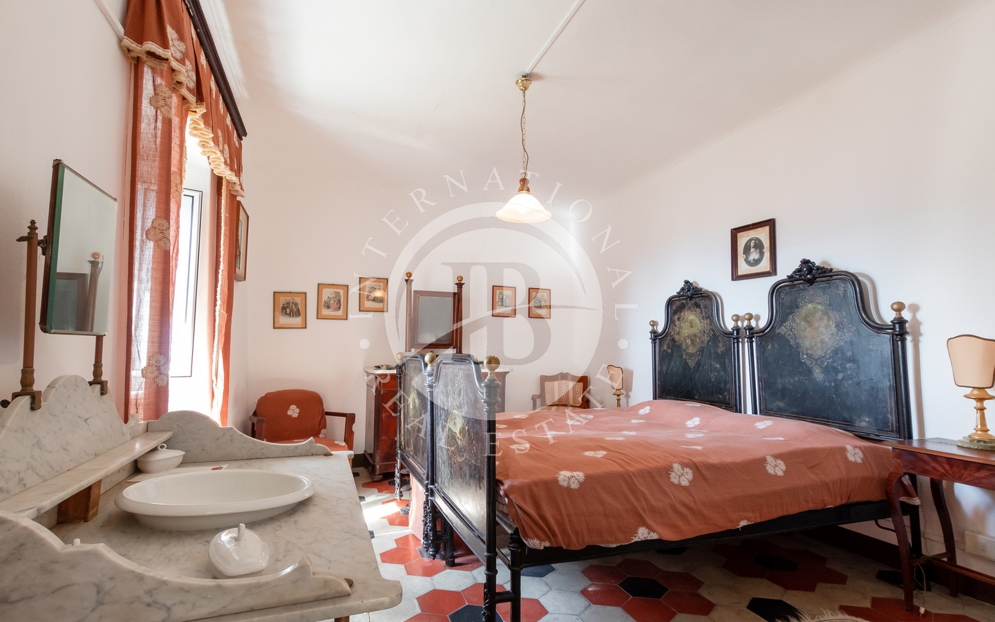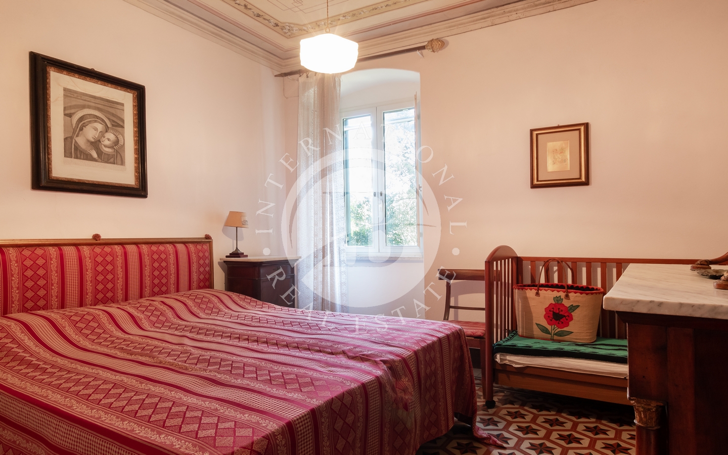Gli interni di questa residenza sono un affascinante racconto di epoche passate, con il piano terra che accoglie una cucina tradizionale, un luminoso soggiorno, uno studio, un bagno e un ampio andito di ingresso coronato da una scala in marmo che porta ai piani superiori. A questo piano vi è anche la grande cantina, perfetta per essere ristrutturata ed arredata come taverna. Il primo piano ospita cinque camere e un bagno, mentre il secondo offre quattro ulteriori camere.