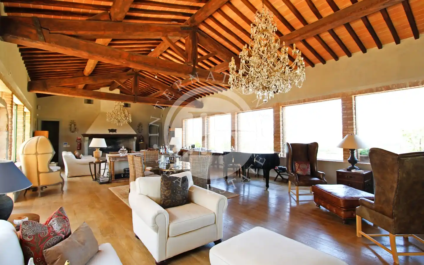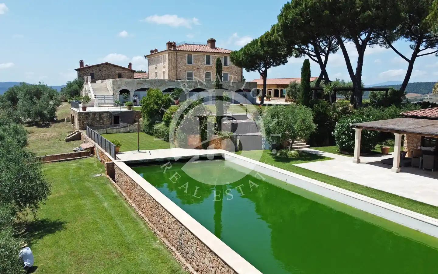 Due strutture, di 289 e 235 metri quadrati, sono state destinate ad attività ricreative e trattamenti spa. A completamento di questa elegante proprietà vi sono una cantina, una sala cinema, strutture per la produzione di olio d'oliva, una stalla, stanze di servizio e un ampio parcheggio.La proprietà mozzafiato è circondata dall'autentico e pittoresco paesaggio toscano, adornato da valli di ulivi e vigneti. L'ampia estensione di 34 ettari di terreno comprende splendi di uliveti, vigneti e un parco privato. Dodici ettari si trovano nel territorio principale, mentre ulteriori 22 ettari, con campi e un oliveto con 500 alberi, sono situati a circa 2,5 chilometri verso la città di Massa Marittima.