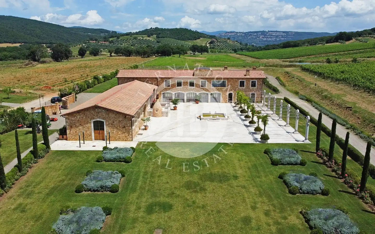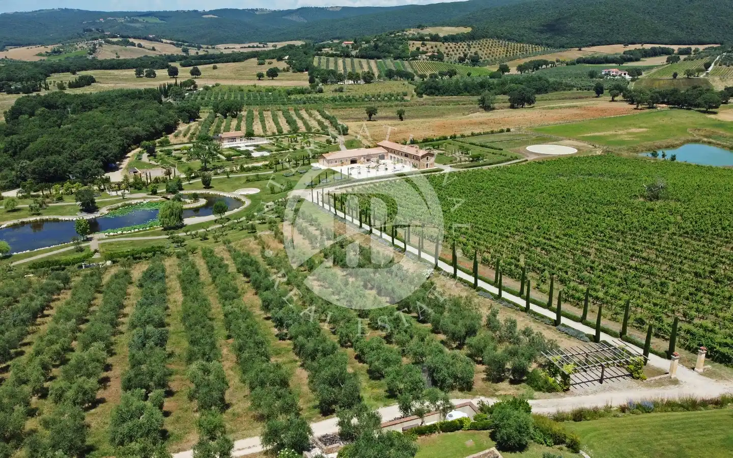 Circondata dagli ulivi e dai vigneti caratteristici della tenuta, questa incantevole proprietà si trova a Massa Marittima, nella provincia di Grosseto.Questa magnifica tenuta comprende cinque edifici principali, insieme a strutture ausiliarie e vari servizi, per un totale di 2745 metri quadrati di spazio interno. La villa principale, che si estende su una superficie di 714 metri quadrati su tre piani, offre una serie di spazi comuni, tra cui ampi saloni con camini, una zona reception, un ristorante con cucina completamente attrezzata, nonché cinque camere da letto con bagni privati.