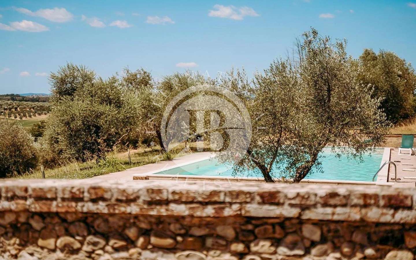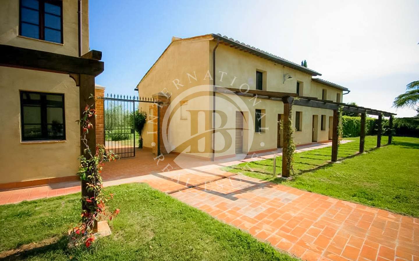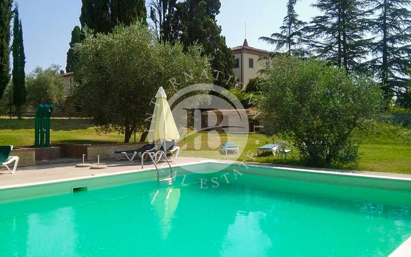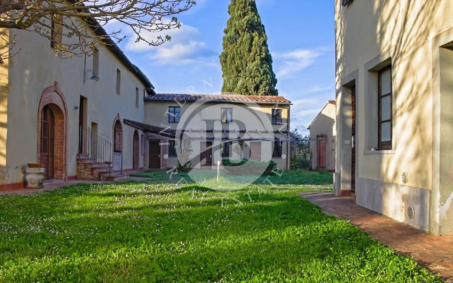 Il complesso residenziale è costituito da tre edifici distinti, immersi in un ampio parco con una vasca ornamentale, piscina con vista su Siena. La proprietà si trova nel Comune di Castelnuovo Berardenga (SI) nella frazione di Monteaperti.