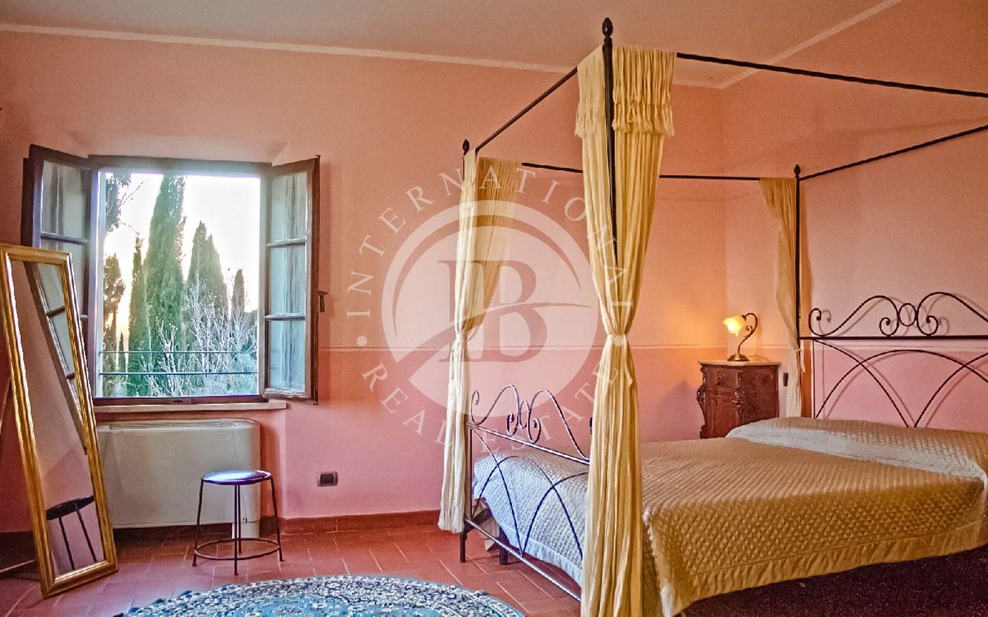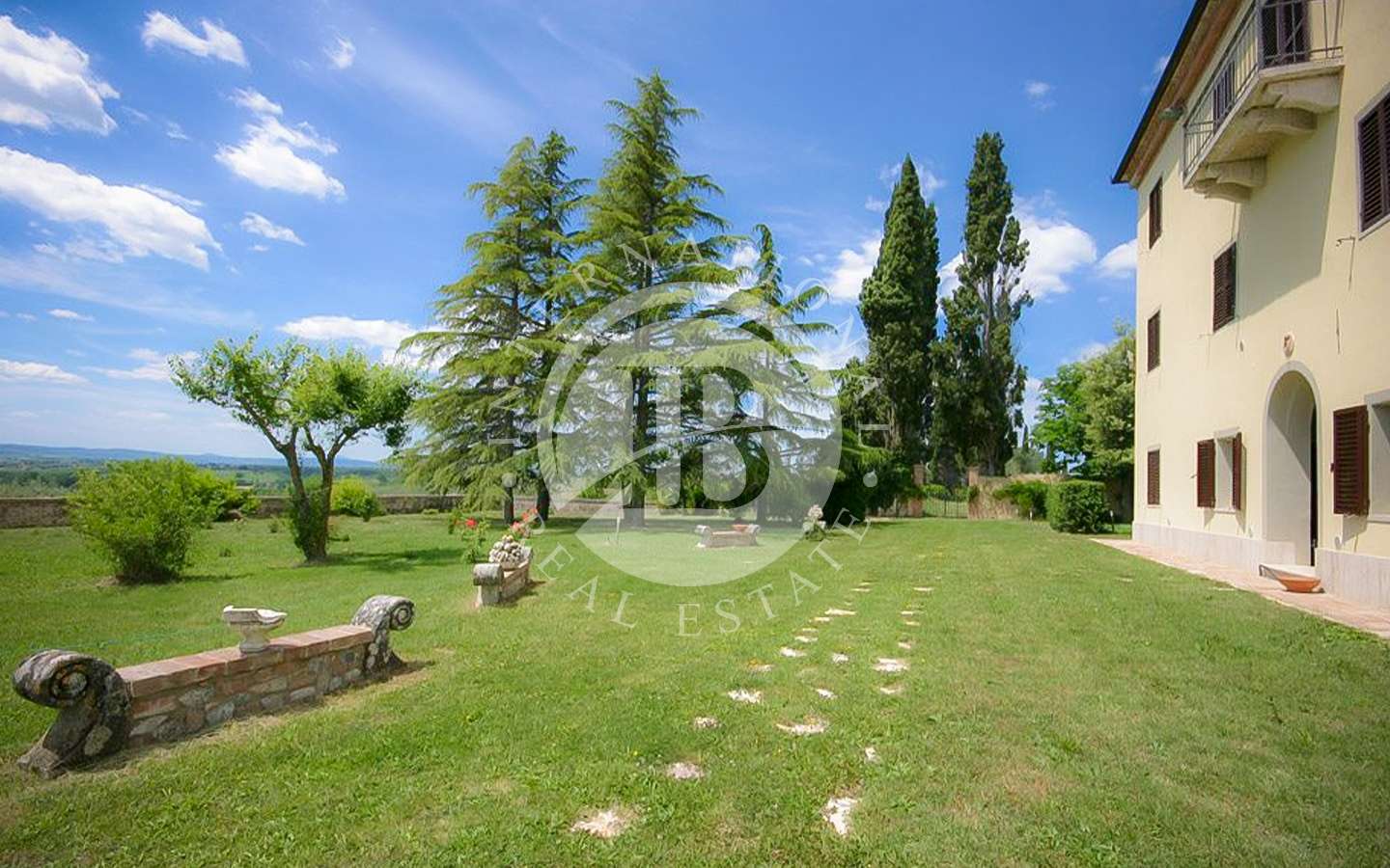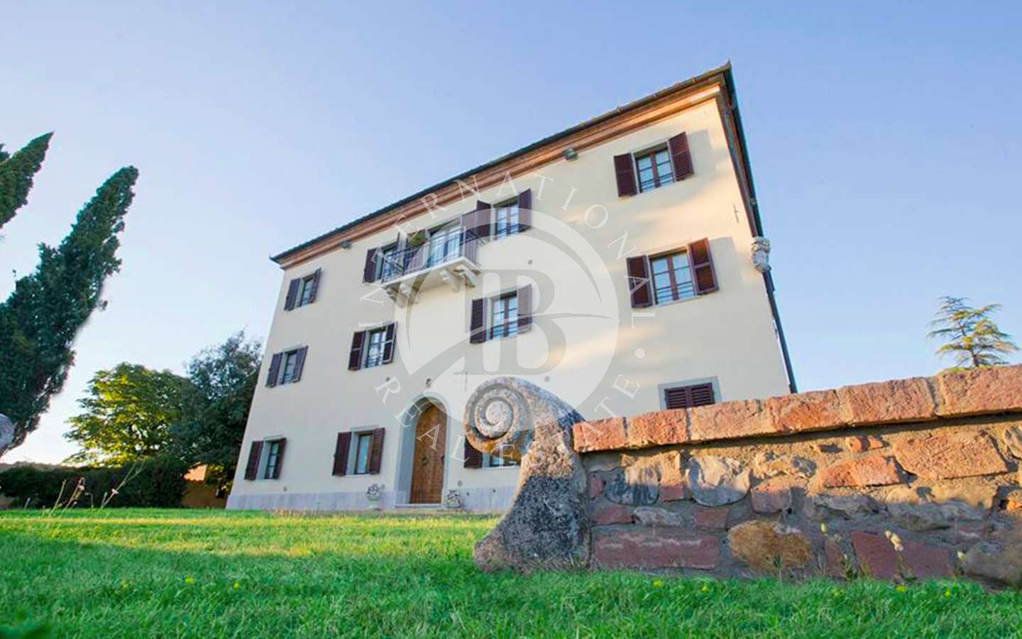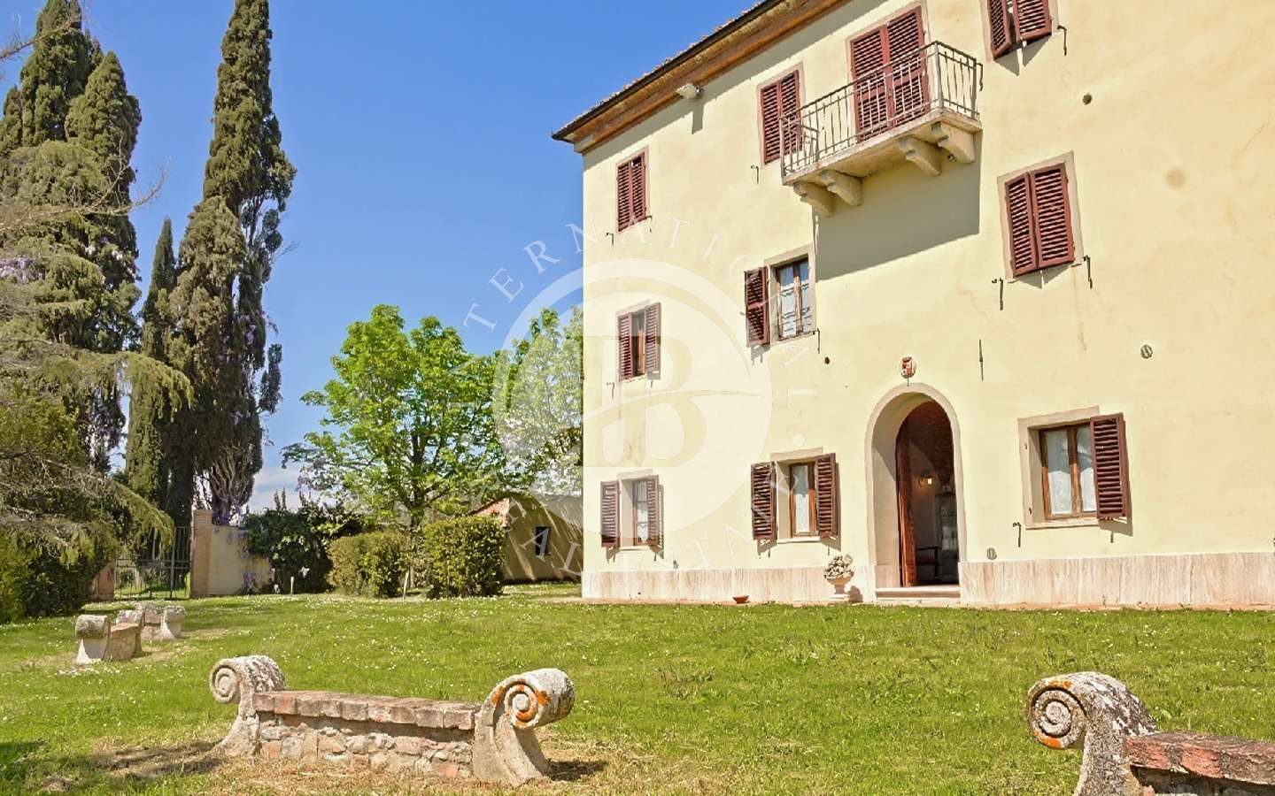 Il complesso residenziale è costituito da tre edifici distinti, immersi in un ampio parco con una vasca ornamentale, piscina con vista su Siena. La proprietà si trova nel Comune di Castelnuovo Berardenga (SI) nella frazione di Monteaperti.