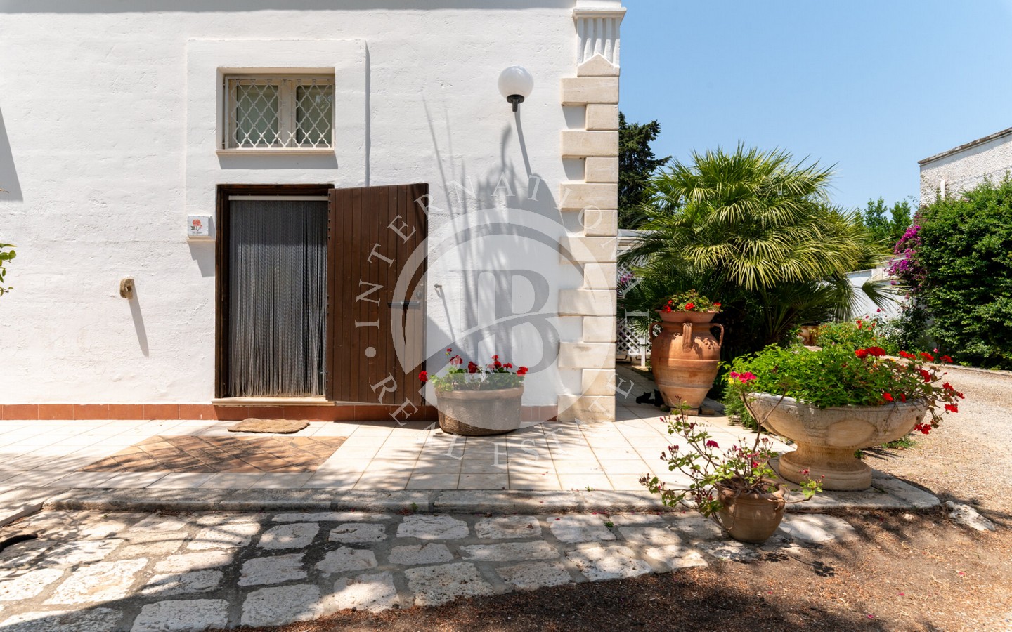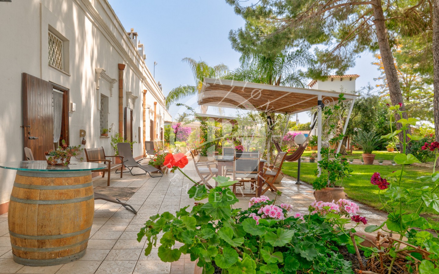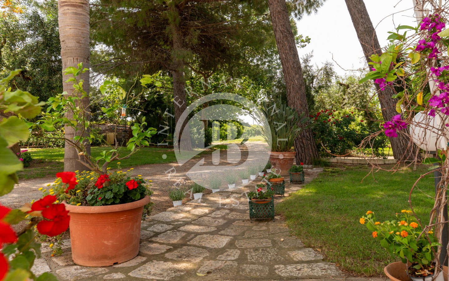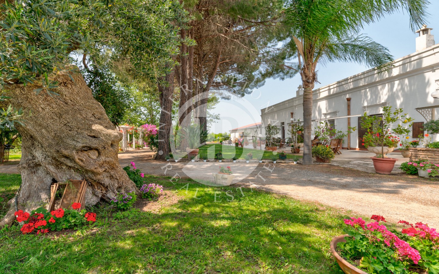 Circondata da circa 10 ettari di terreno pianeggiante esposto a sud-est, la tenuta ospita un rigoglioso aranceto di clementine primizie senza semi, un oliveto destinato alla produzione di olio extravergine e un vigneto a spalliera di 4 ettari, capace di produrre fino a 20.000 bottiglie annue. Il paesaggio agricolo, curato e produttivo, incornicia la masseria principale, un edificio storico recentemente ristrutturato con cura, che conserva tutti i dettagli architettonici originali: pavimenti in cotto antico, alte volte a croce in pietra di tufo e maestosi camini in pietra.