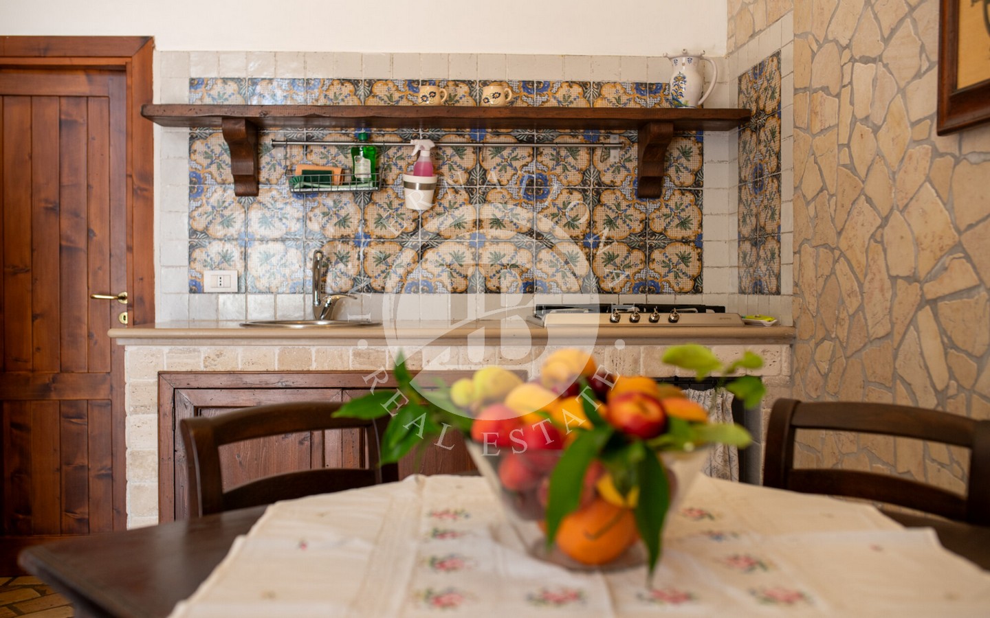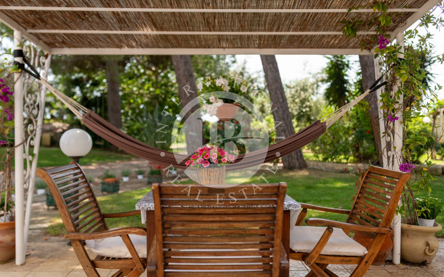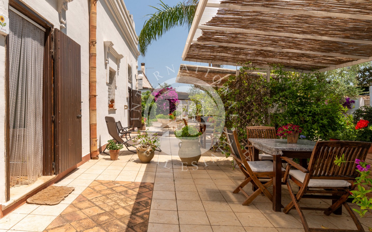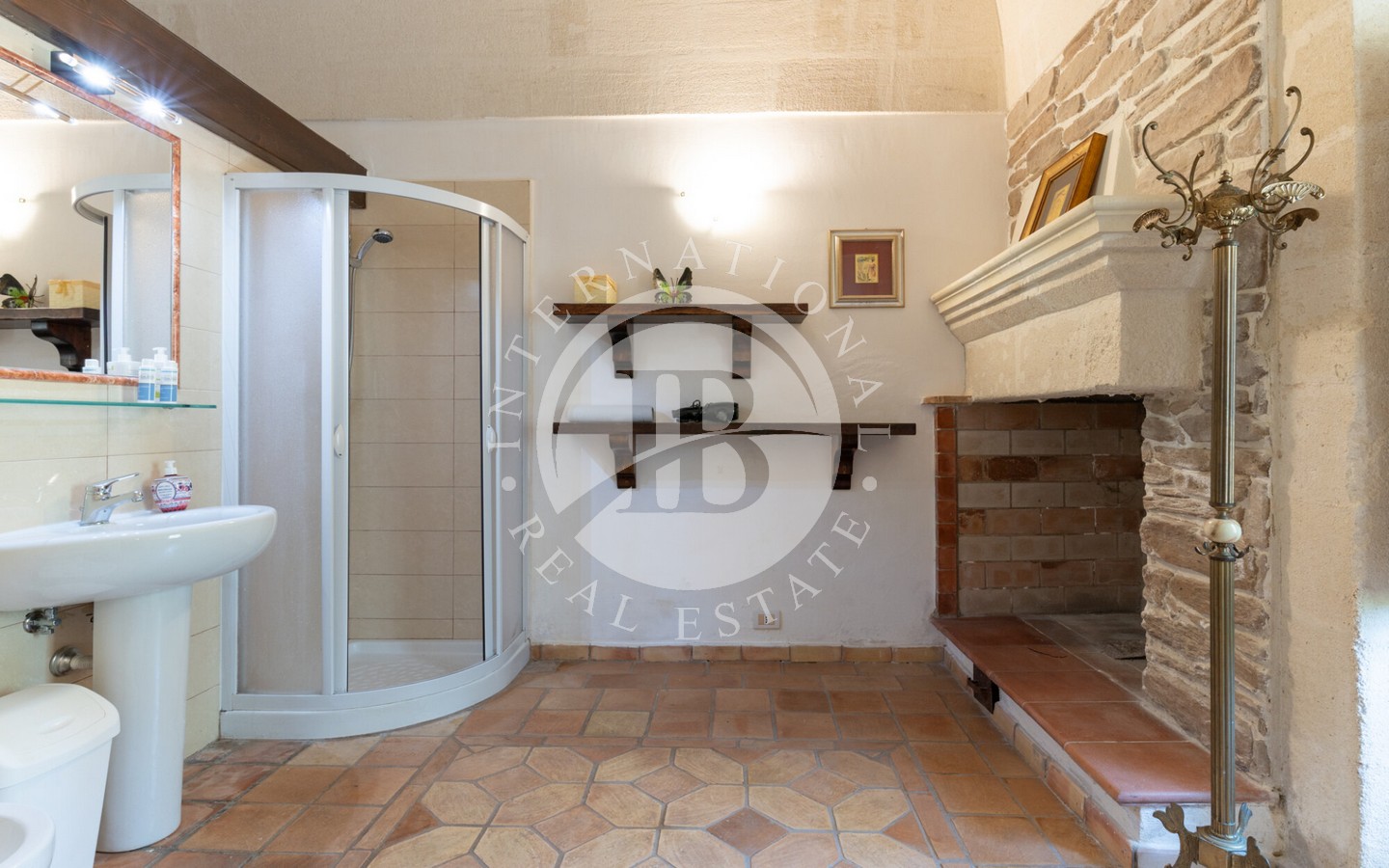 Circondata da circa 10 ettari di terreno pianeggiante esposto a sud-est, la tenuta ospita un rigoglioso aranceto di clementine primizie senza semi, un oliveto destinato alla produzione di olio extravergine e un vigneto a spalliera di 4 ettari, capace di produrre fino a 20.000 bottiglie annue. Il paesaggio agricolo, curato e produttivo, incornicia la masseria principale, un edificio storico recentemente ristrutturato con cura, che conserva tutti i dettagli architettonici originali: pavimenti in cotto antico, alte volte a croce in pietra di tufo e maestosi camini in pietra.