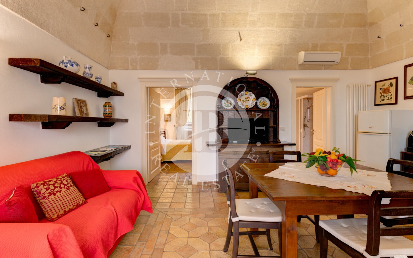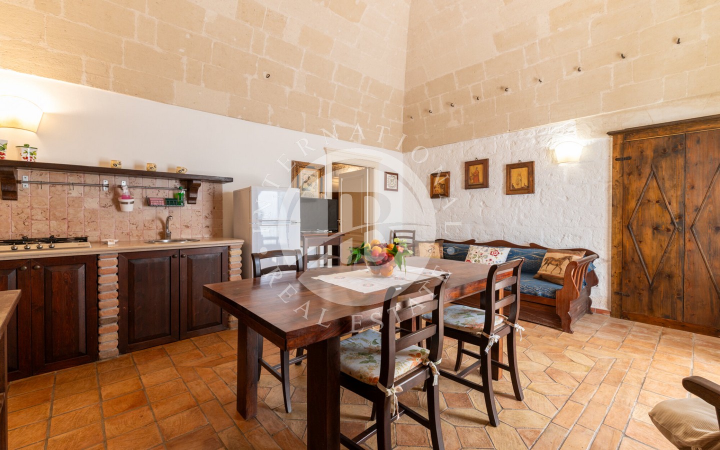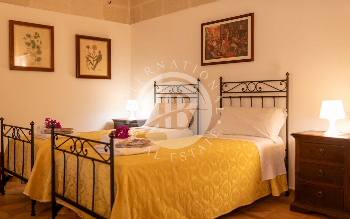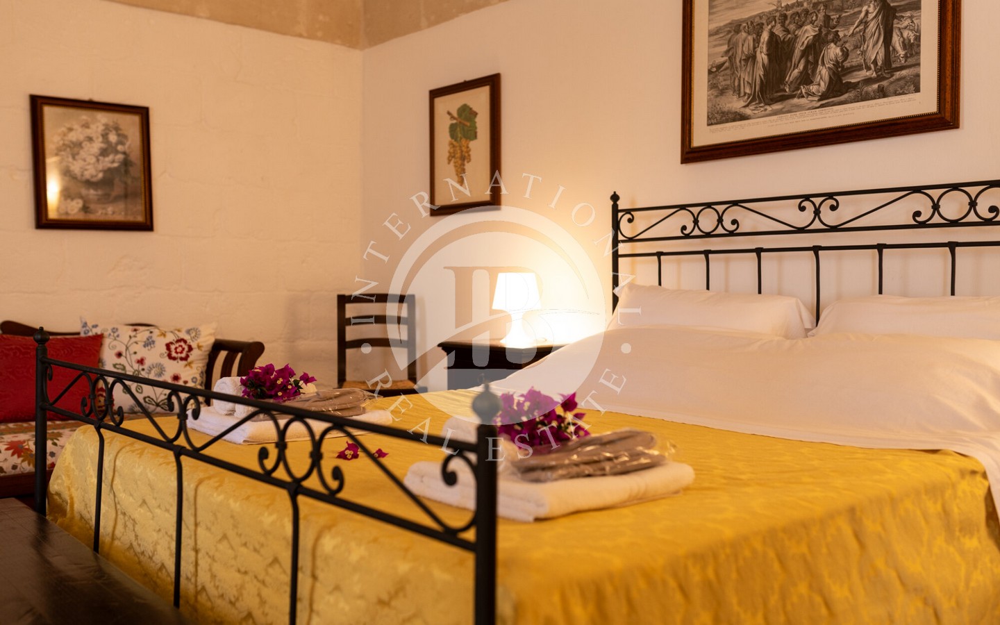 Attualmente la masseria ospita una fiorente attività agrituristica con regolare licenza e molteplici flussi di reddito. Al suo interno si trovano sei appartamenti indipendenti, arredati con gusto in stile arte antica, che offrono un totale di 22 posti letto. La licenza permette un’espansione fino a 45 posti letto. Ogni appartamento è dotato di bagno e cucina privata, con arredi in legno massello e accessori completi, tutti inclusi nella vendita.