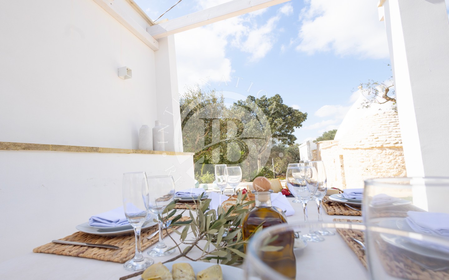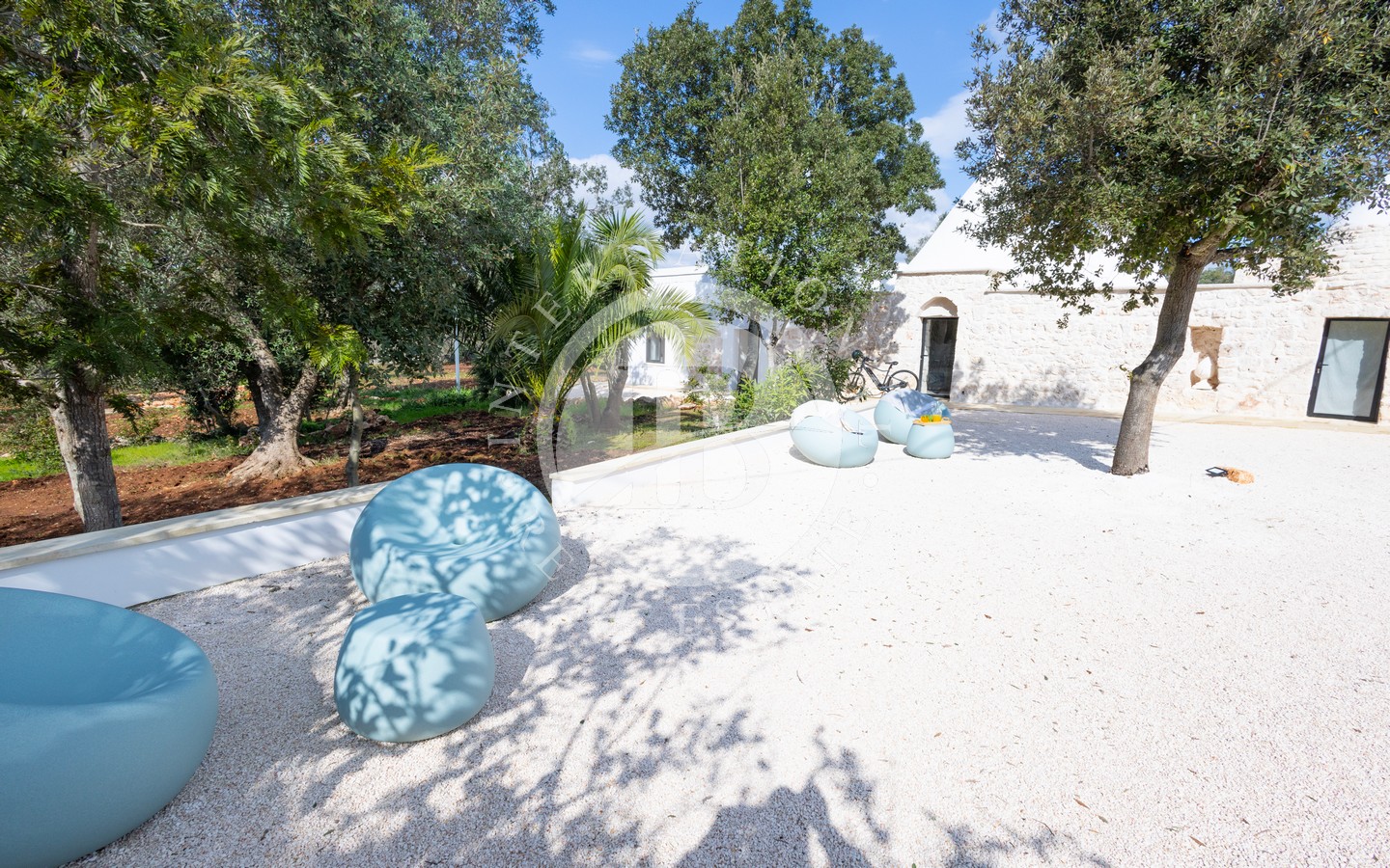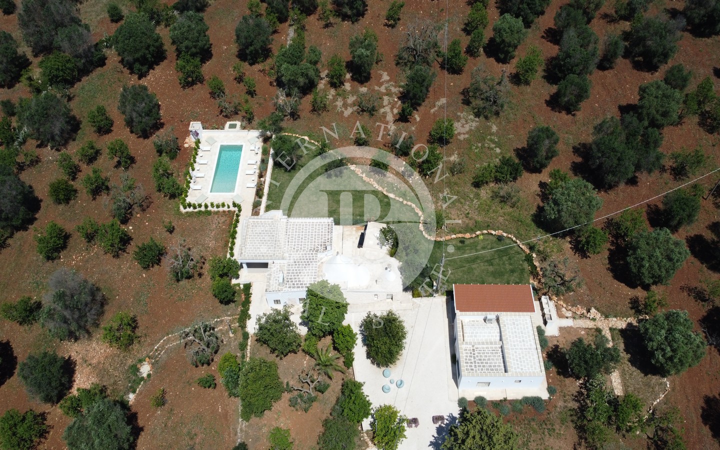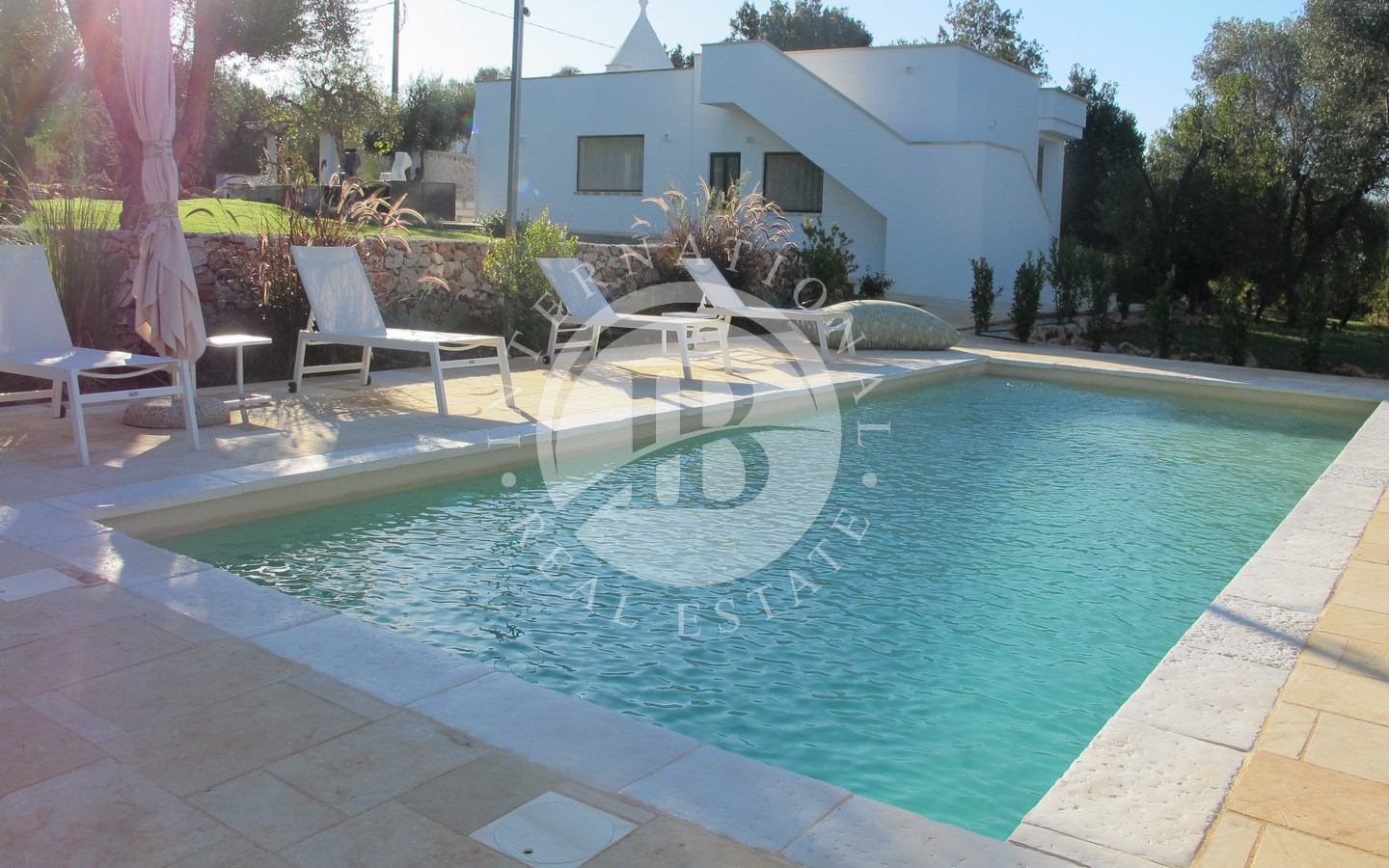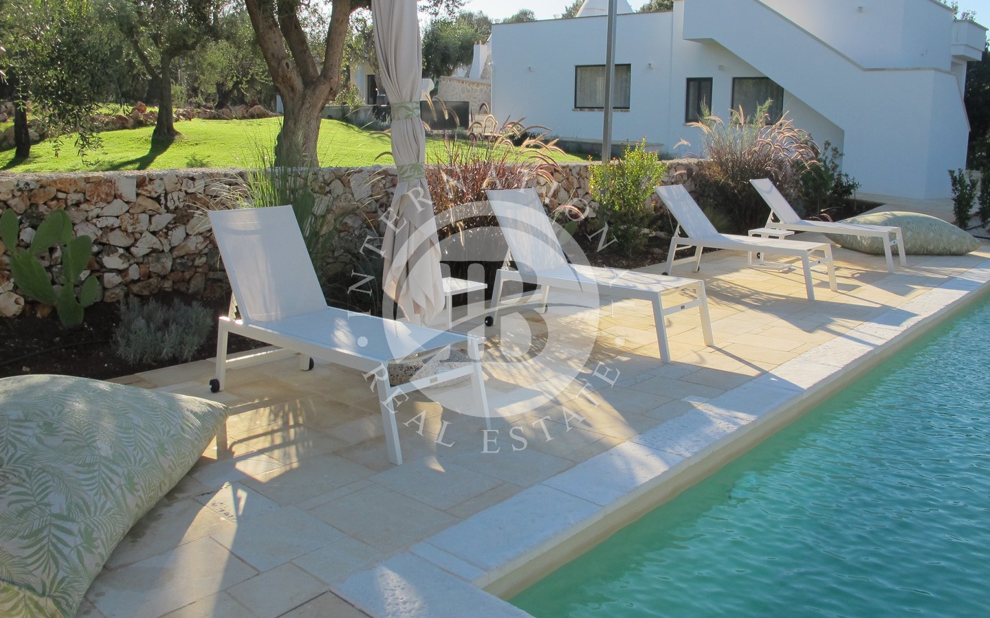 Il grande spazio esterno è arricchito da una piscina di dieci metri per quattro con area solarium in pietra, immersa nella quiete degli ulivi, e da un pratico vano lavanderia esterno, che consente di gestire i servizi in modo discreto ed efficiente. Un piccolo trulletto, ristrutturato e lasciato nella sua autentica semplicità, è oggi adibito a forno a legna, aggiungendo ulteriore fascino alla proprietà.