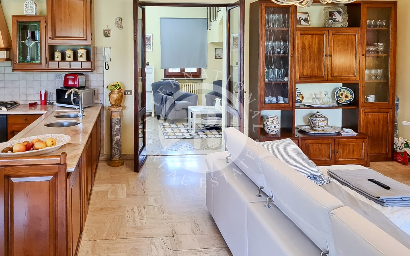La villa è caratterizzata da ottime finiture e materiali di pregio, tra cui pavimenti in marmo di alto livello che esaltano l’eleganza degli ambienti. La distribuzione degli spazi interni permette un eventuale riconfigurazione in base alle esigenze del futuro proprietario. La proprietà è completamente indipendente e immersa nella campagna, garantendo massima privacy e tranquillità, pur restando a breve distanza dai principali servizi. La posizione panoramica, la qualità costruttiva e l’ampio terreno circostante rendono questa dimora una soluzione unica nel suo genere.