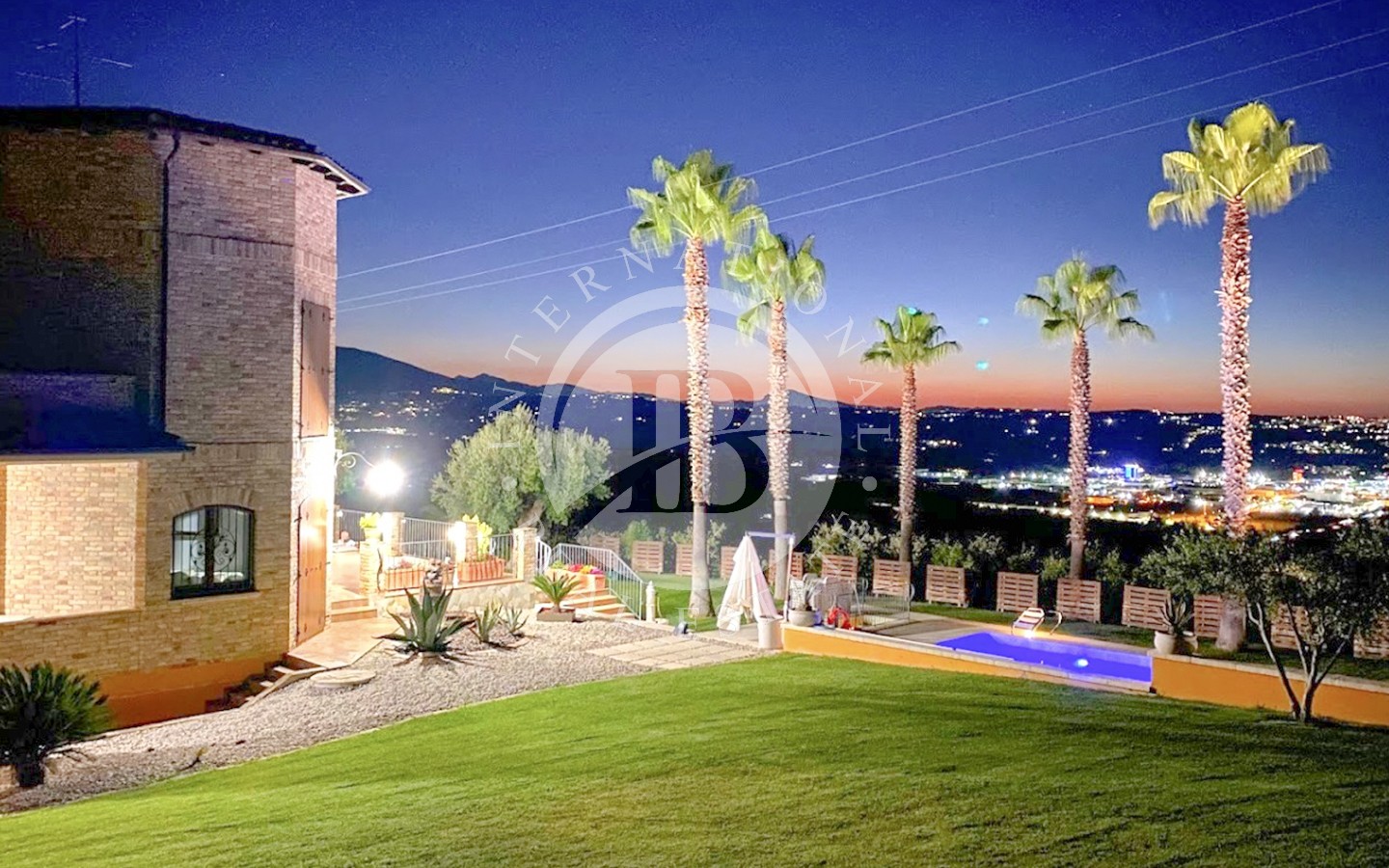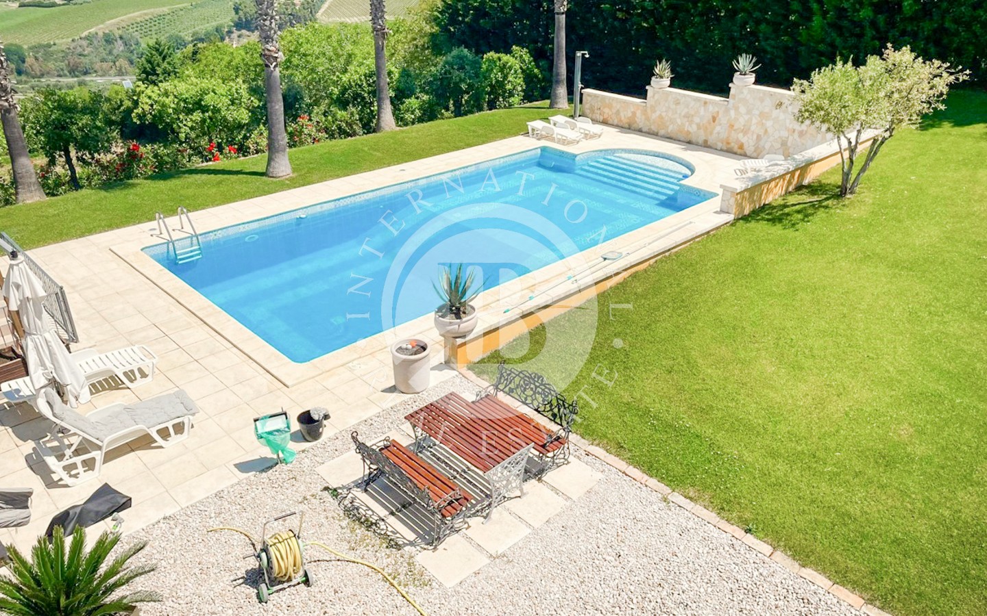 In posizione unica e dominante, al confine tra Abruzzo e Marche, è in vendita una splendida villa immersa nel verde, circondata da un rigoglioso giardino recintato di circa 3.500 mq con piscina, olivi secolari e palme. La proprietà si trova in un contesto di rara bellezza e tranquillità, con una vista mozzafiato che abbraccia il mare Adriatico, i Monti della Laga, il Gran Sasso, i Monti Sibillini e le valli del Tronto e dell’Aterno.