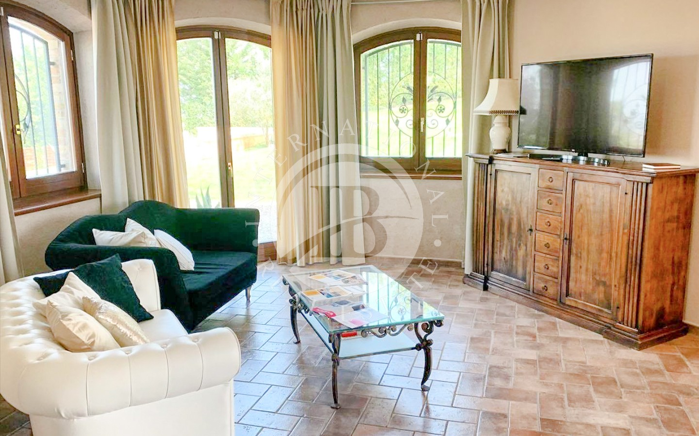 Il piano seminterrato, accessibile sia dall’interno che dall’esterno, è stato finemente rifinito come un secondo appartamento indipendente, composto da un ampio salone con camino e forno, predisposizione per angolo cottura, due camere, un bagno, lavanderia e ripostiglio. A completamento della zona tecnica, vi sono locali interrati a servizio della splendida piscina panoramica.