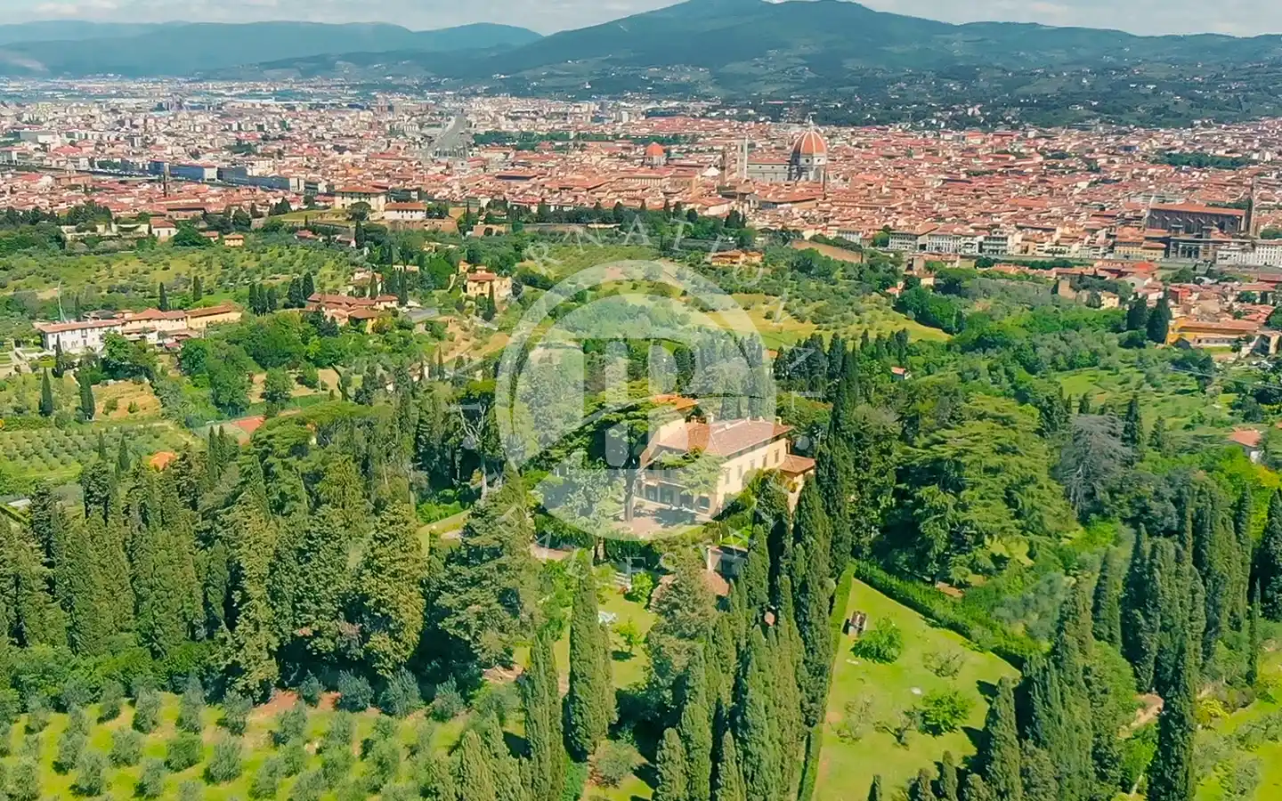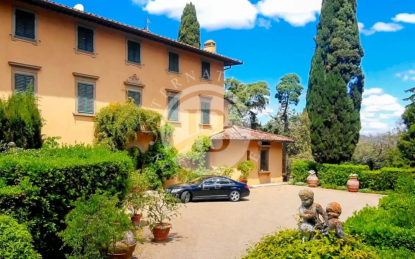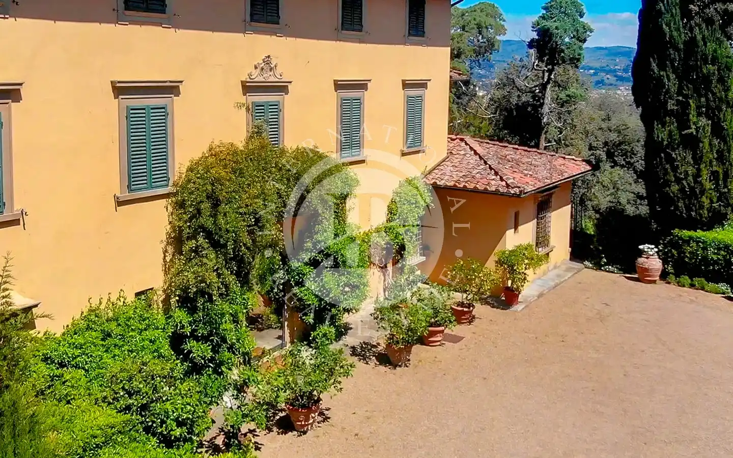 La villa principale, sviluppata su tre piani oltre alle cantine e al suggestivo torrino, si compone di ampi e luminosi ambienti, con soffitti in legno, camini in pietra e balconi con vista sui giardini e sulla città. Al piano terra si trovano aree living, salone, sala da pranzo, cucina principale e cucina originale con camino e forno a legna. Il primo piano ospita la zona padronale con biblioteca, camere da letto e bagni, mentre il secondo piano offre ulteriori camere da letto, bagni e un soppalco, fino al torrino panoramico con vista a 360° su Firenze.