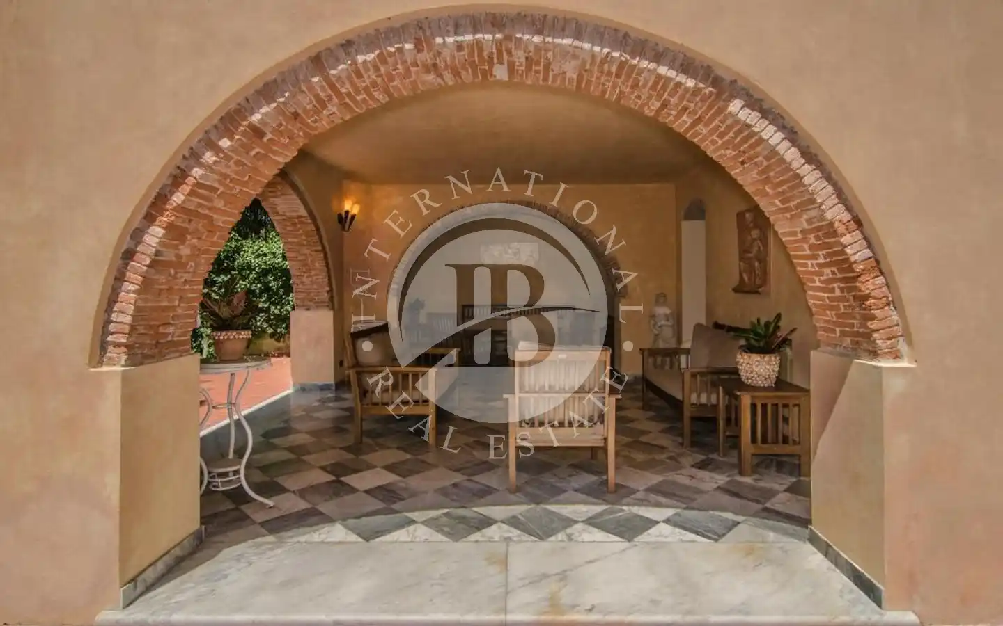 Il giardino è una vera oasi verde, ricca di lecci e pini marittimi, con due pozzi storici: uno in marmo bianco di Carrara del Settecento e uno a cupola in mattoni risalente all’anno Mille. A completare il parco, una piscina panoramica di 21x8 metri, affiancata da pergolati, gazebi e angoli ombreggiati perfetti per momenti di relax.
