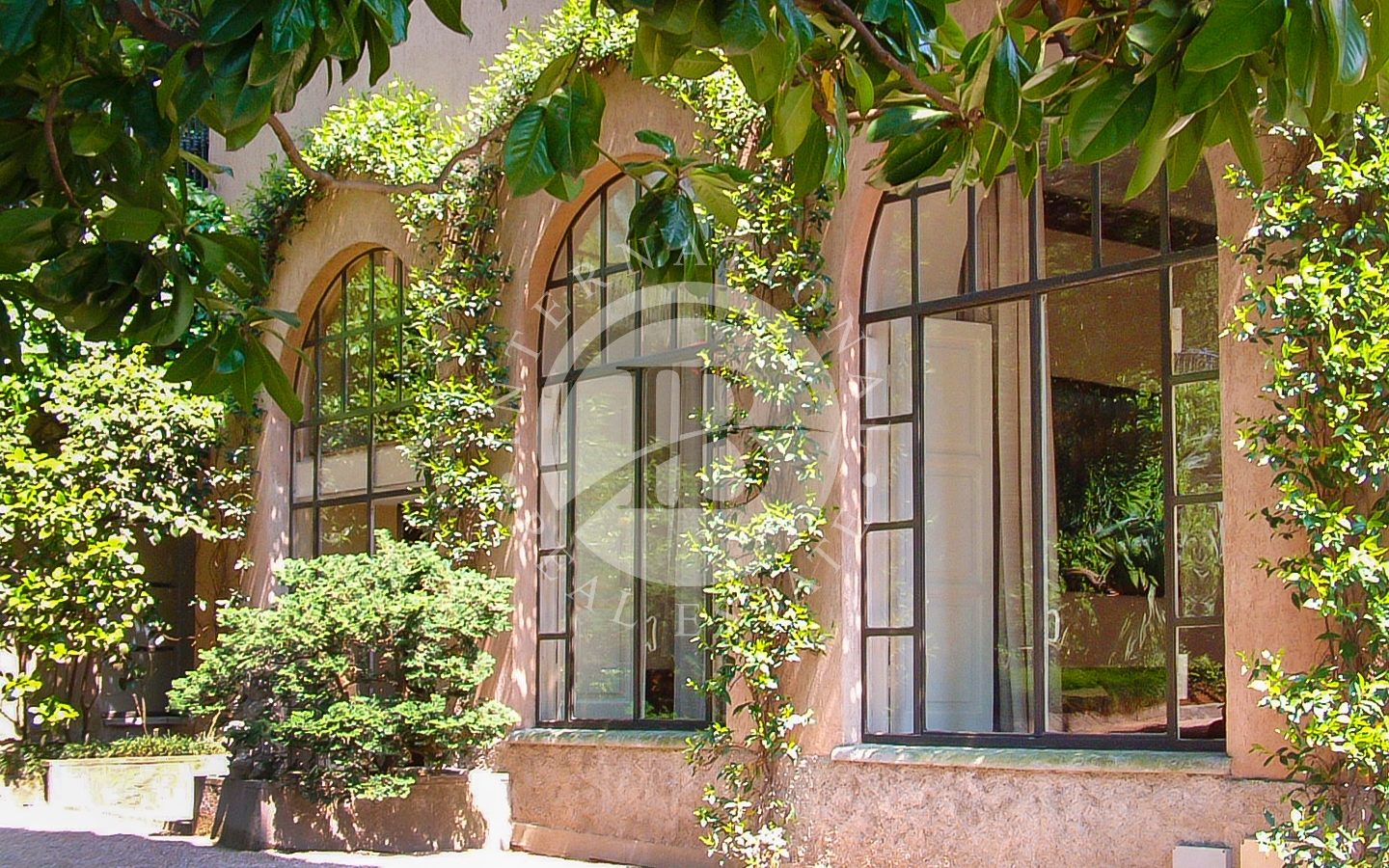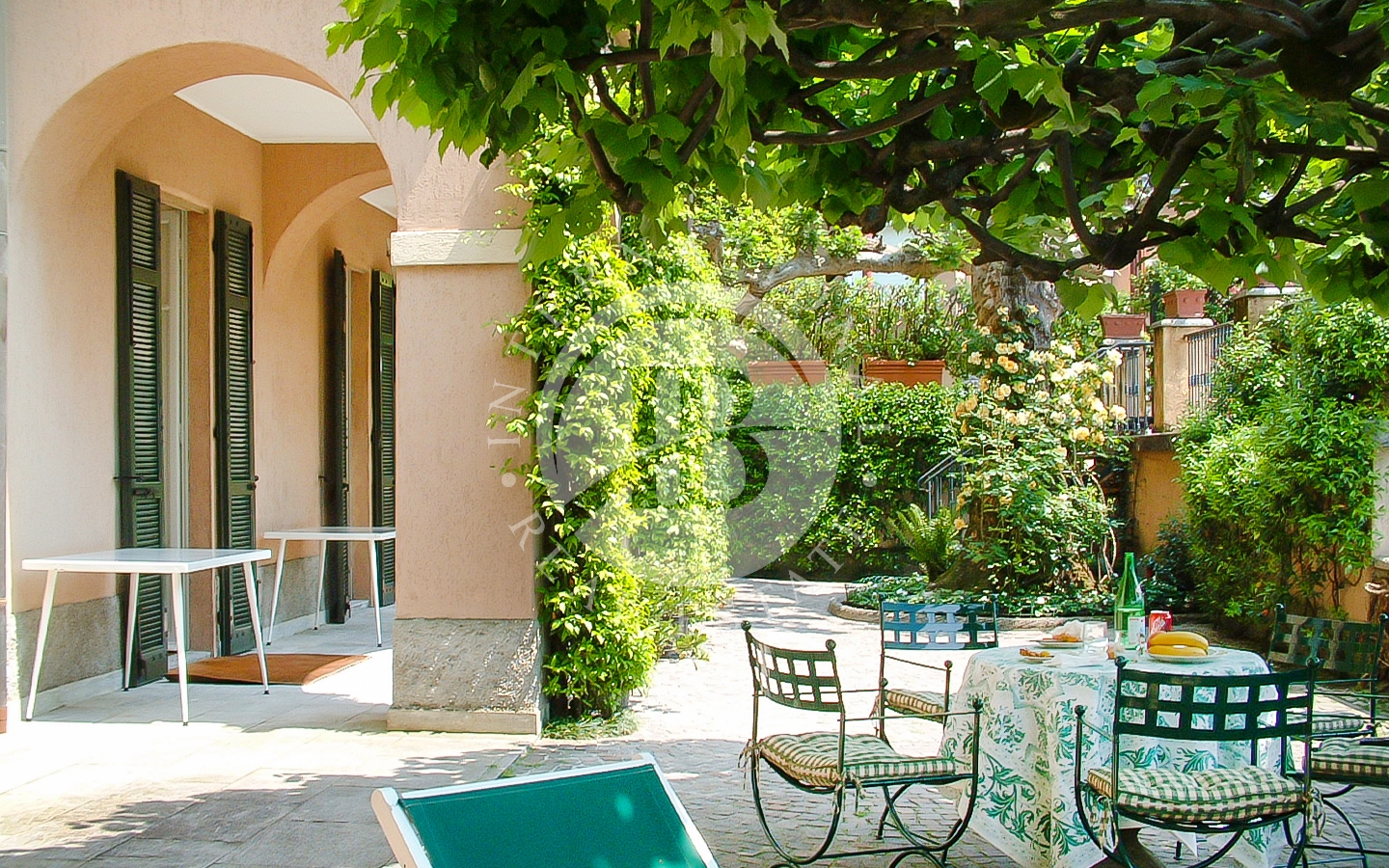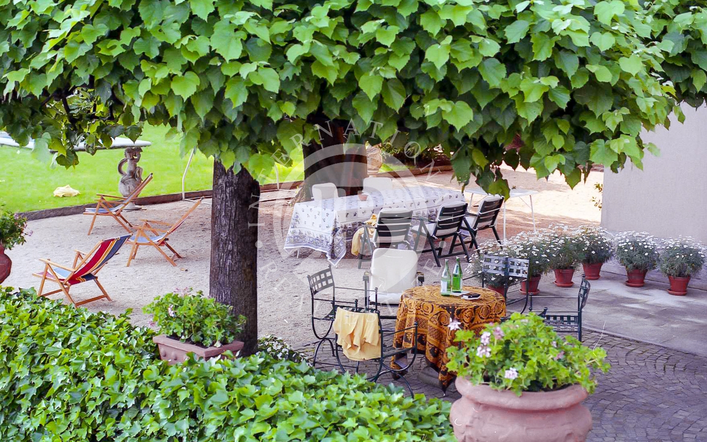 Circondata da un lussureggiante parco di 4.500 mq ricco di alberi secolari e da uno storico muro di cinta romanico con cipressi, questa proprietà offre privacy e tranquillità.