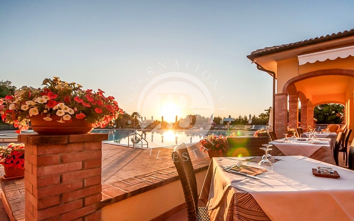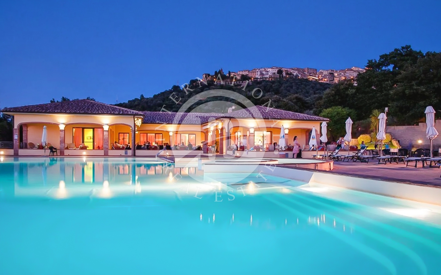 L'area ristorante e il bar a bordo piscina offrono un servizio esclusivo, perfetto per cene all'aperto e momenti di convivialità. La posizione del resort, immerso nel verde e con il borgo di Scarlino sullo sfondo, regala un panorama mozzafiato che, soprattutto di sera, si trasforma in una vera cartolina.