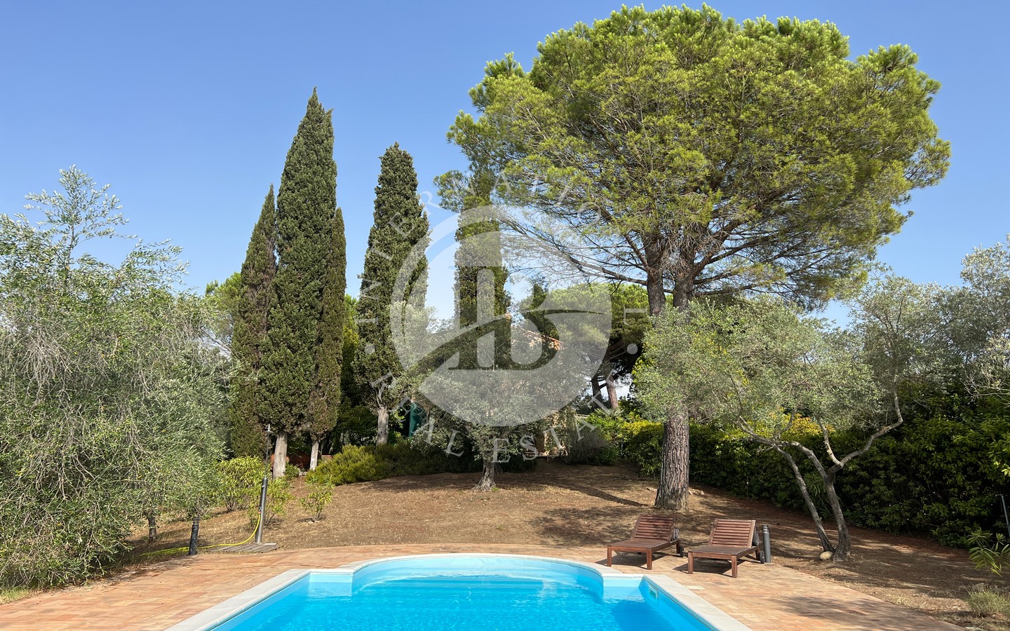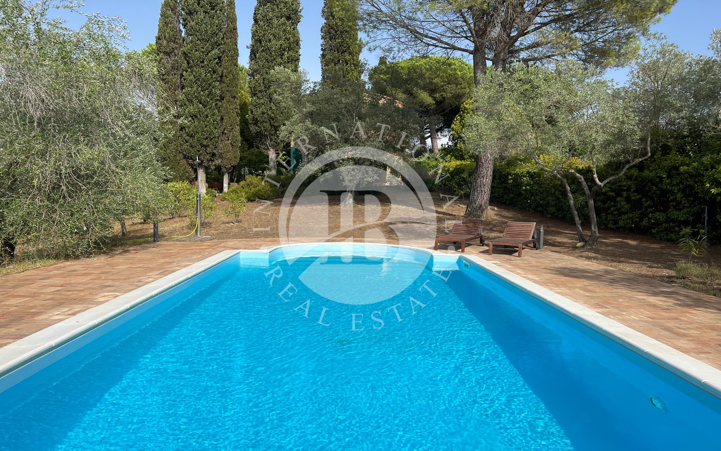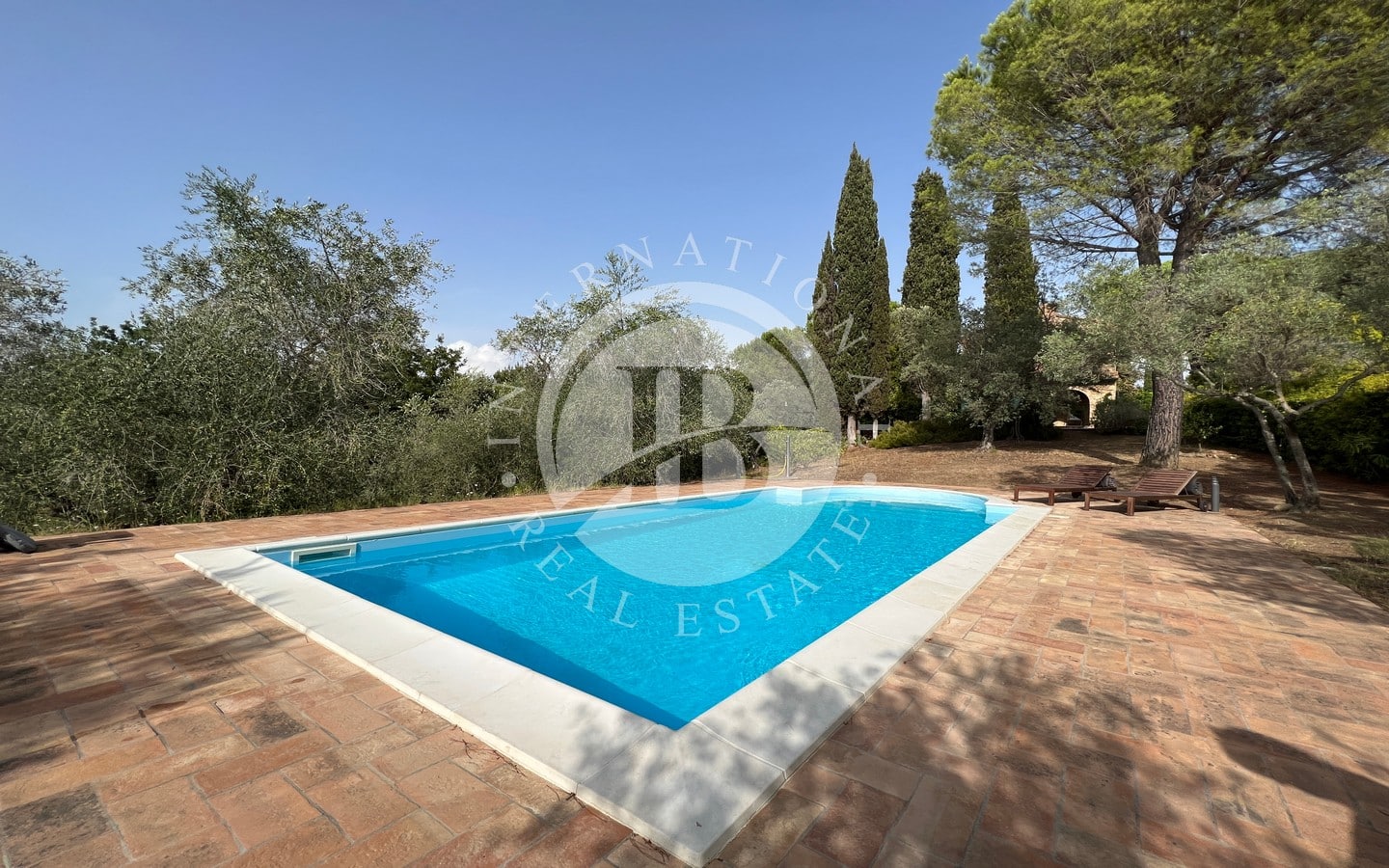 Il giardino, immerso nel verde, ospita una magnifica piscina circondata da ampi spazi prendisole, ideali per momenti di relax o per piacevoli riunioni all'aperto con famiglia e amici. L'area relax e le zone pavimentate sono perfette per godersi la serenità e la bellezza del paesaggio toscano in totale privacy.