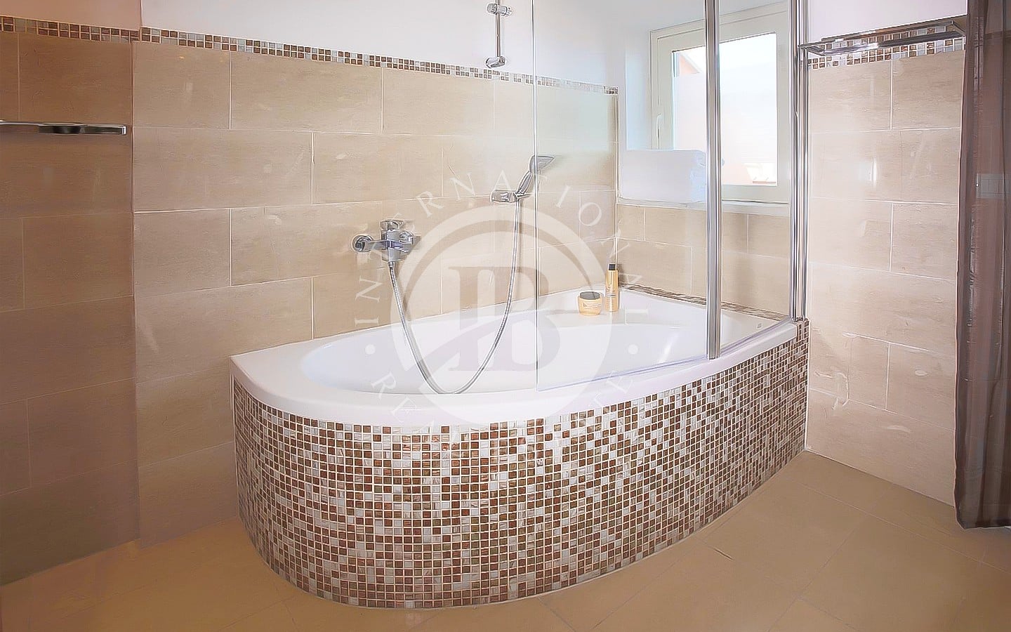L'immobile si compone di due camere matrimoniali, ciascuna con balcone, altre due camere, un bagno principale con doppio lavabo, vasca e doccia, e un secondo bagno più piccolo.