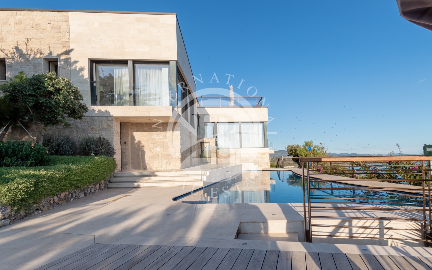 Gli esterni sono stati ripensati, con facciate in travertino grezzo, mentre gli interni sono stati realizzati con materiali pregiati come marmo e legno, fondendo senza soluzione di continuità lusso e sofisticatezza.
