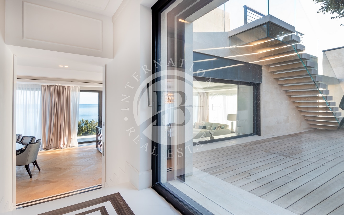 Le ampie finestre sul lato del mare della Villa Il Patio creano una fusione mozzafiato tra l’interno e l’esterno, offrendo viste continue sull’ambiente circostante spettacolare.
