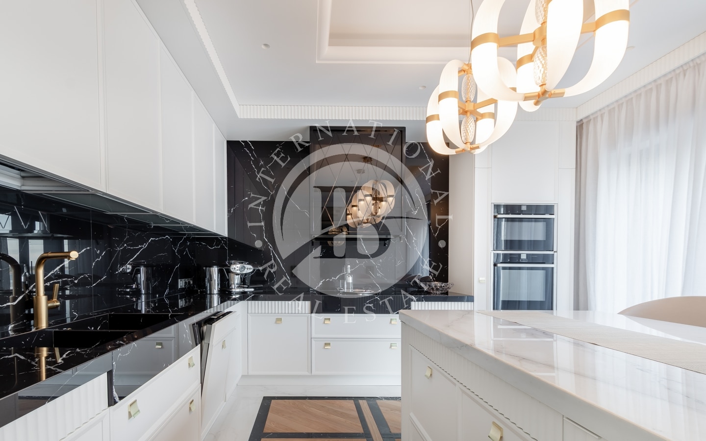Arredi su misura, pannellature in legno intricate e ogni attenzione ai dettagli contribuiscono all’estetica elevata.