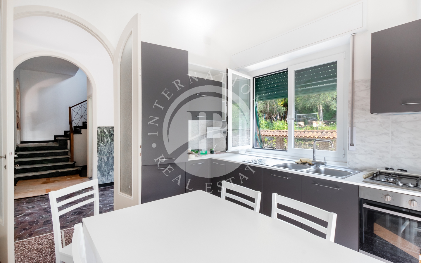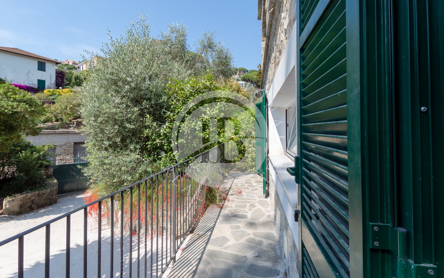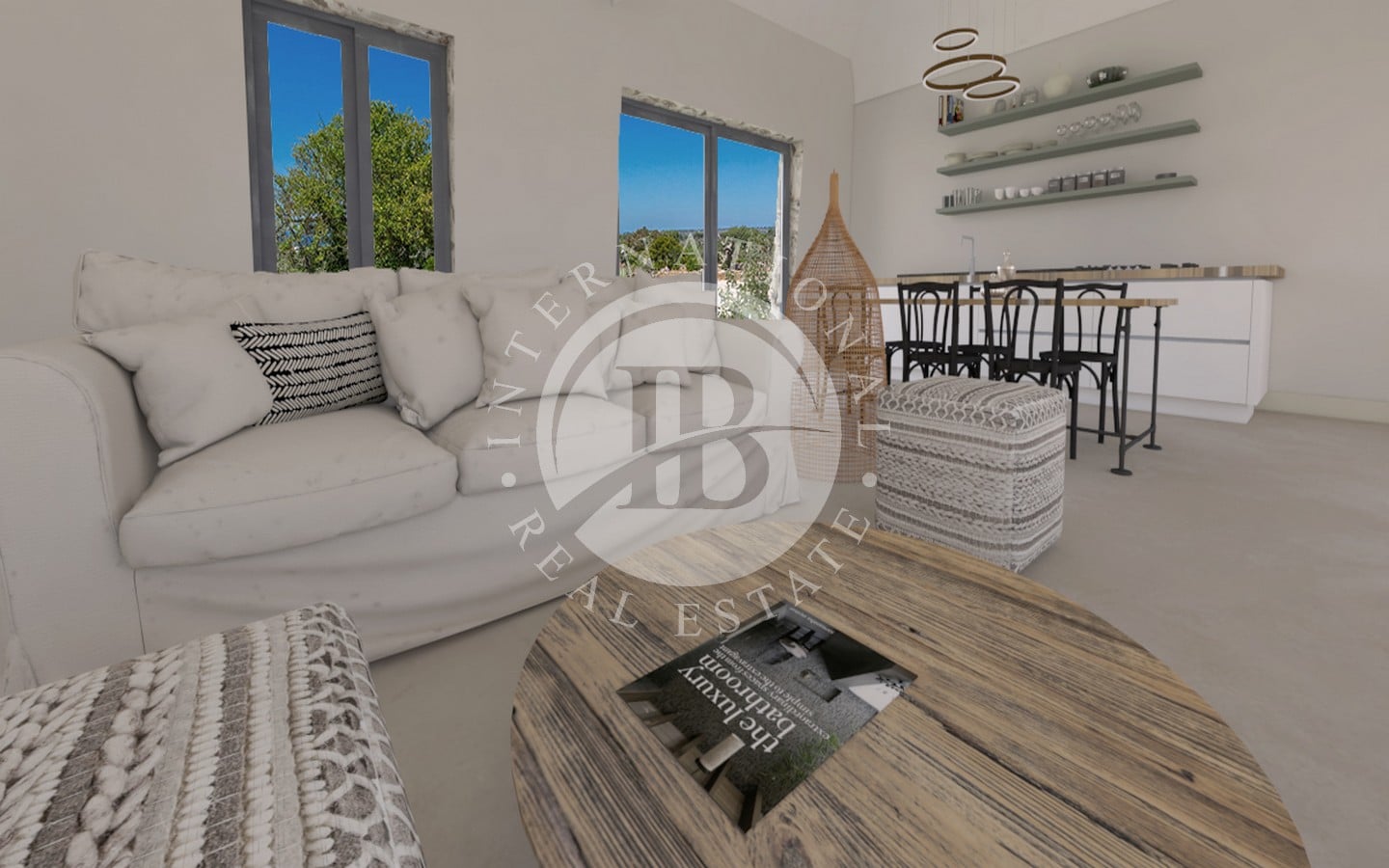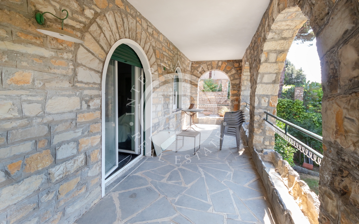 Grandi pergolati ombreggianti introducono agli interni, con ampio living, sala da pranzo e angolo cucina con doppia volta a stella, vista piscina e mare. La zona notte comprende due camere da letto con volta a botte, bagno di servizio e master bedroom con bagno en suite, tutte con ampie finestre sul giardino.