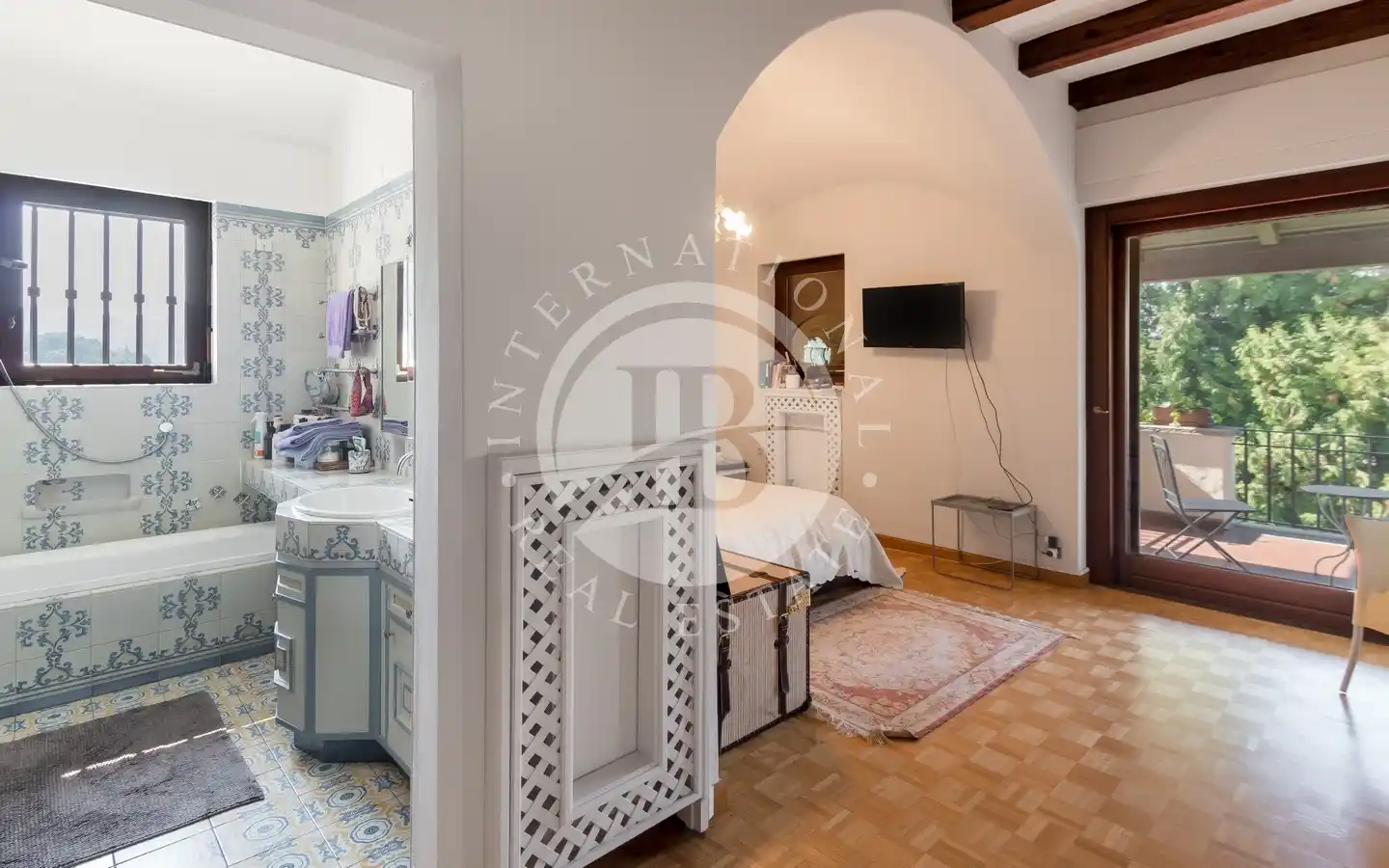 La proprietà è circondata da un parco storico di oltre 13.000 mq, impreziosito da vialetti scenografici, piante secolari e aree paesaggistiche curate. Una piscina di design con solarium offre momenti di benessere immersi nella natura, mentre terrazze e portici panoramici regalano scorci unici sulle colline circostanti. La serra con tetto panoramico aggiunge un tocco suggestivo, creando uno spazio ideale per vivere il contatto diretto con la natura in ogni stagione.