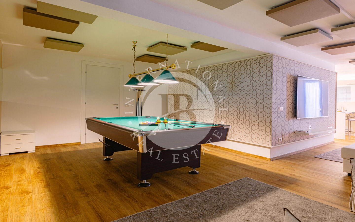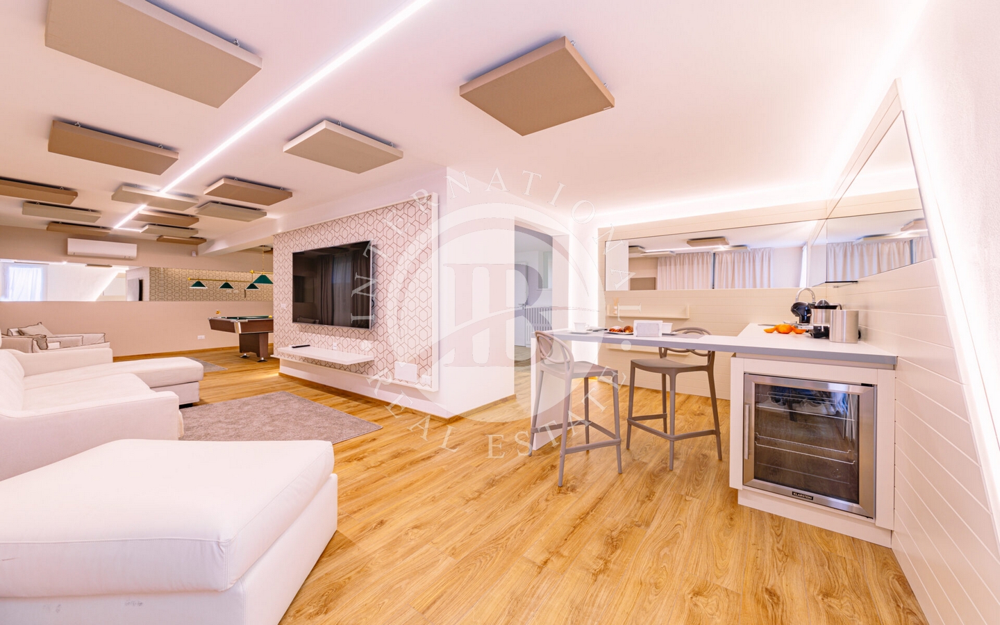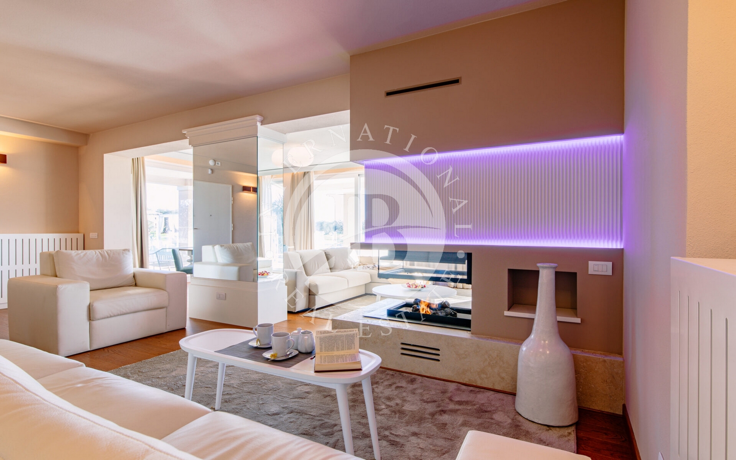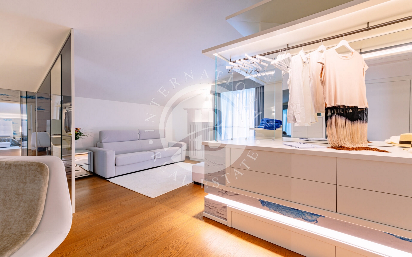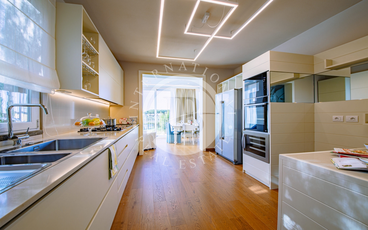 Gli interni di questa villa sono un'ode alla sofisticazione e al comfort. Le 6 camere da letto con bagno en suite offrono spazio e intimità, mentre i colori neutri e le finiture di alta qualità creano un'atmosfera di rilassante eleganza. La tecnologia di domotica avanzata garantisce un controllo senza sforzo degli ambienti, mentre le ampie vetrate aumentano la connessione armoniosa tra interno ed esterno.