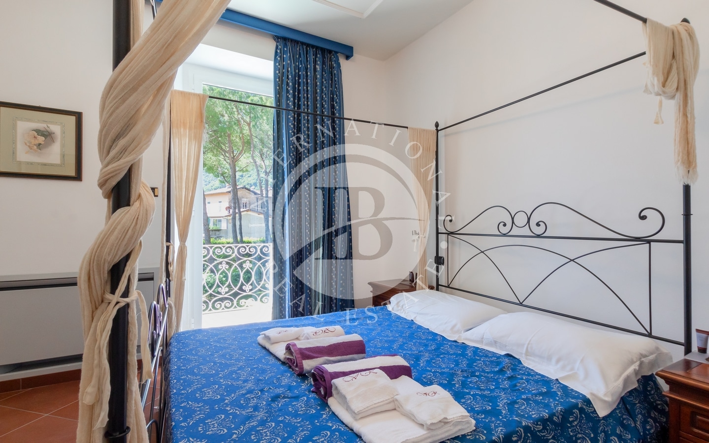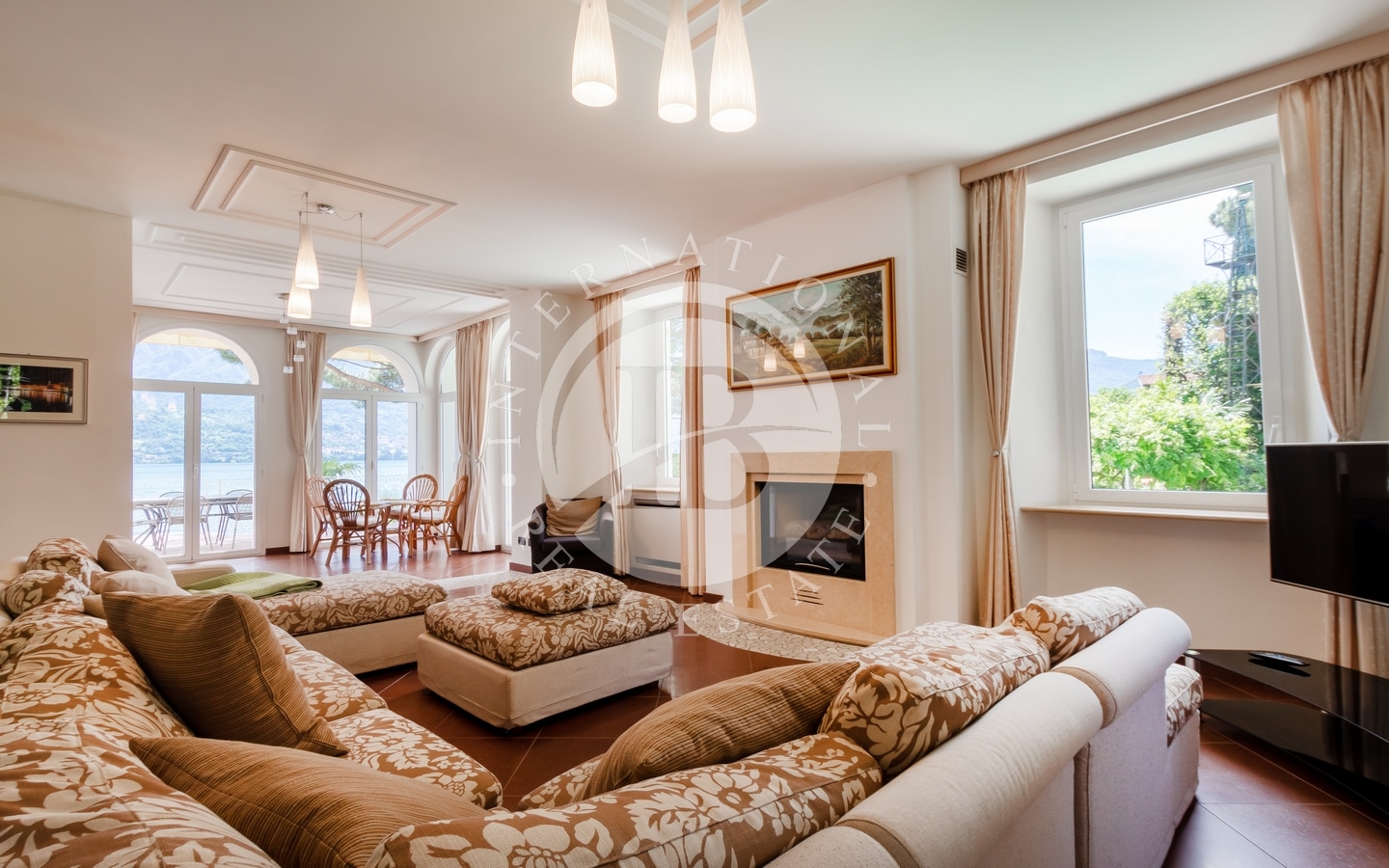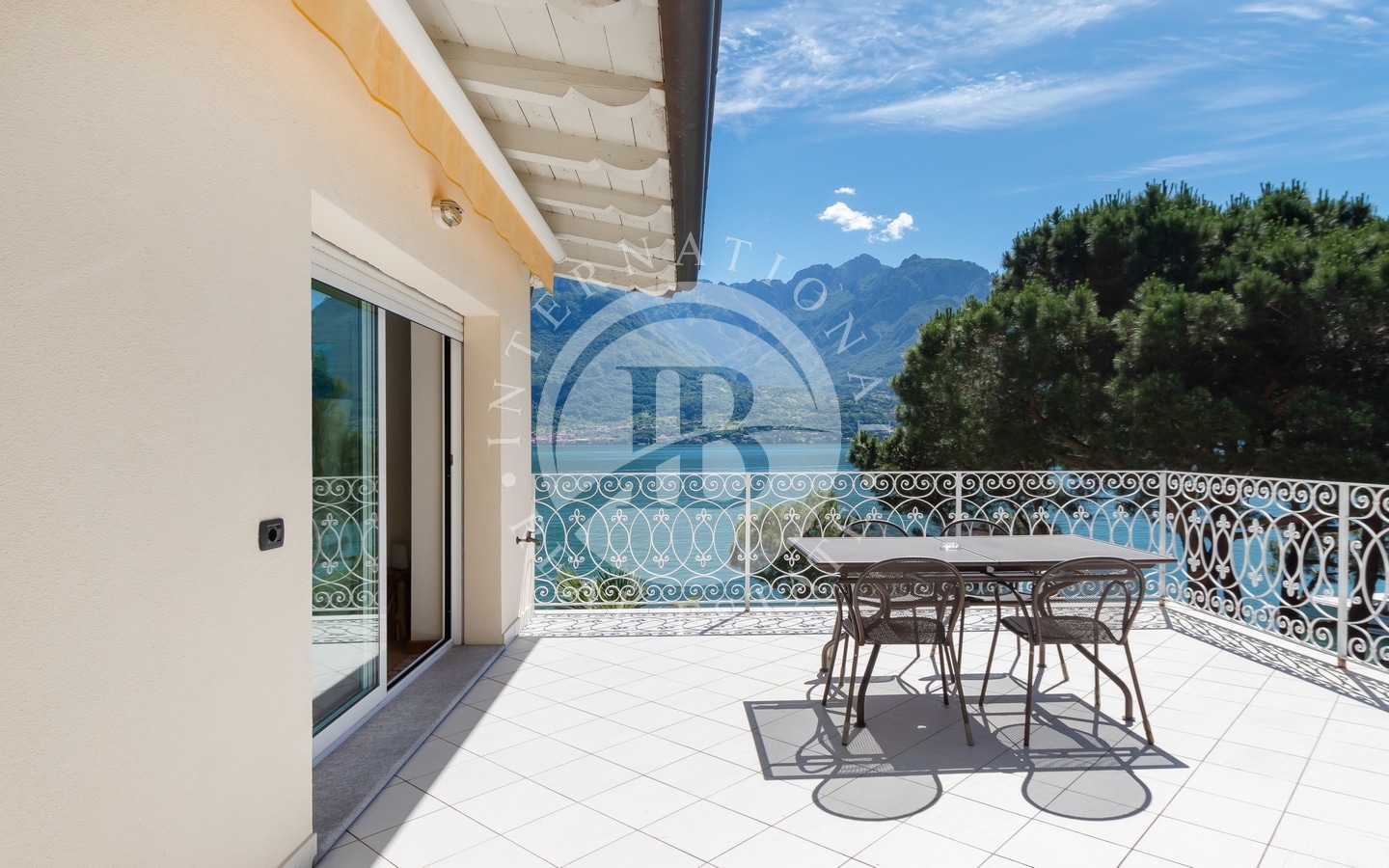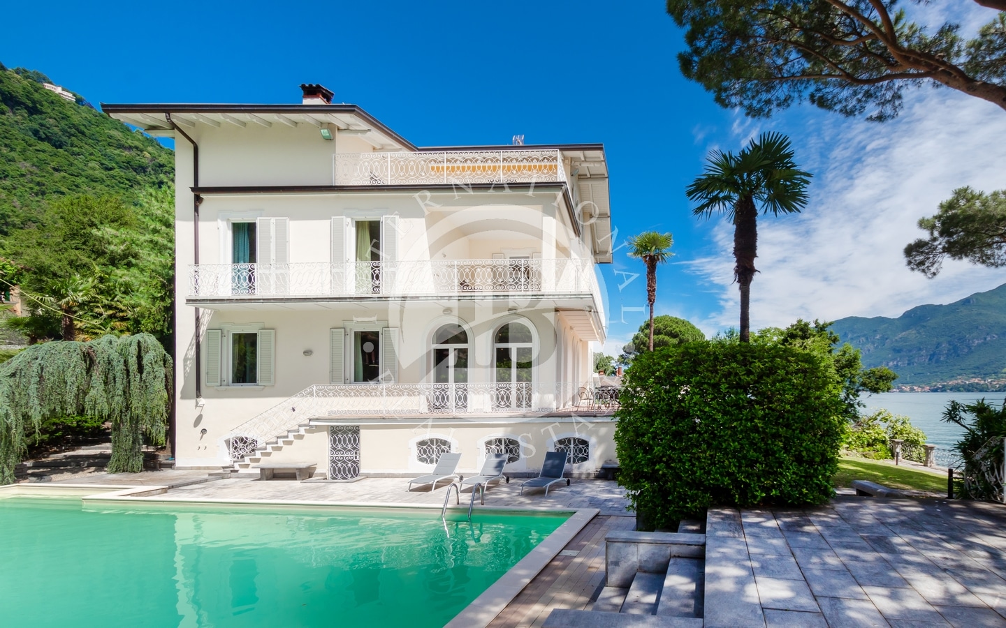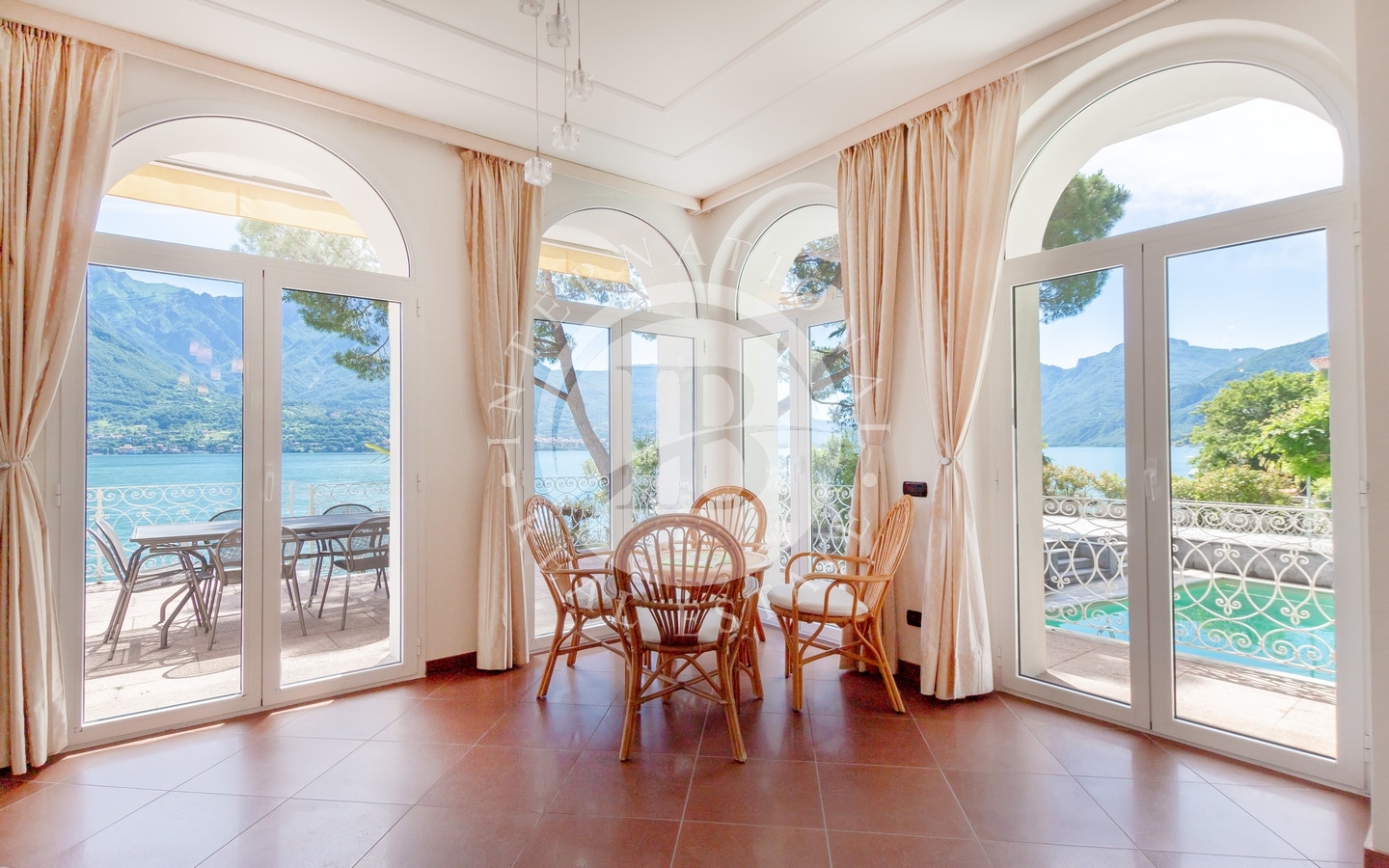 Recentemente ristrutturata, ospita al piano terrala zona giorno con ingresso, la cucina, un ampio soggiorno con camino, una sala da biliardo e una grande terrazza di 50 mq affacciata sulla piscina e sul lago; al primo piano, ci sono tre camere da letto, ciascuna con bagno privato, e due ulteriori camere che si affacciano sulla terrazza coperta di 40 mq; infine, all'ultimo piano, si trova un'incantevole attico indipendente di 130 mq, composta da un spazioso soggiorno, cucina, studio, camera matrimoniale, cameretta, bagno e una splendida terrazza vista lago di 30 mq.